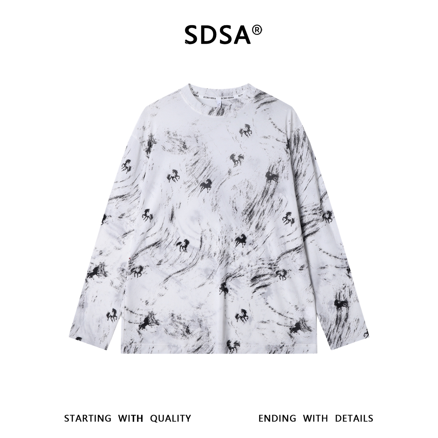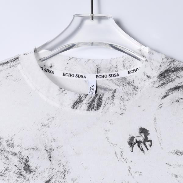 SDSA男装2026新款高贵轻奢潮牌水波纹小马印花圆领短袖T恤百搭