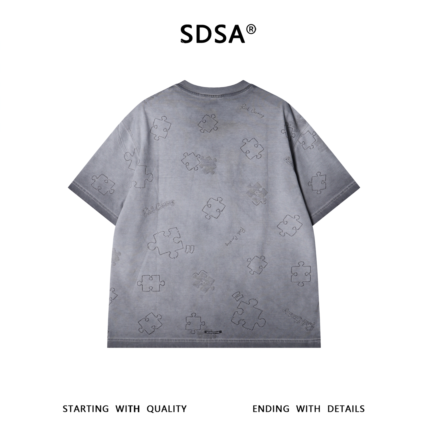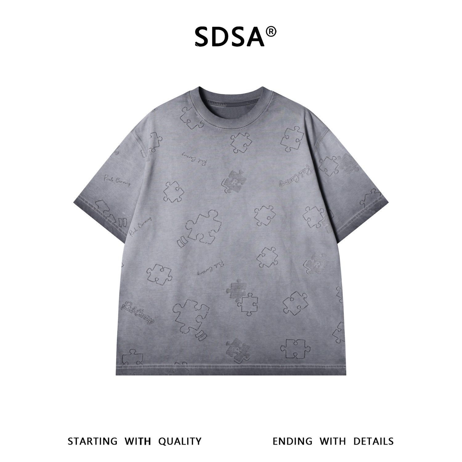 SDSA男装2026新款高贵轻奢拼图暗纹提花短袖T恤宽松圆领休闲上衣