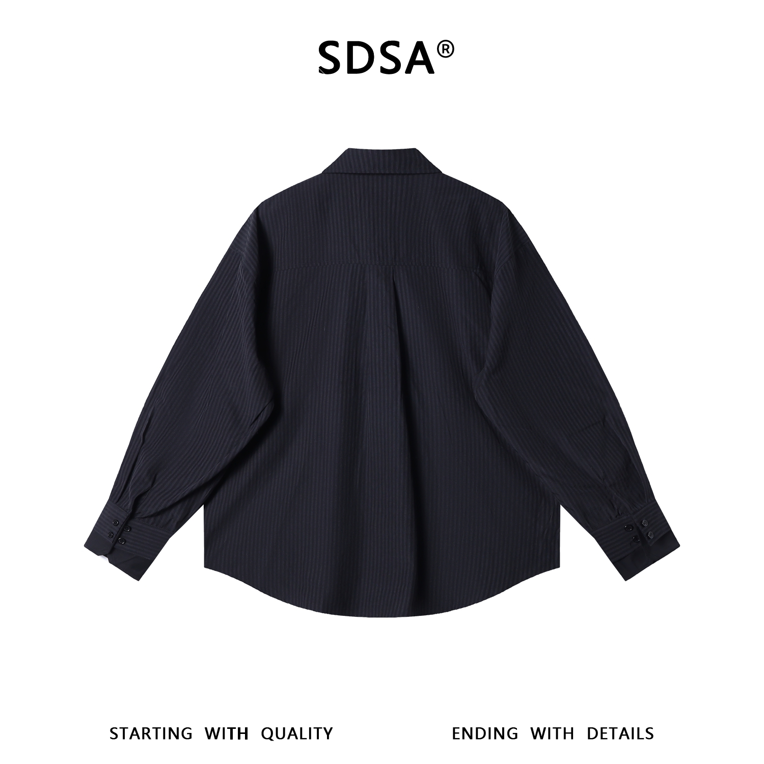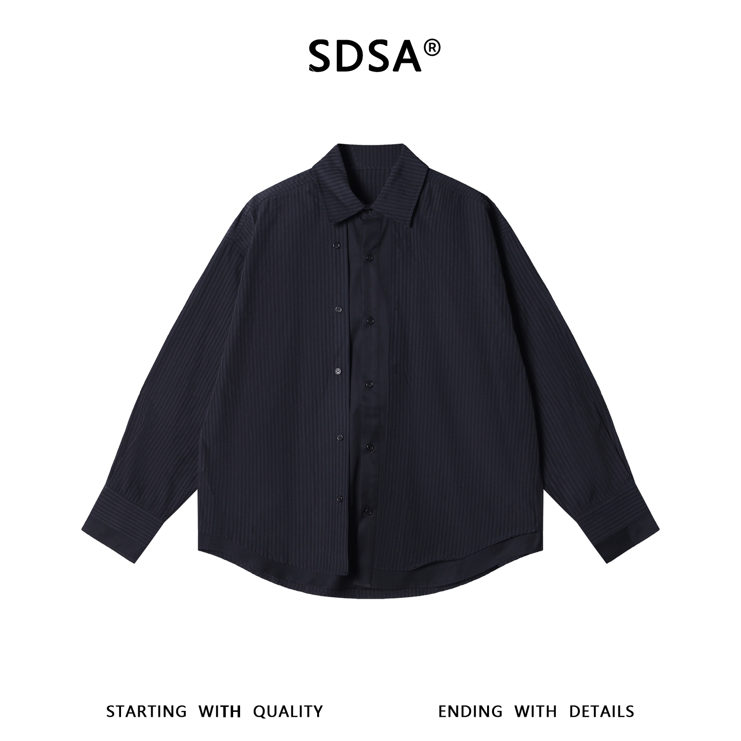 SDSA男士春夏新款痞帅男装老钱风肌理纹假两件衬衫百搭时尚衬衣