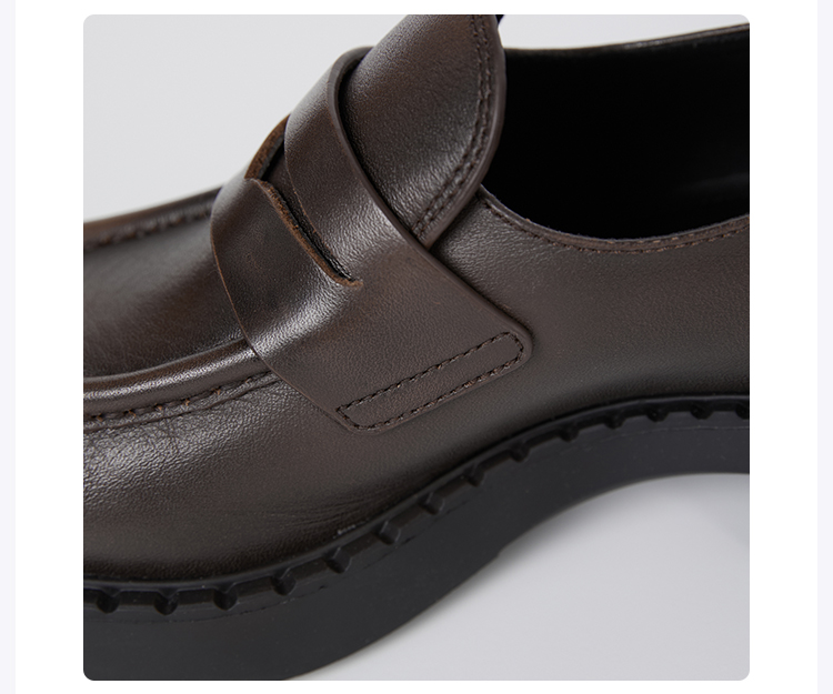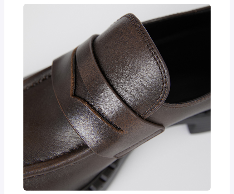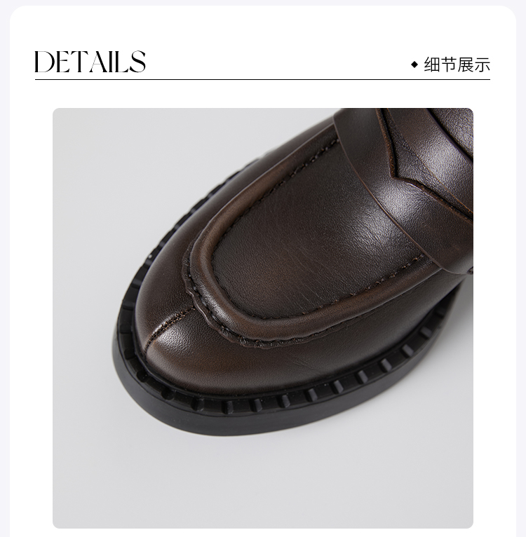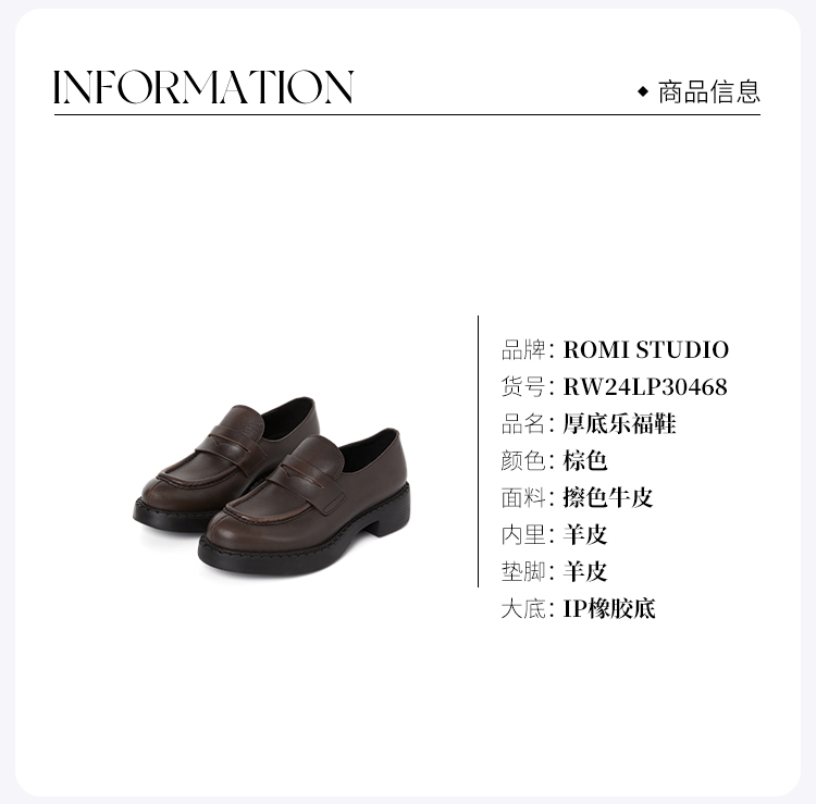 ROMI STUDIO“复古英伦”擦色小牛皮拼羊皮厚底乐福鞋 RW24LP30468