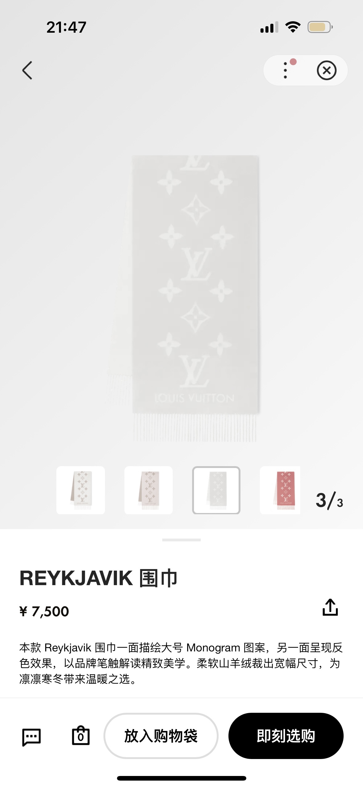 可以说没有这款围巾的女人就不能说自己喜欢丝巾围巾!驴家的款式一直在更新、但此款是驴家唯一每年更新颜色还各受好捧的款式!真心是百搭时尚又实用!100%羊绒!