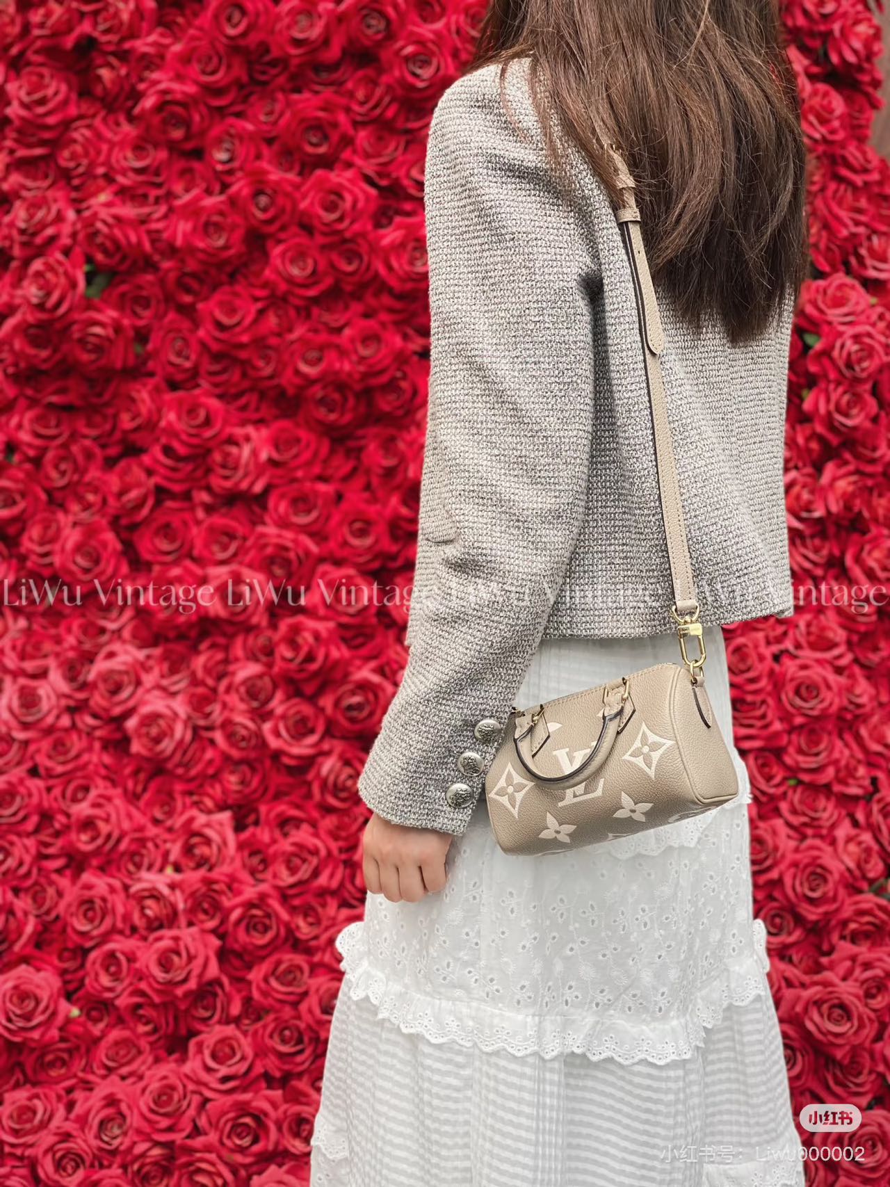 本款 Nano Speedy 手袋浓缩路易威登Speedy手袋的经典构型,以 Monogram Empreinte软粒面皮革的双重色调烘托Monogram案。拉链开合实现稳妥收纳,巧用手柄和可拆卸并调节的肩带,多种造型可能。