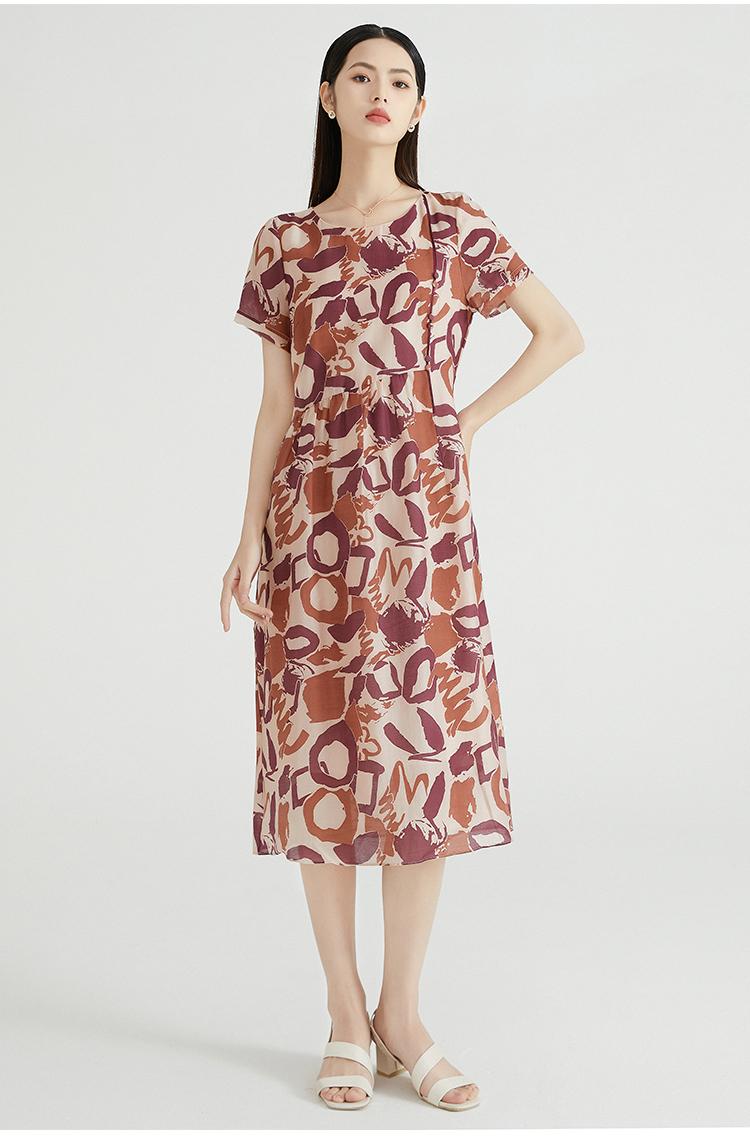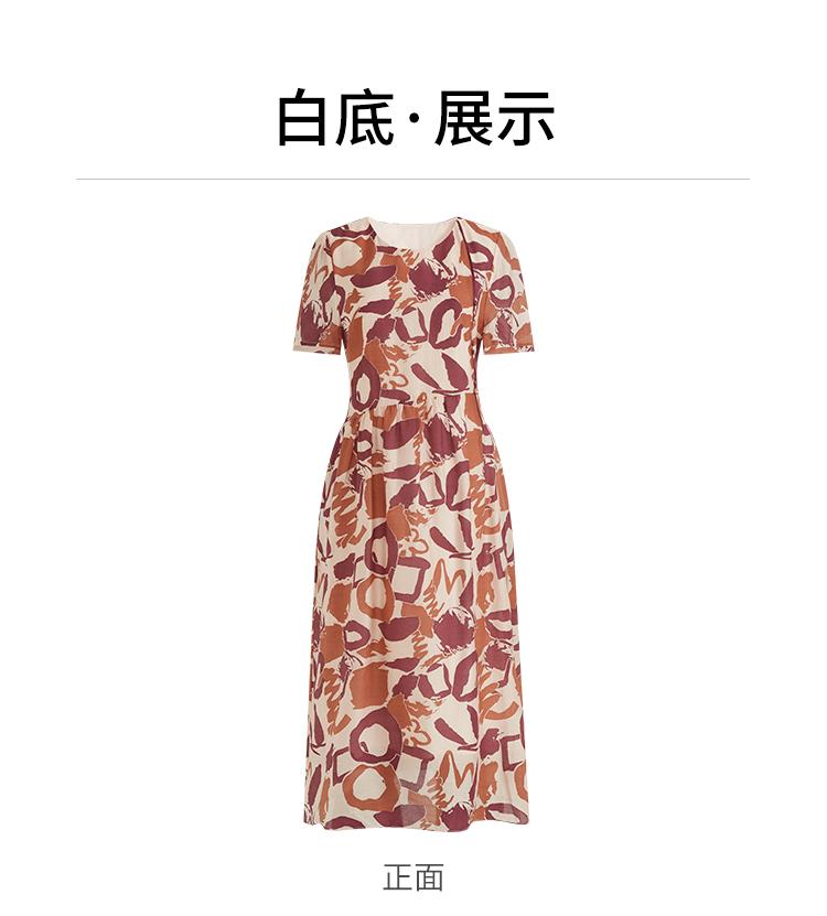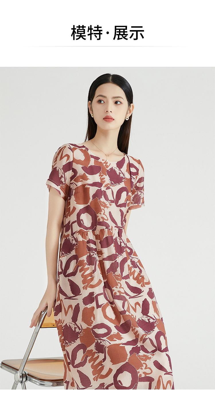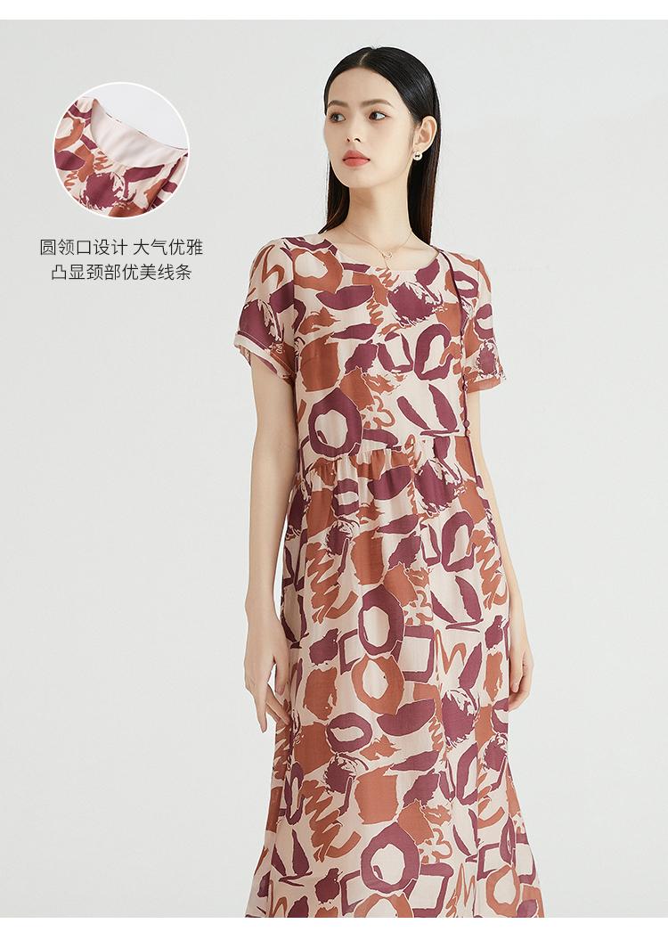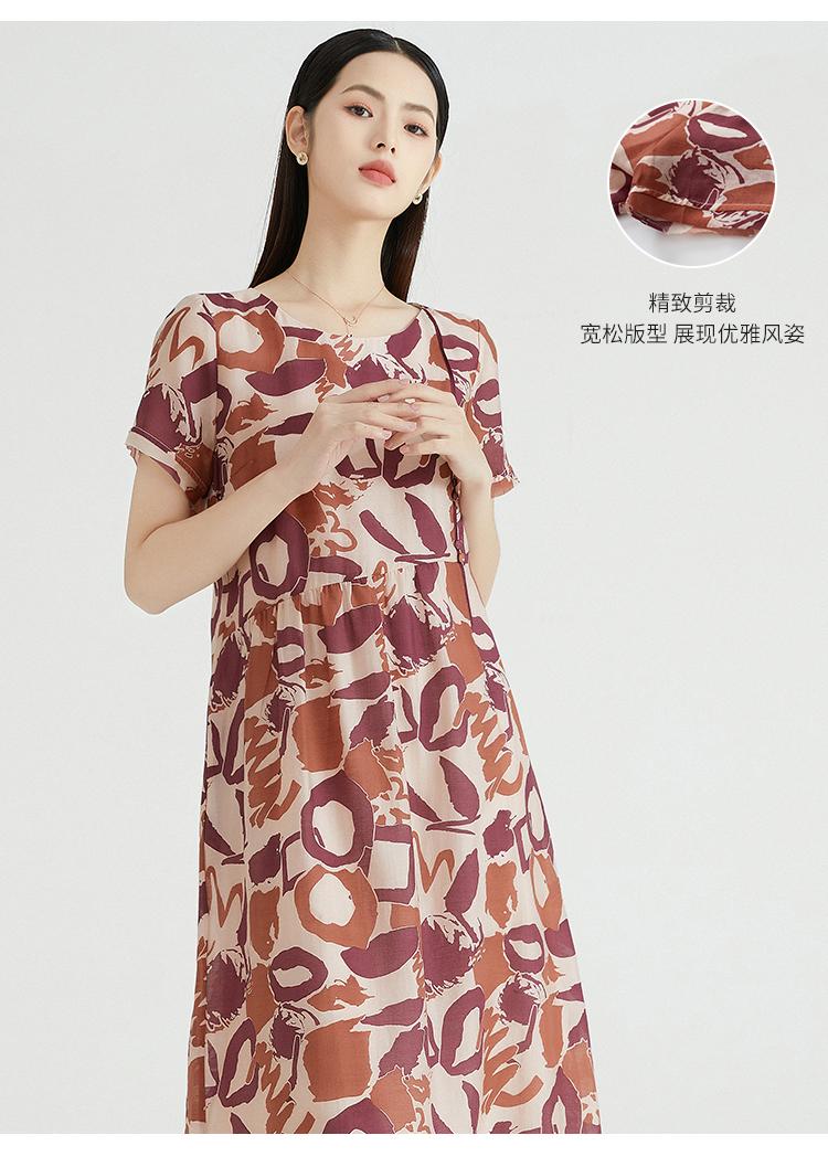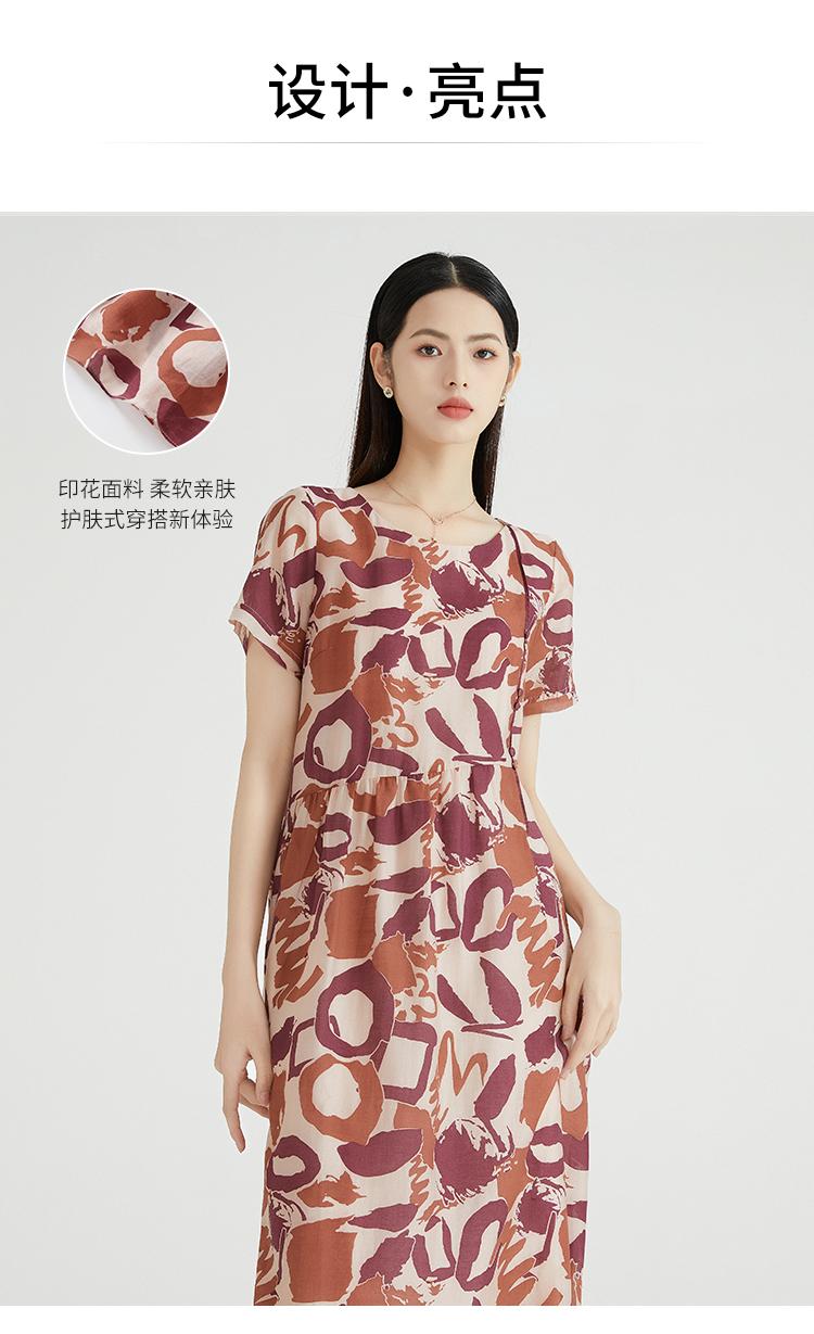YX【定制17天】夏季圆领大码印花氛围感连衣裙气质休闲女士