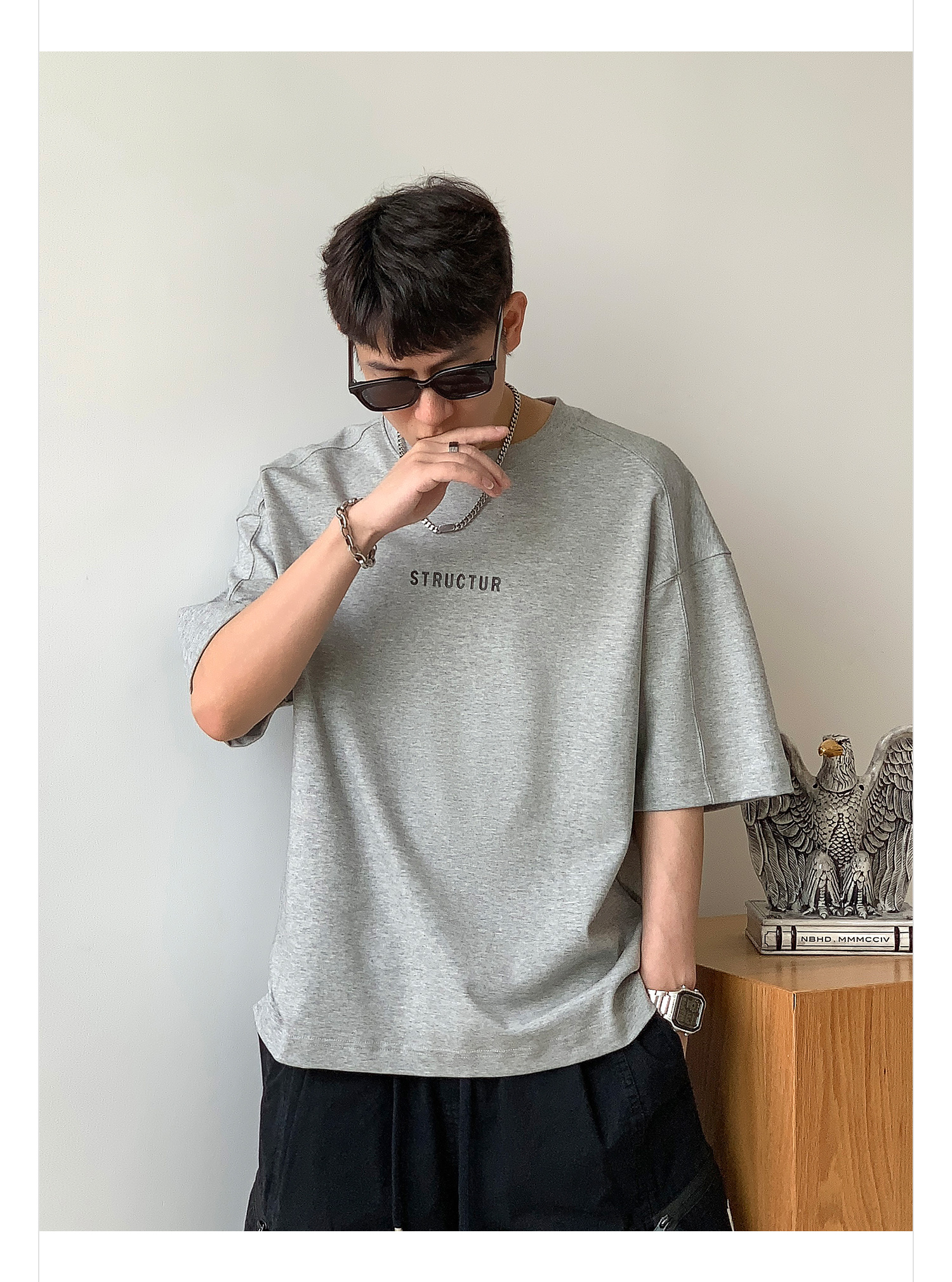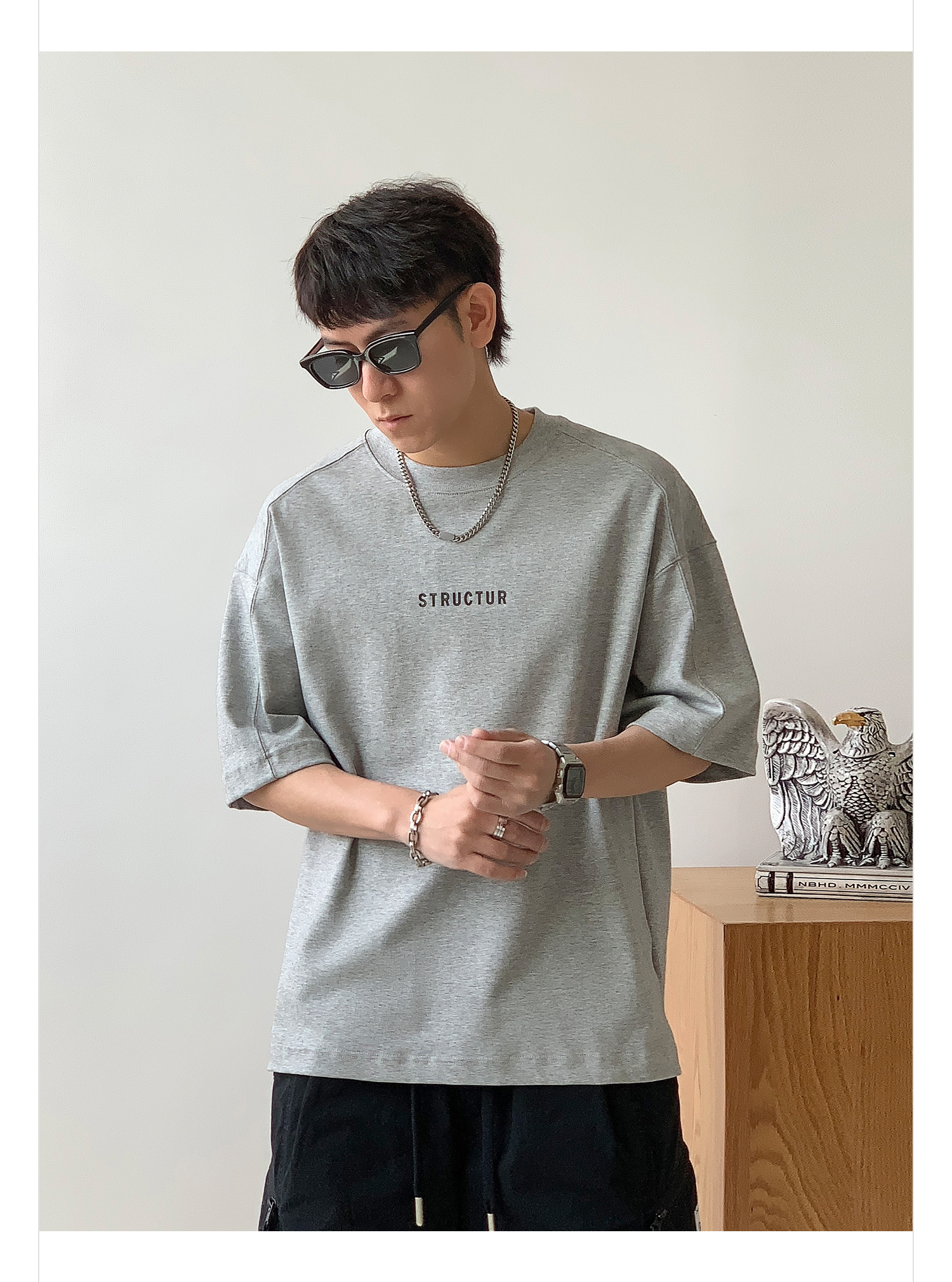 徐太浪美式休闲字母印花短袖T恤男2025新款夏季宽松半袖圆领上衣