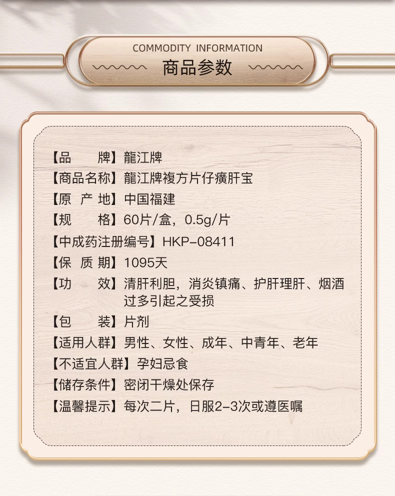 【香港直邮】清肝利胆消炎镇痛 正品龙江牌片仔癀肝宝 (60S)