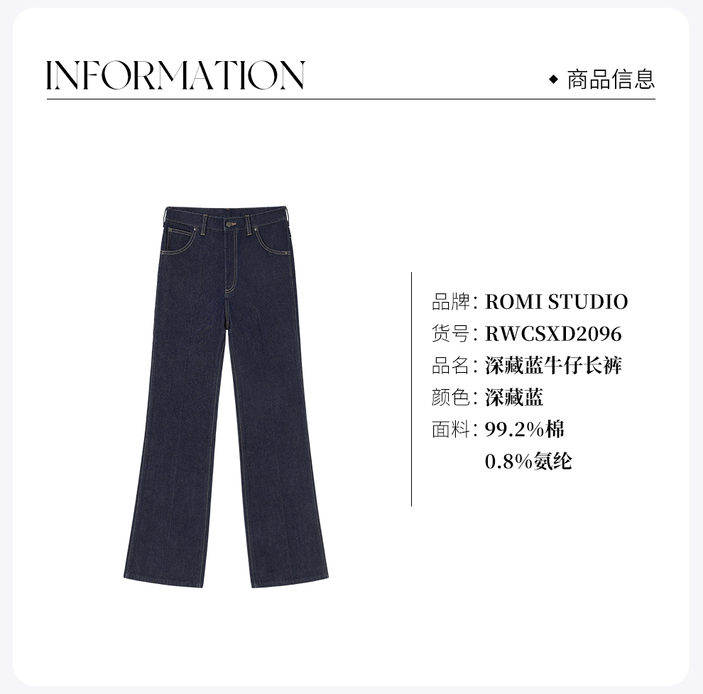 ROMI STUDIO“复古优雅”经典赤耳丹宁超模微喇牛仔裤 RWCSXD2096【发货时效25天】