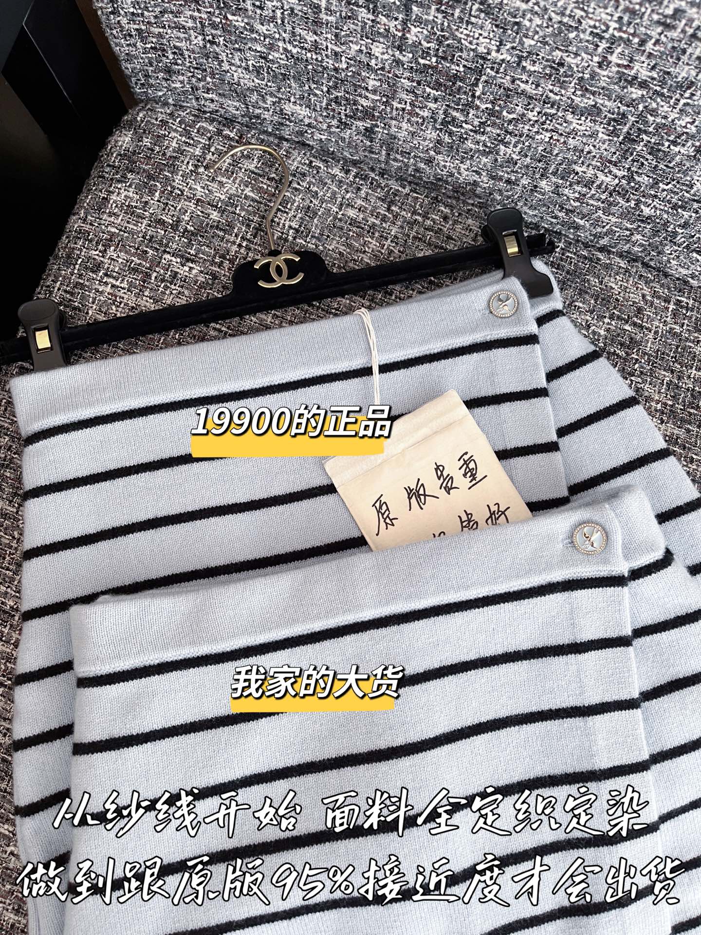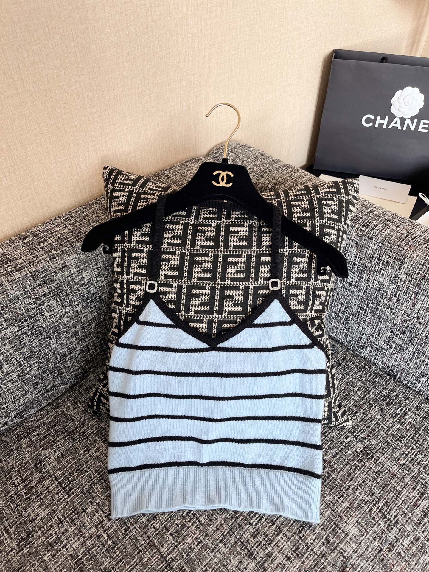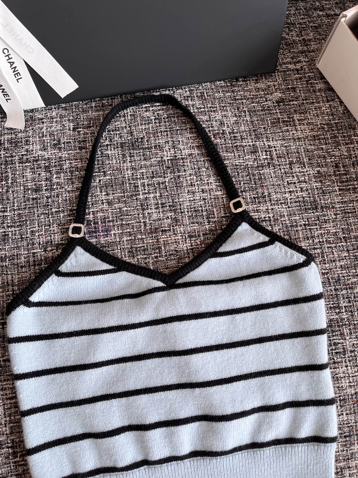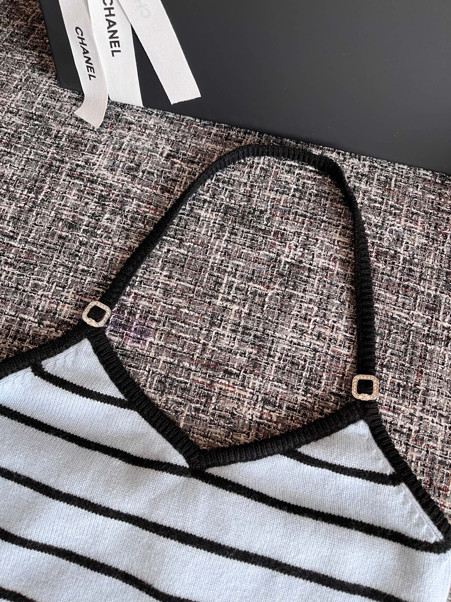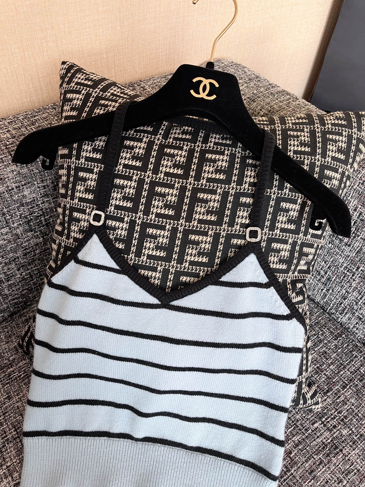 CHANEL 香奈儿25早春条纹露肩吊带条纹裙裤套装🐮