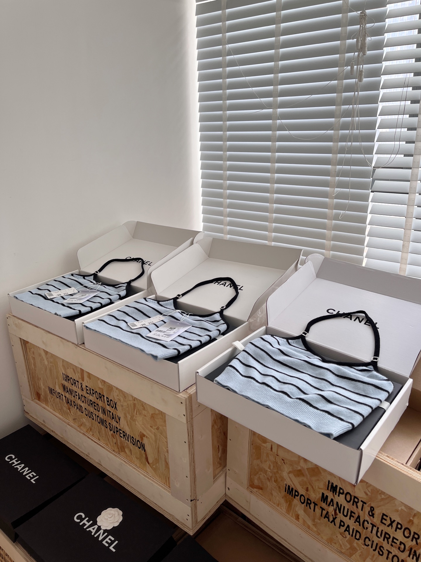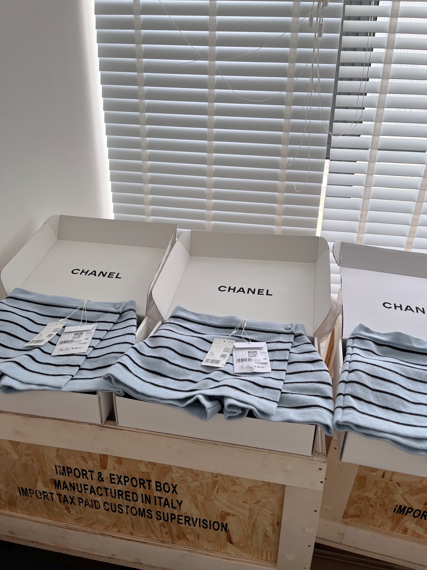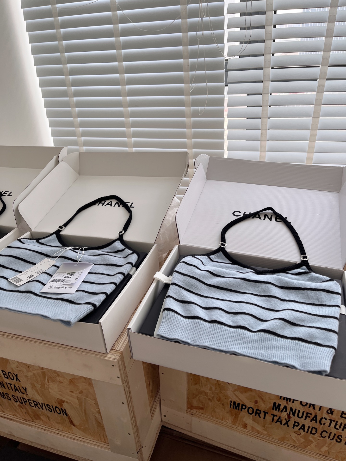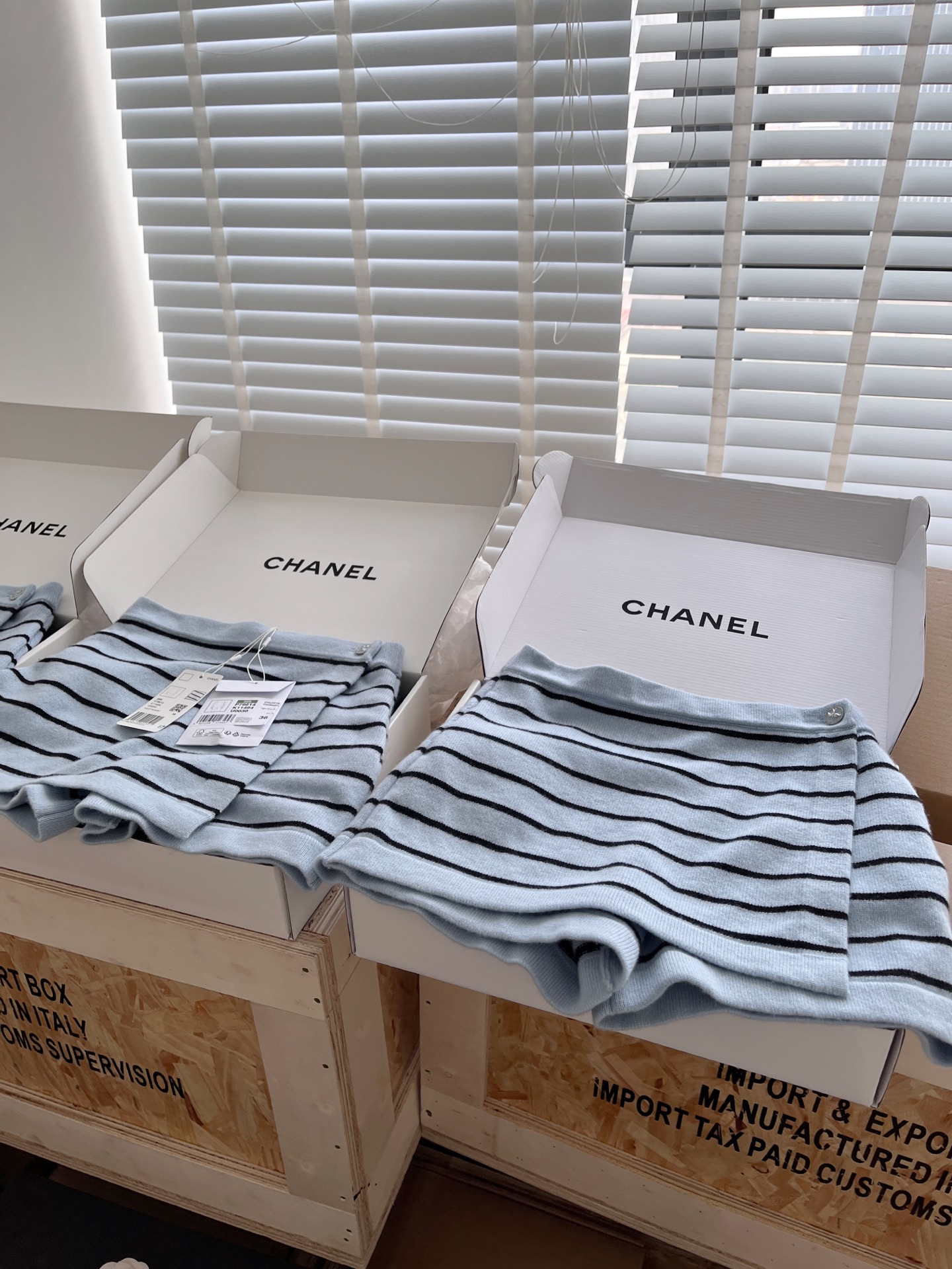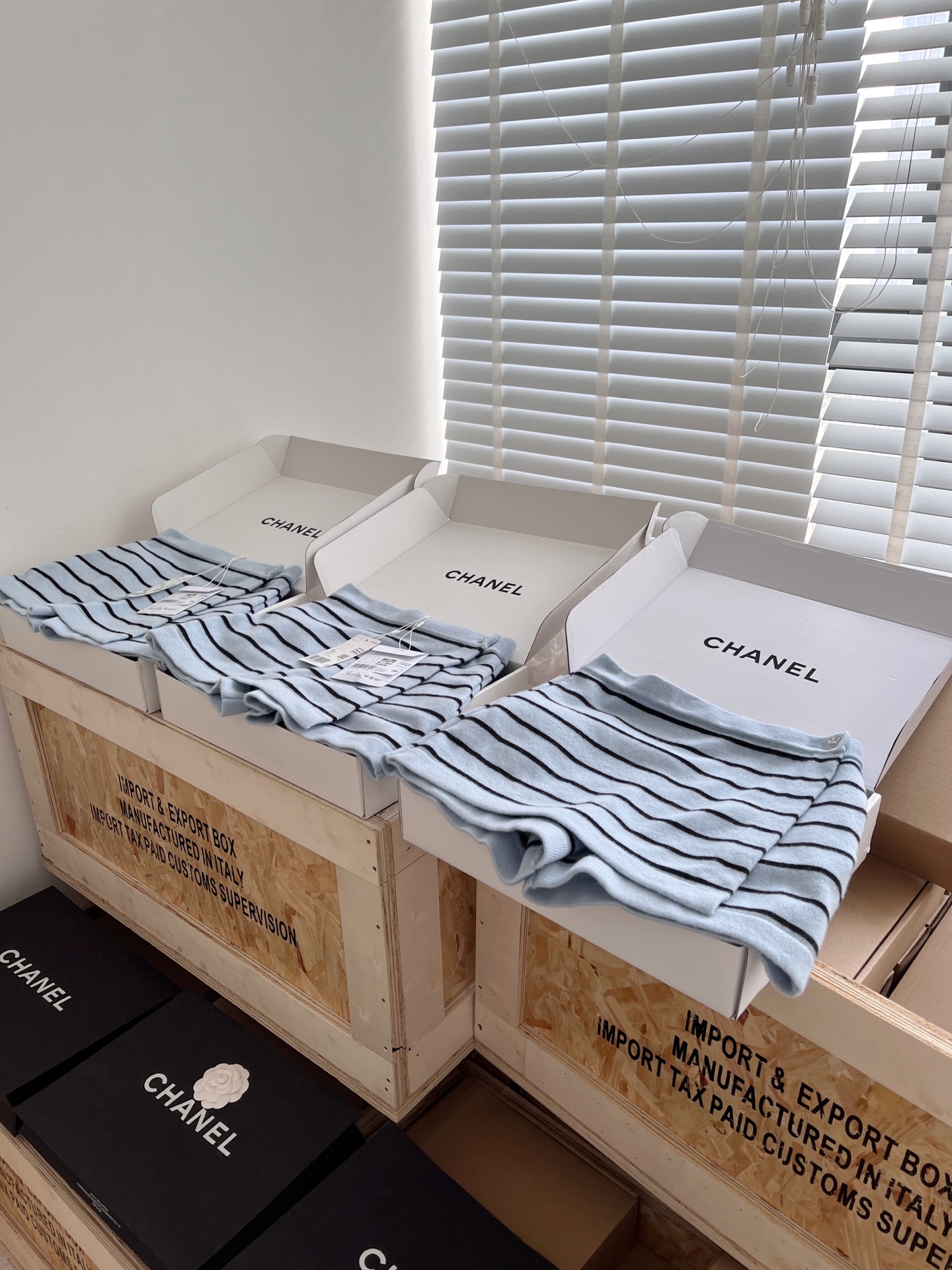 CHANEL 香奈儿25早春条纹露肩吊带条纹裙裤套装🐮