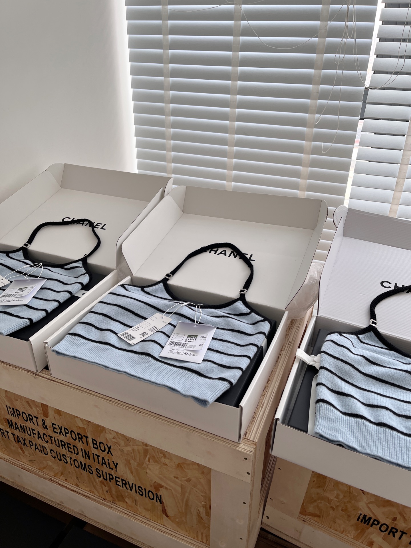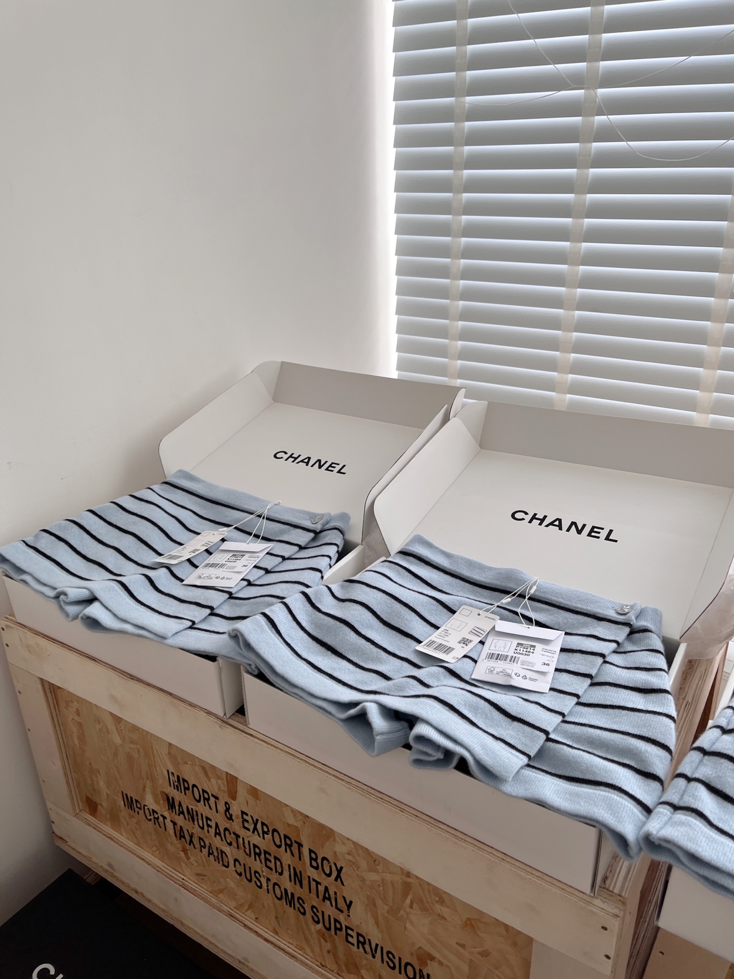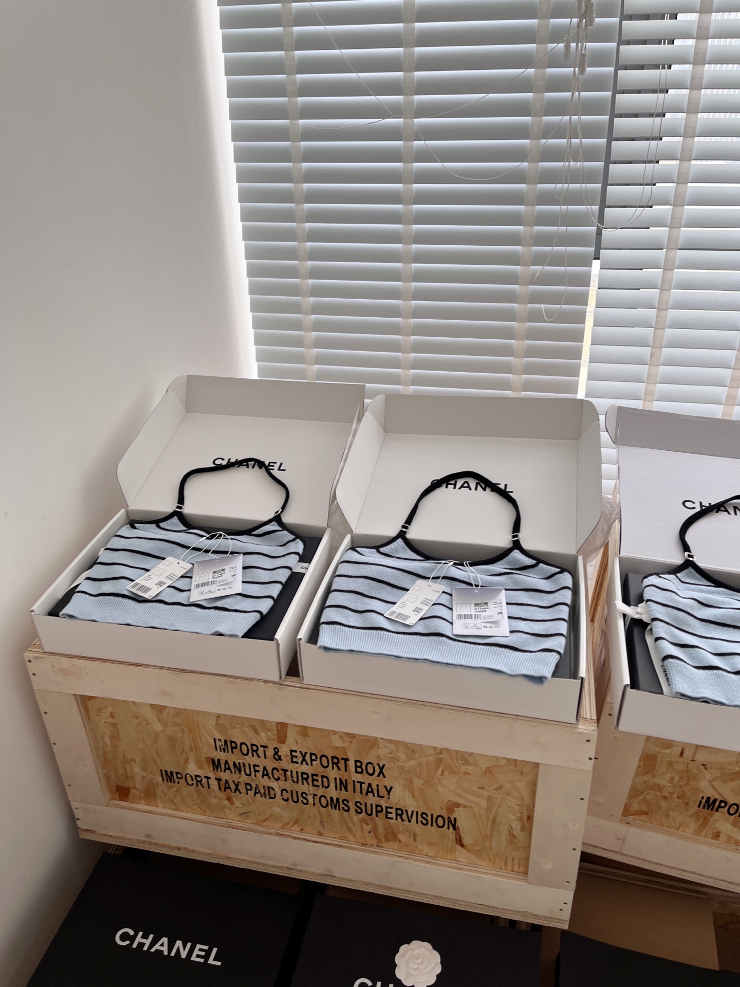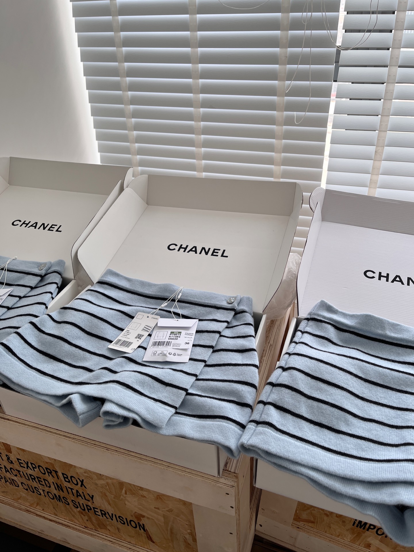 CHANEL 香奈儿25早春条纹露肩吊带条纹裙裤套装🐮