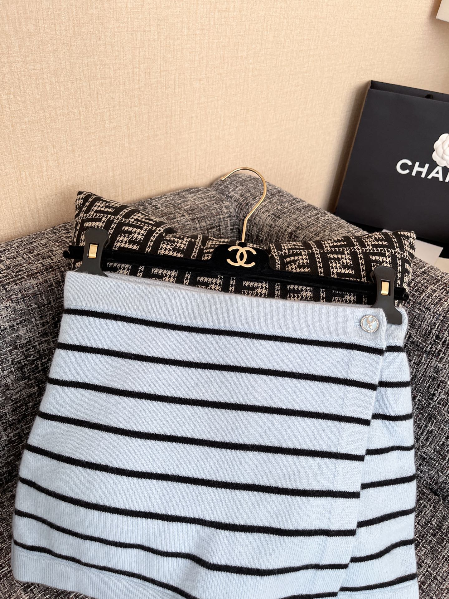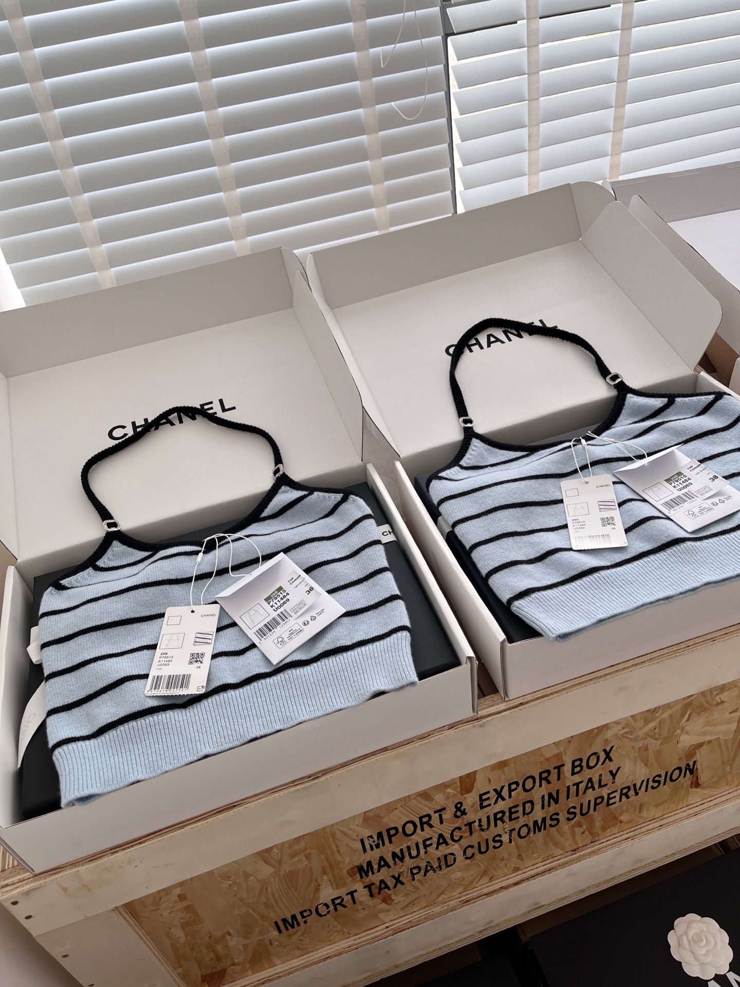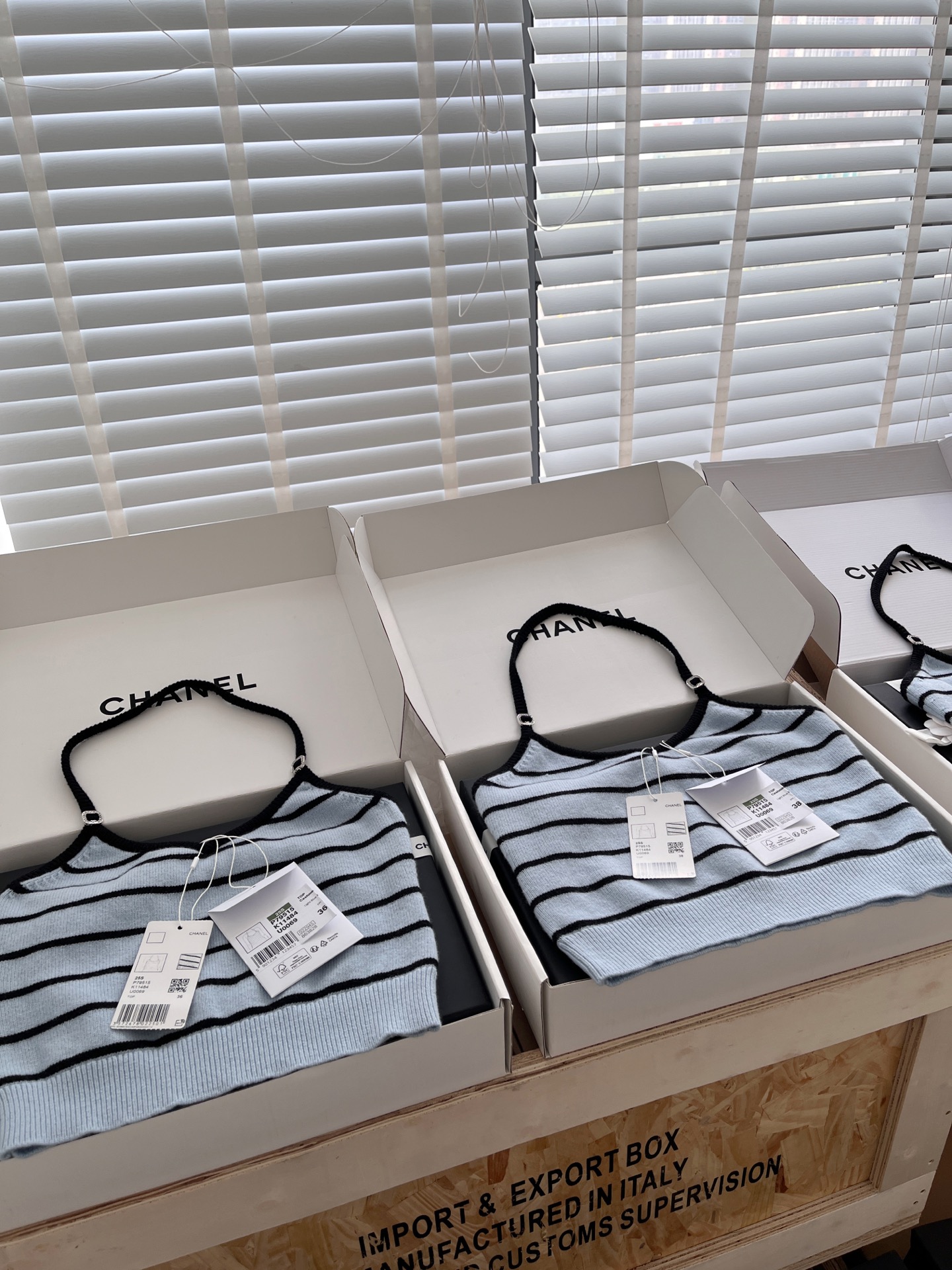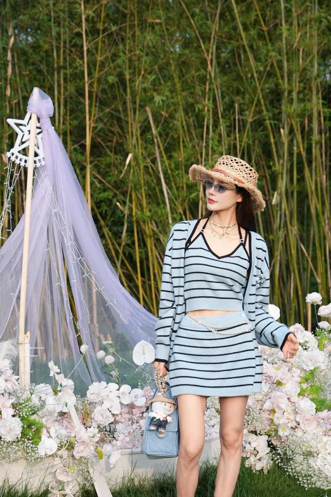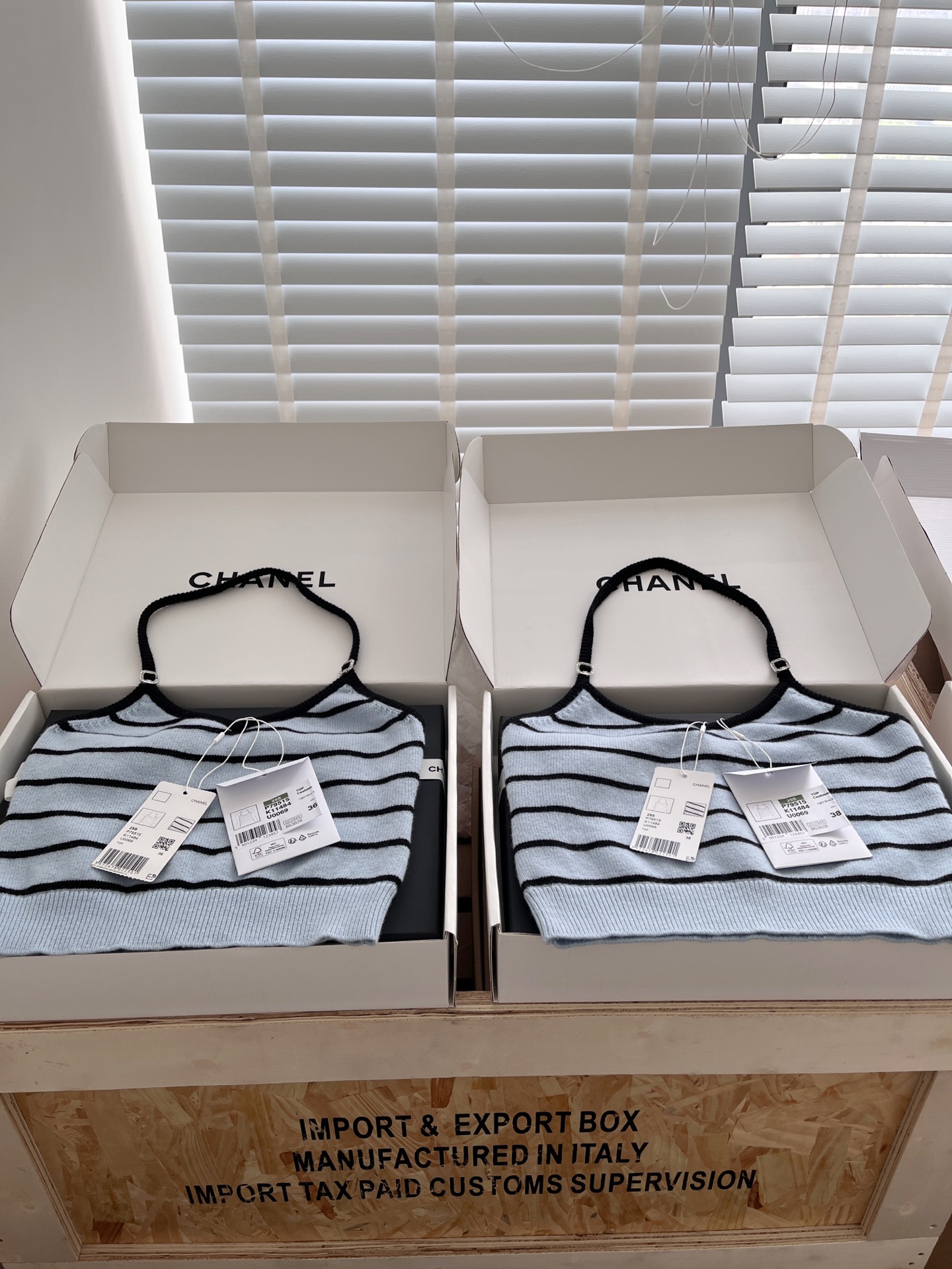 CHANEL 香奈儿25早春条纹露肩吊带条纹裙裤套装🐮