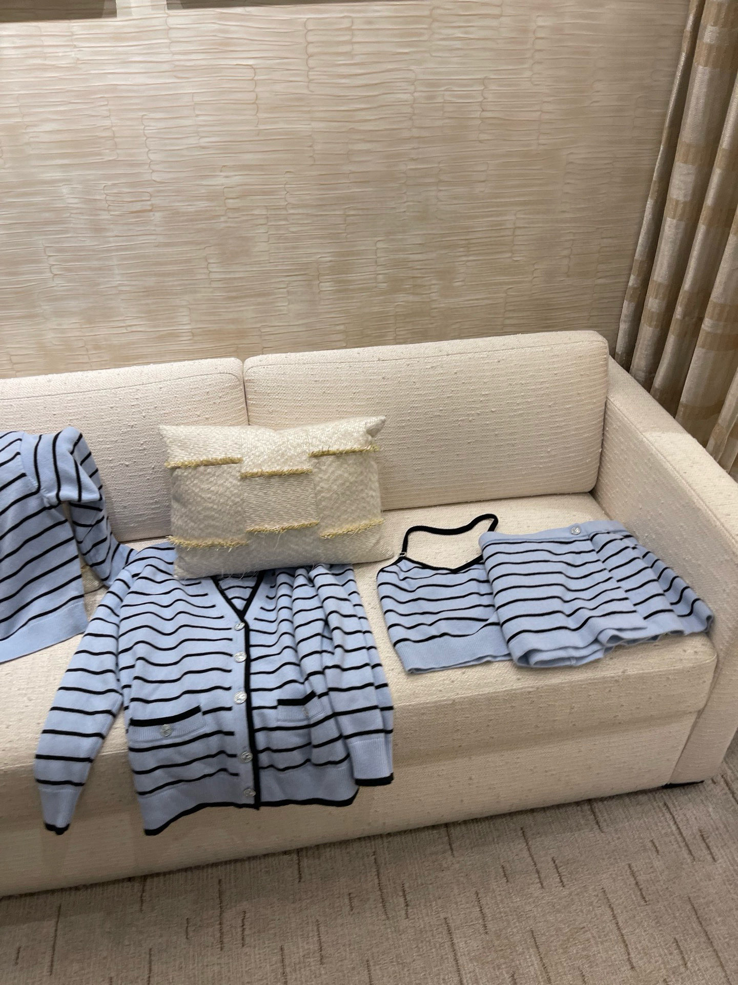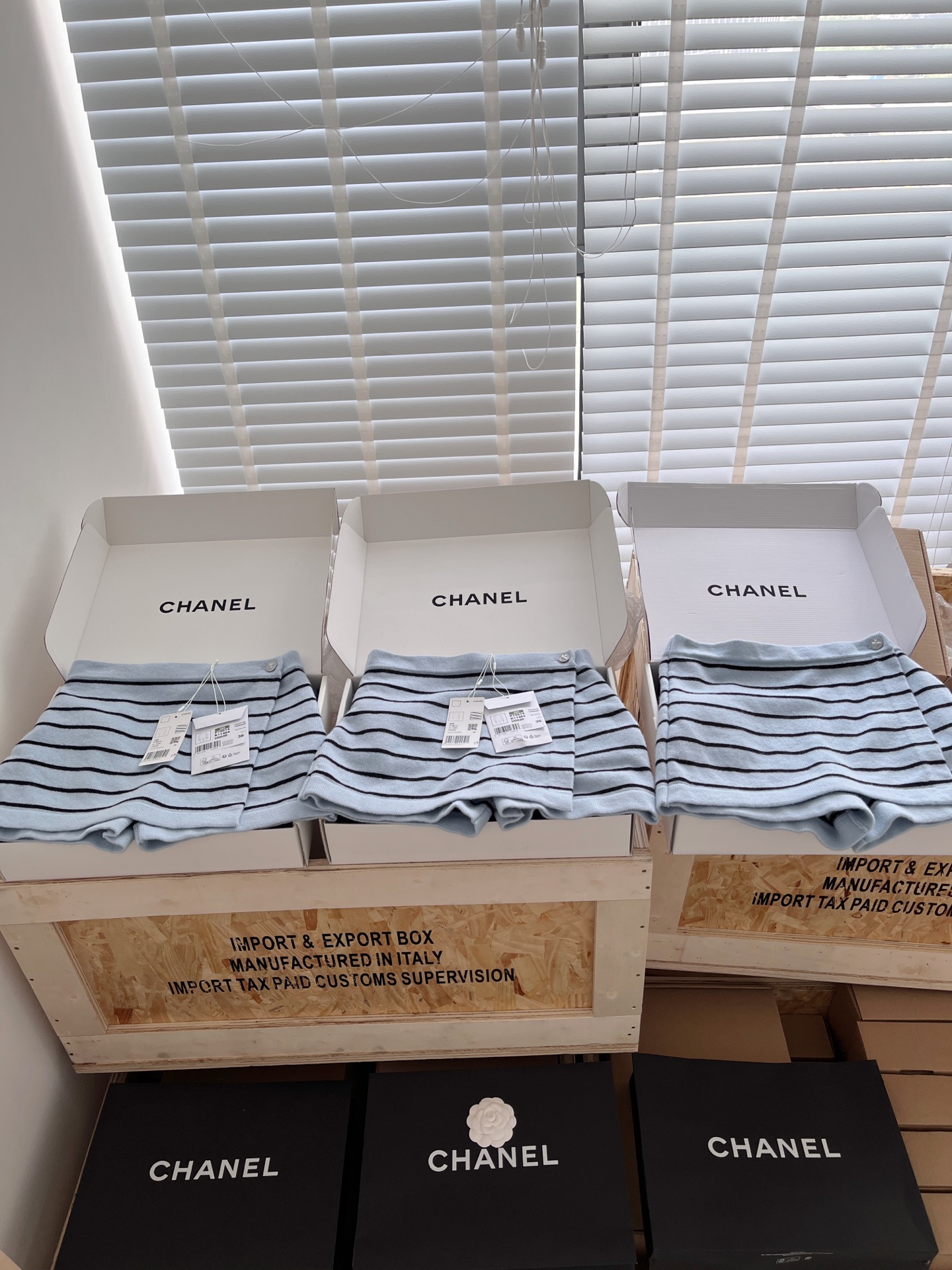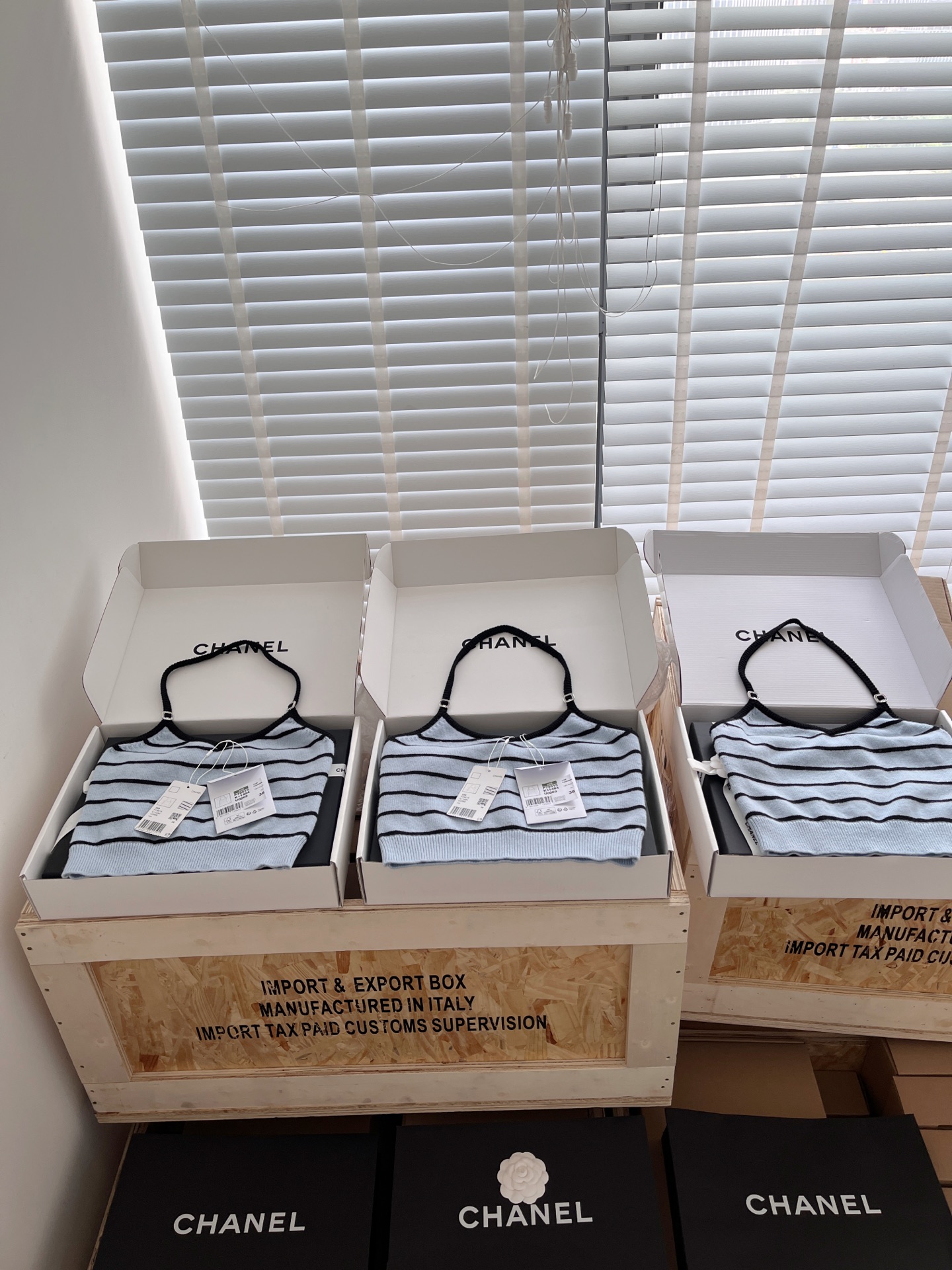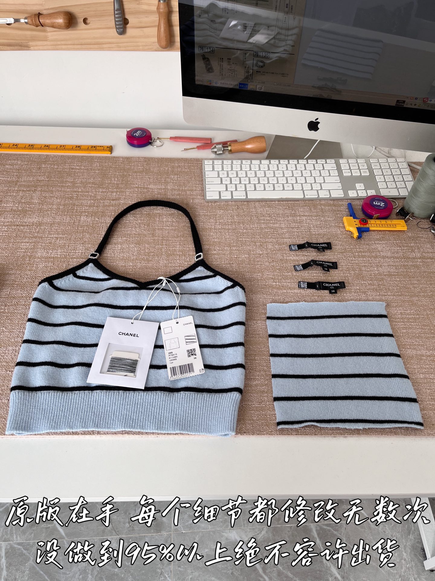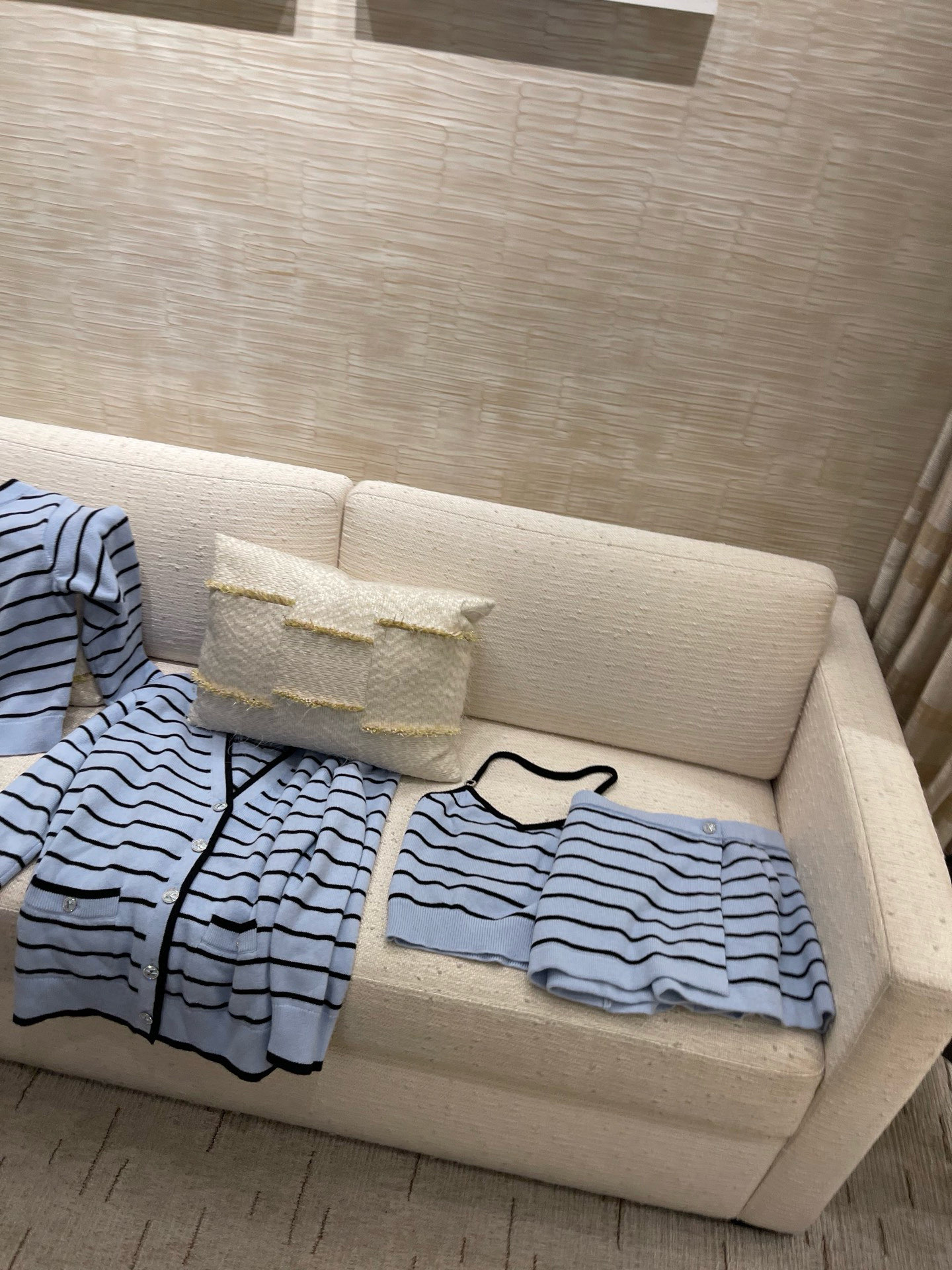 CHANEL 香奈儿25早春条纹露肩吊带条纹裙裤套装🐮