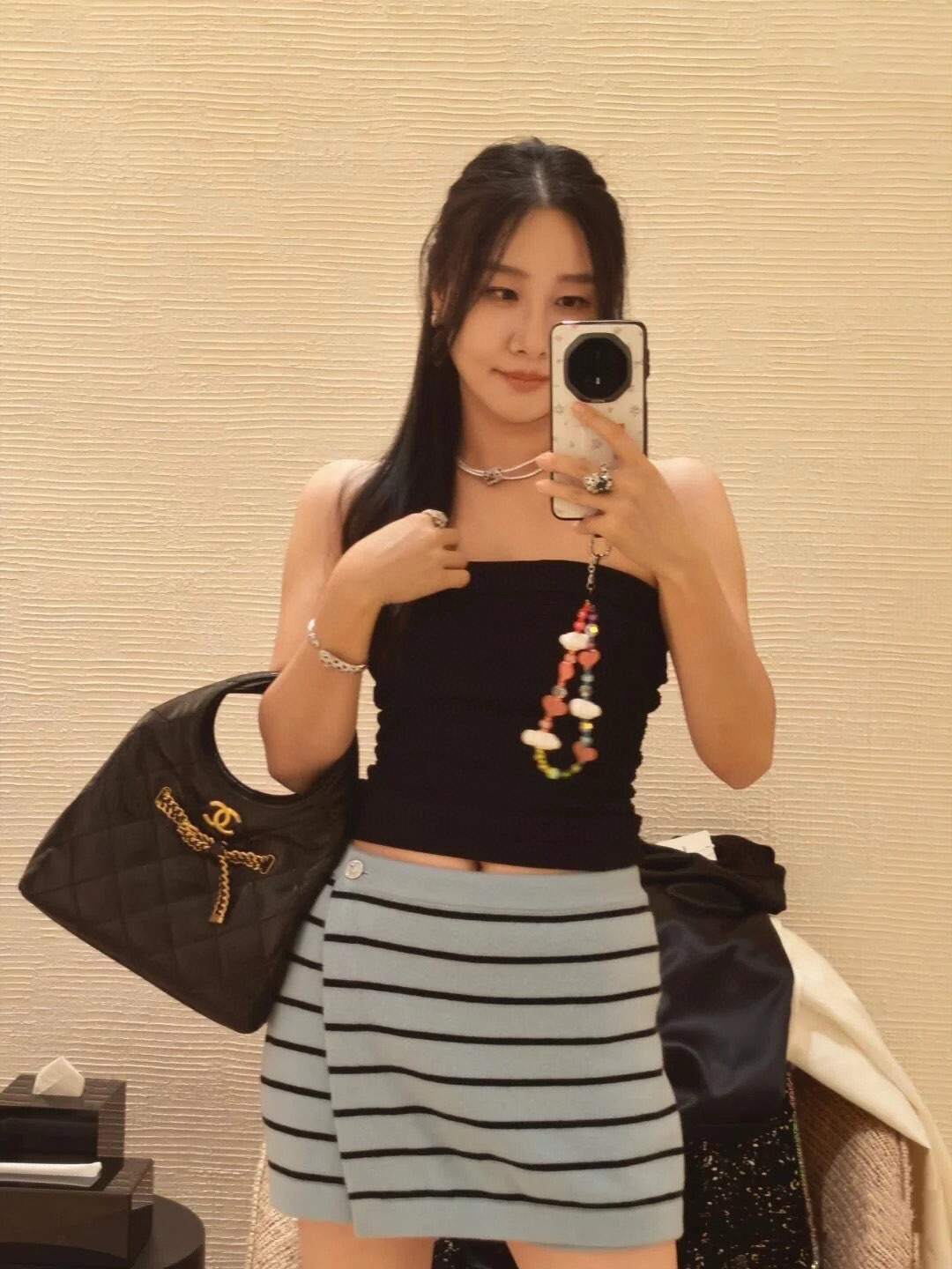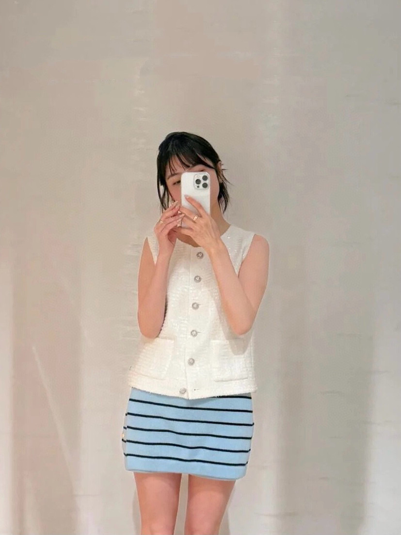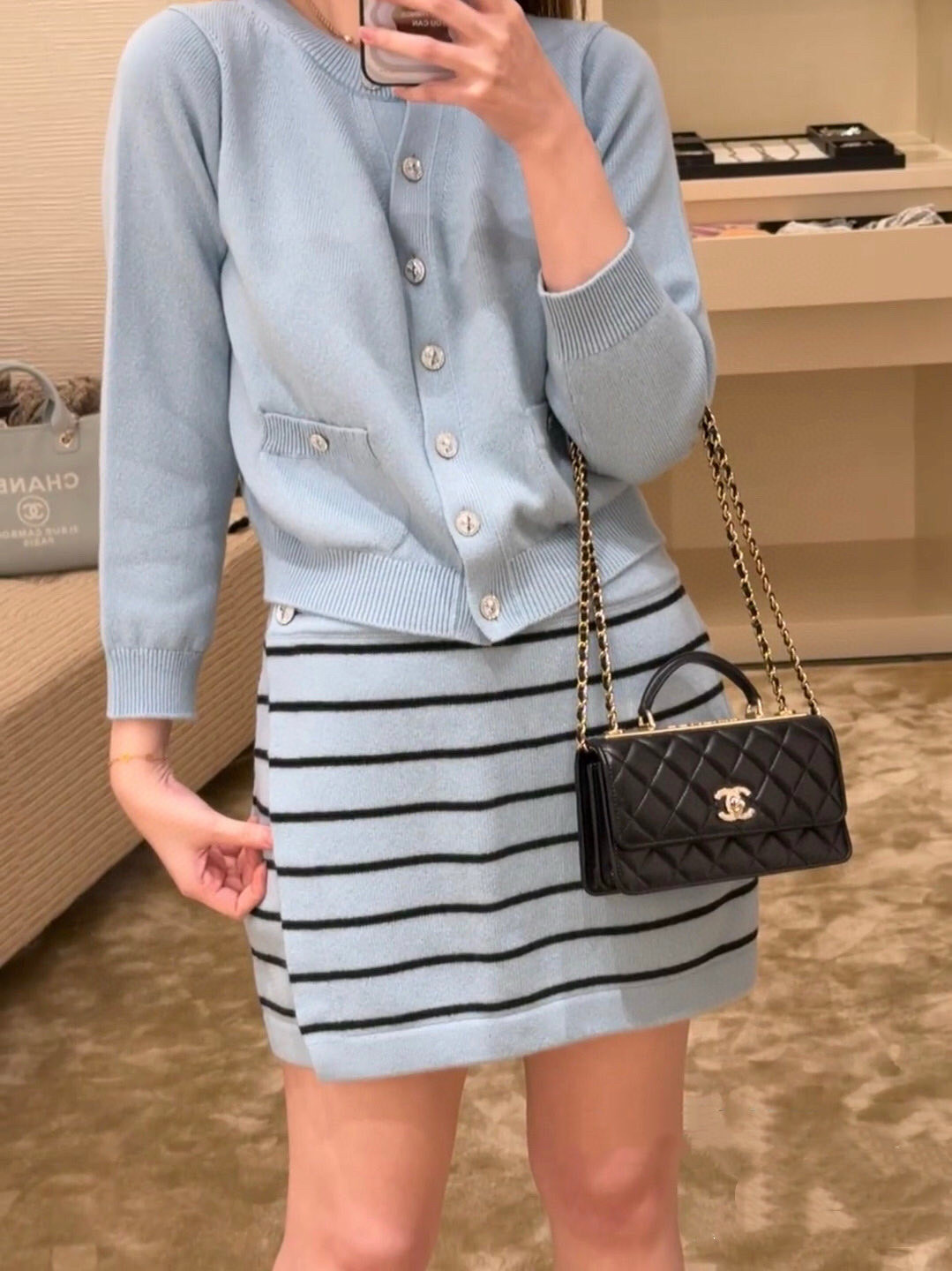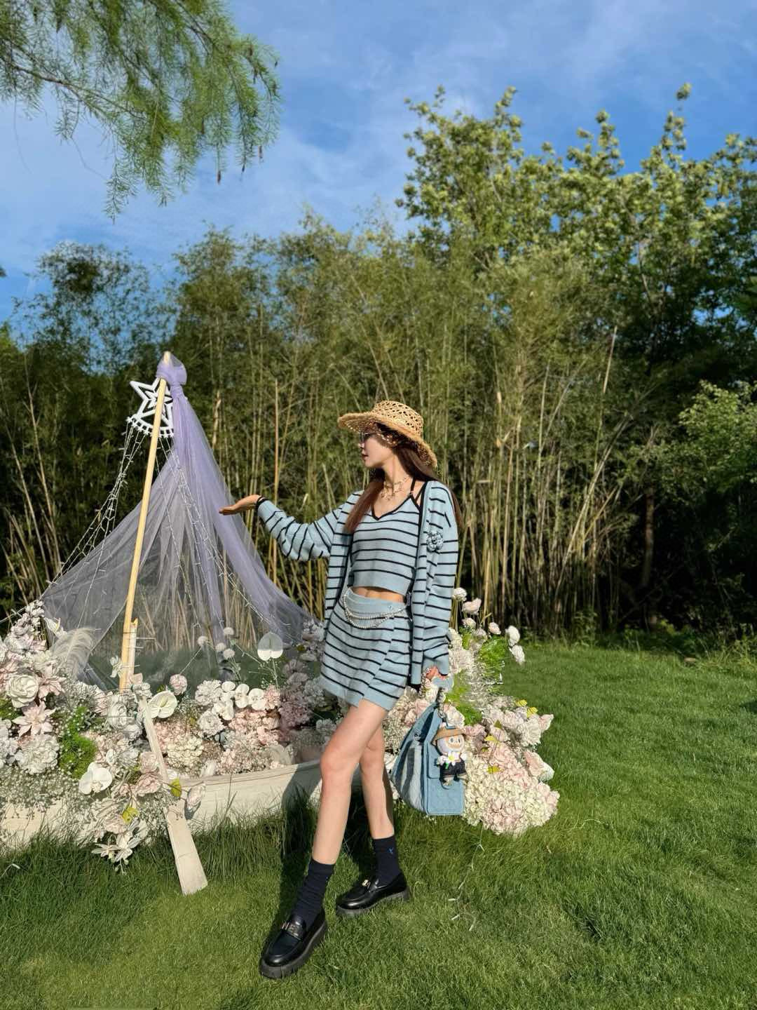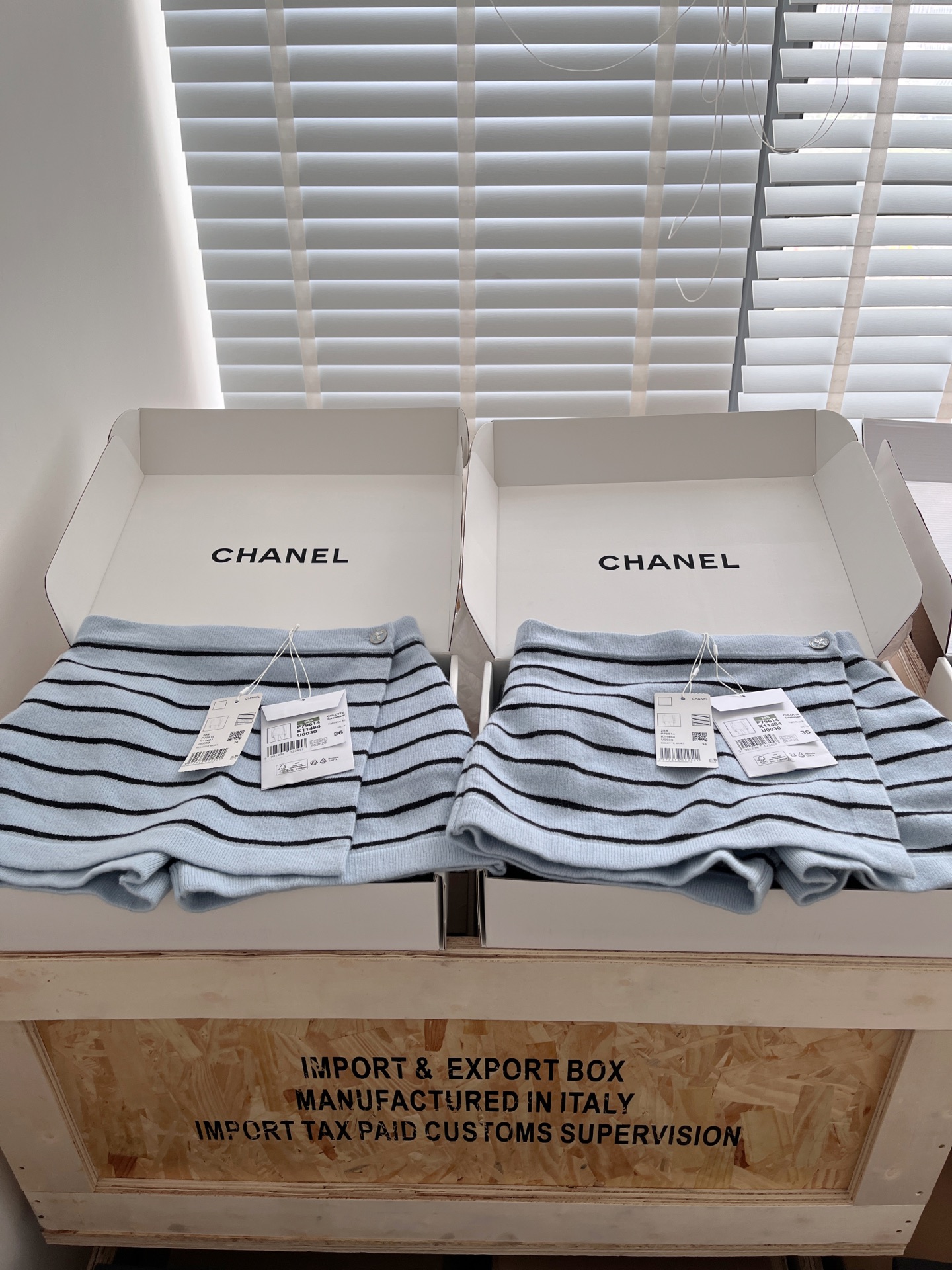 CHANEL 香奈儿25早春条纹露肩吊带条纹裙裤套装🐮