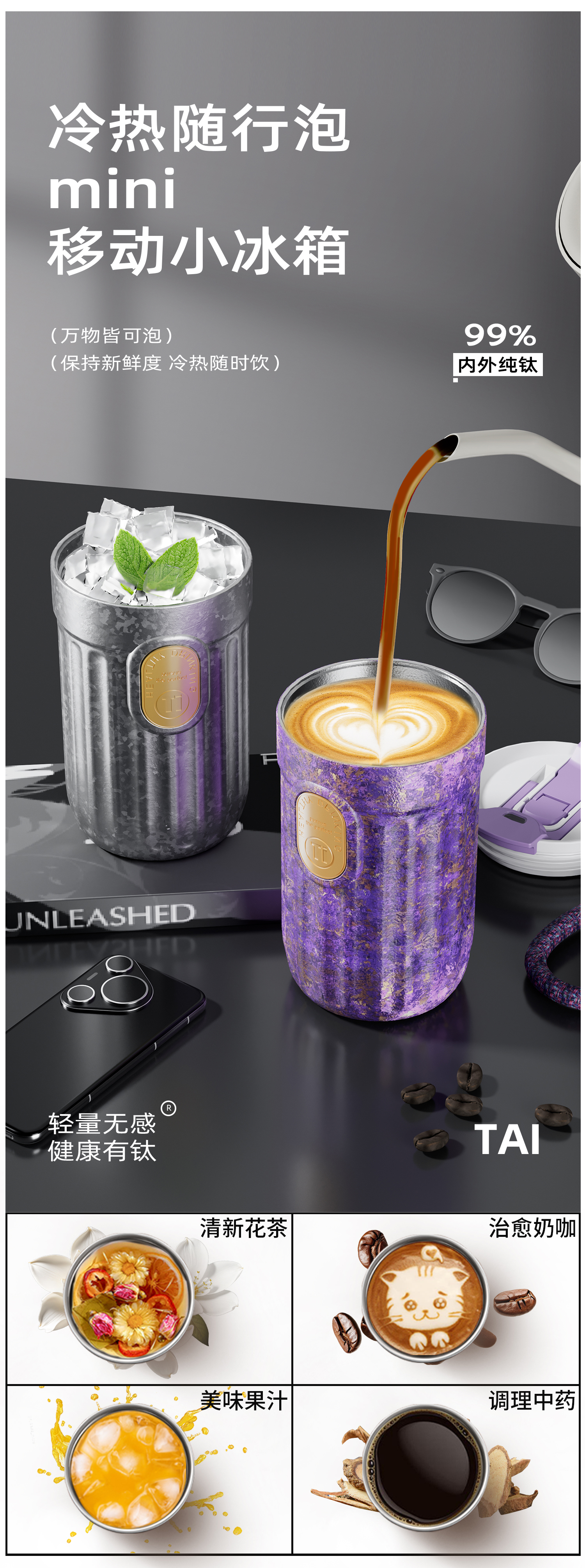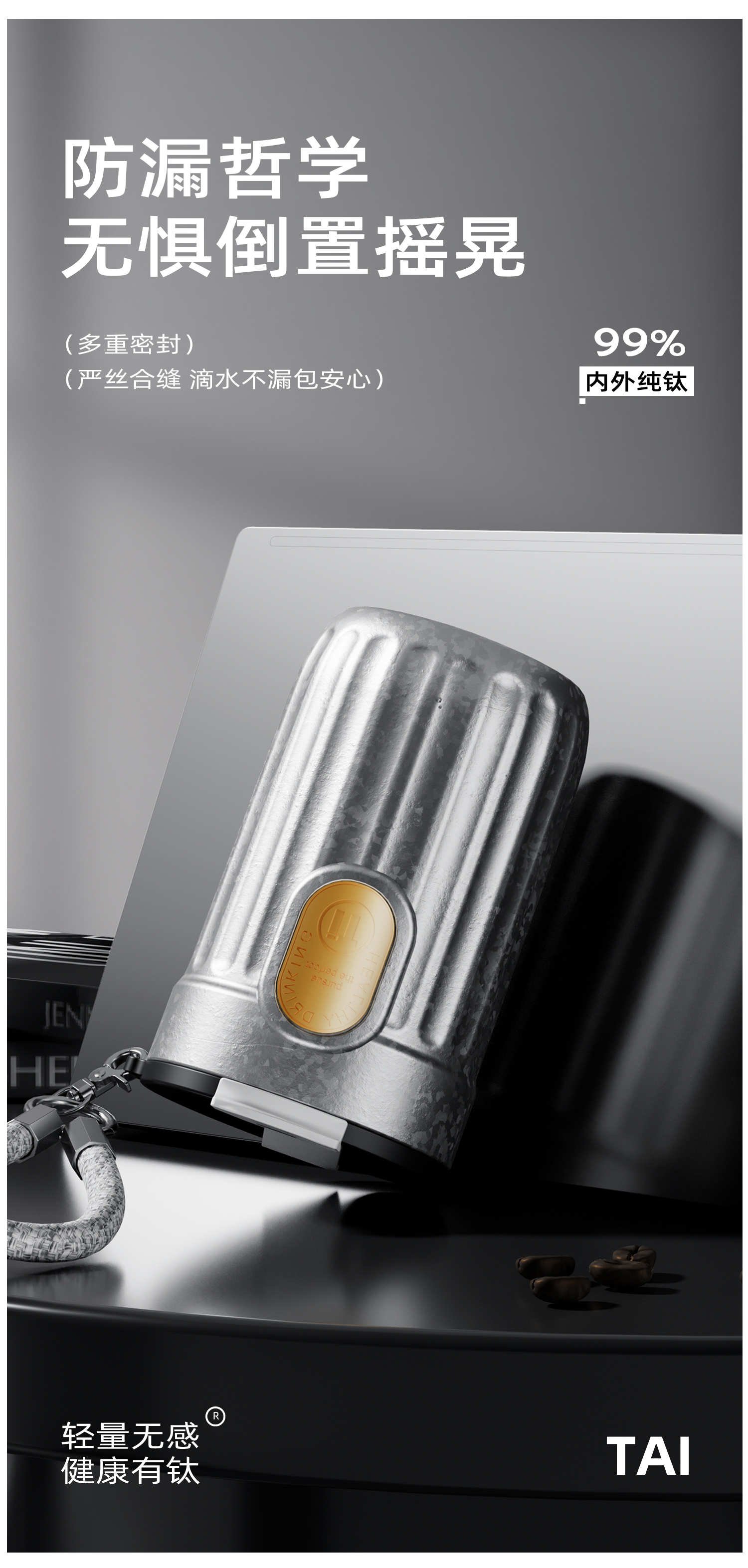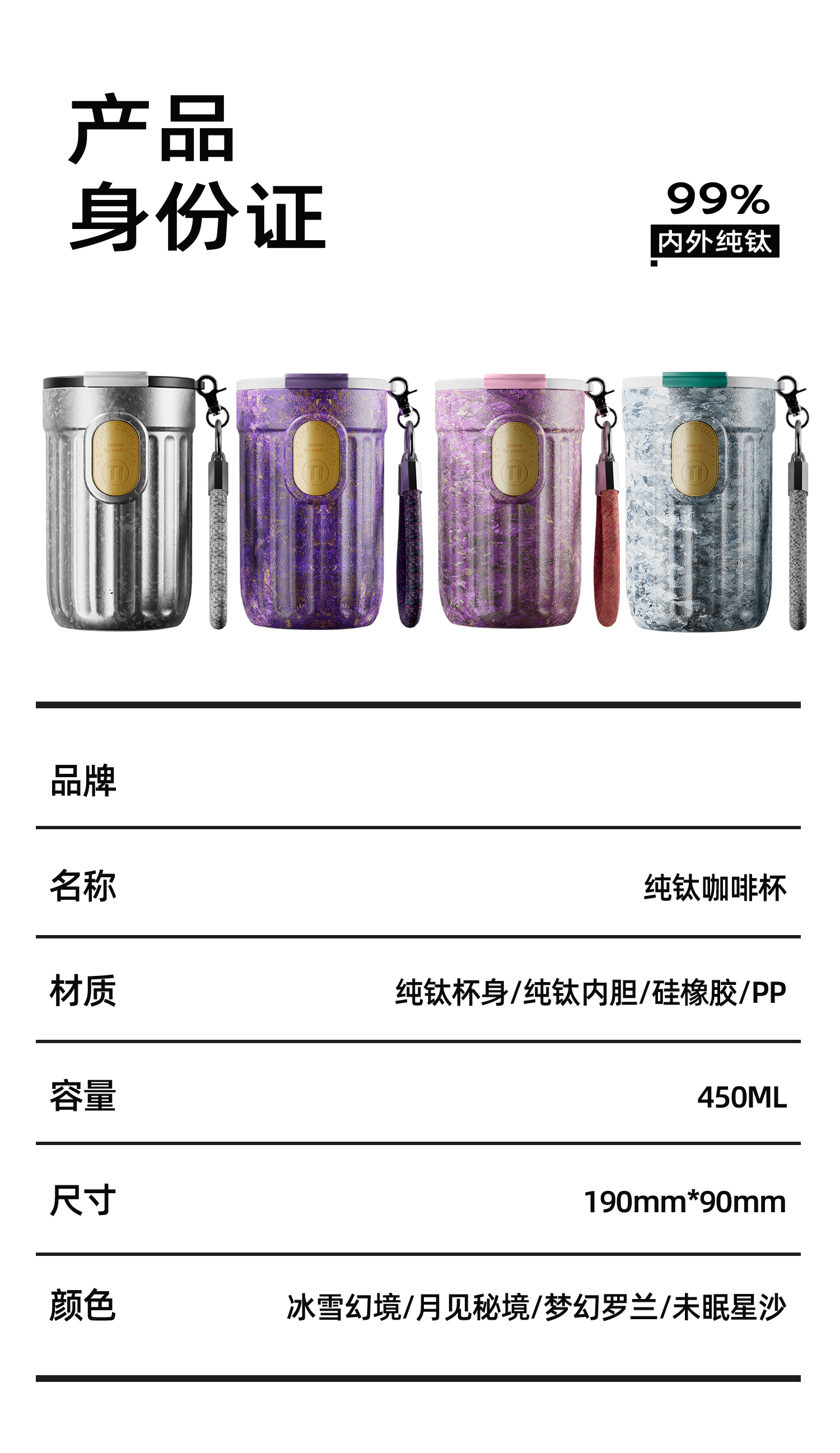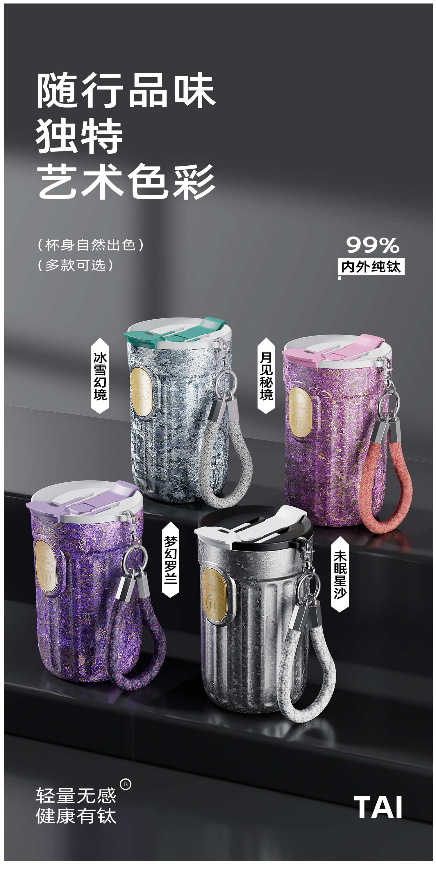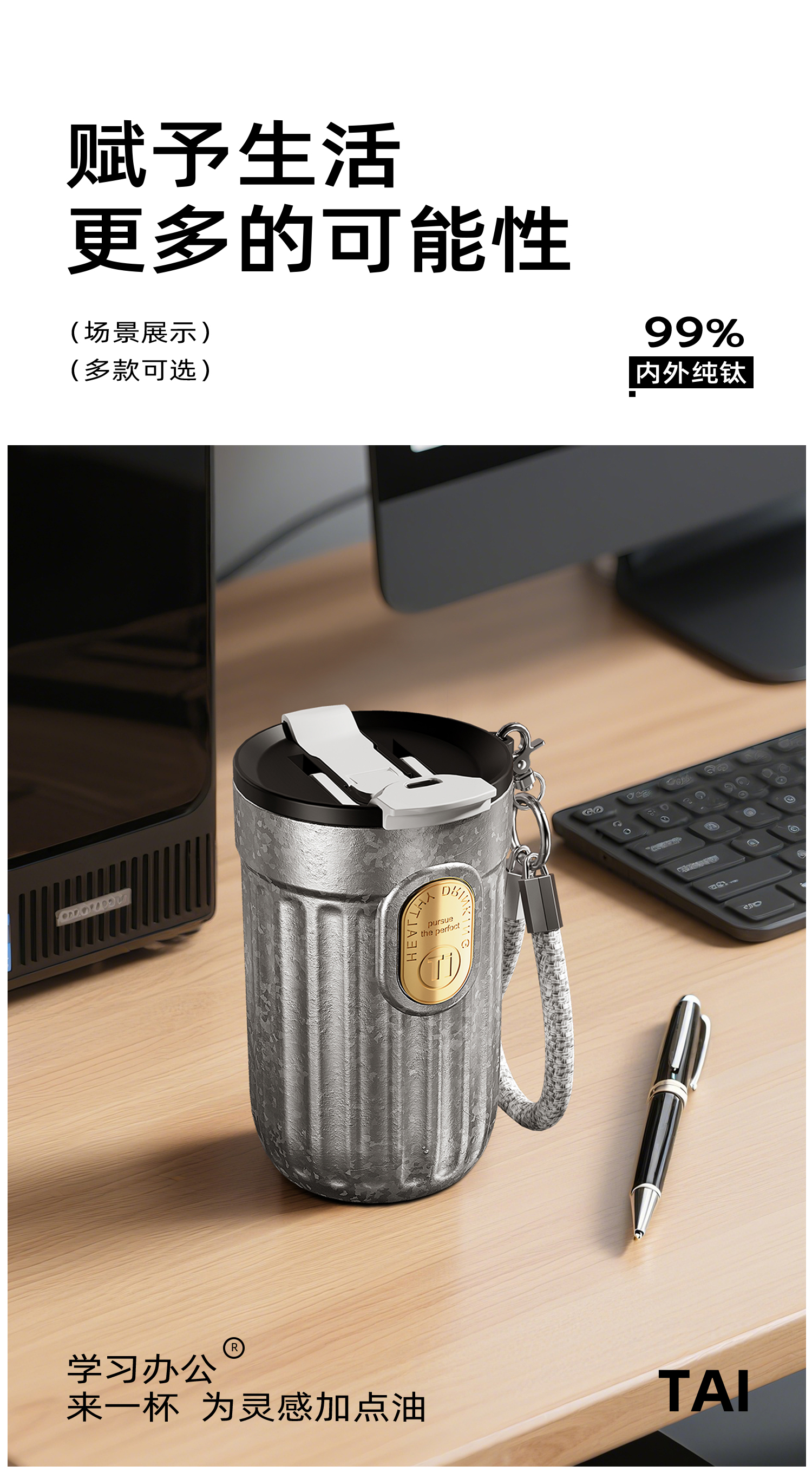 壹滴水纯钛咖啡杯带提绳男女士450毫升咖啡杯