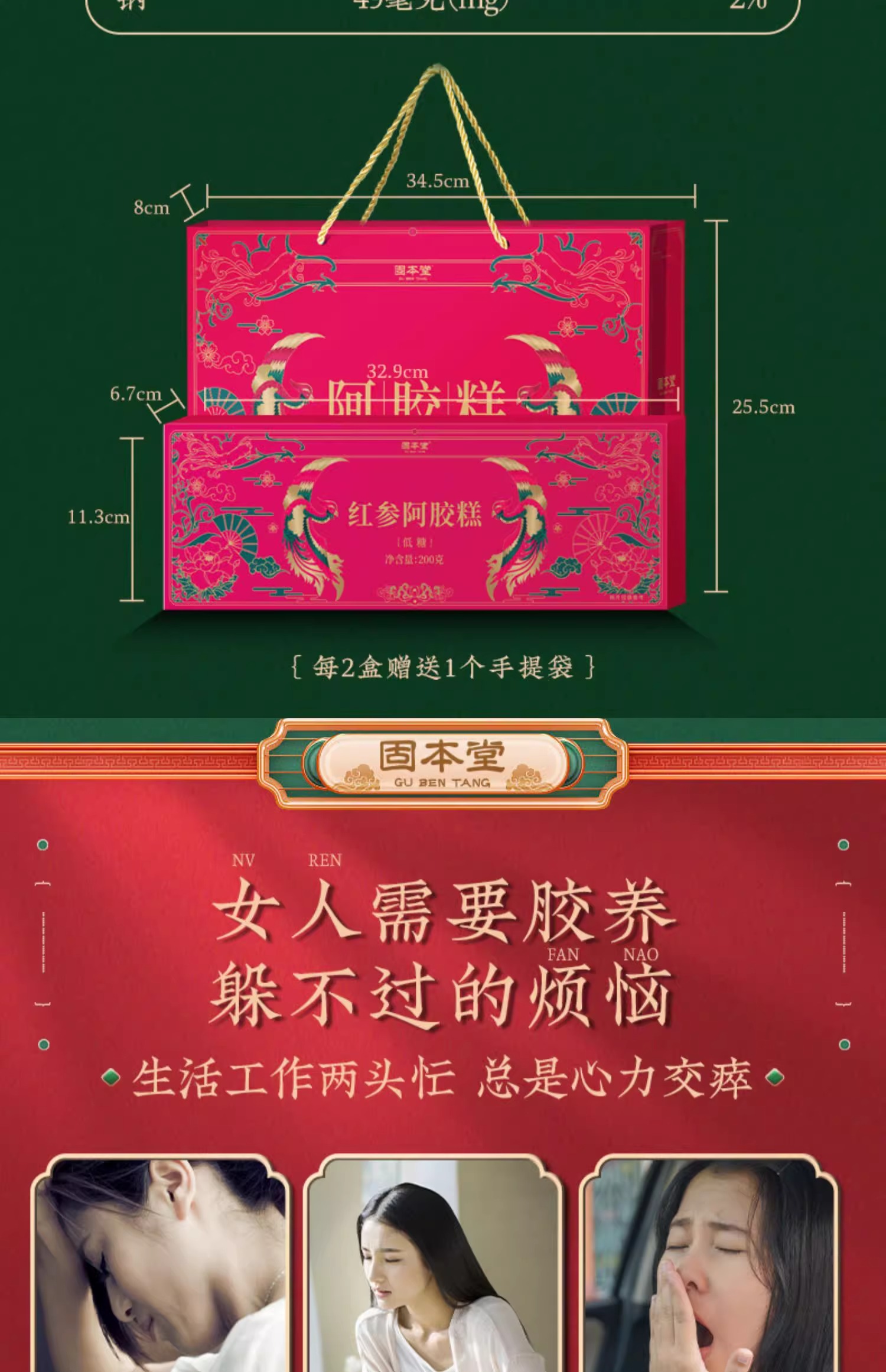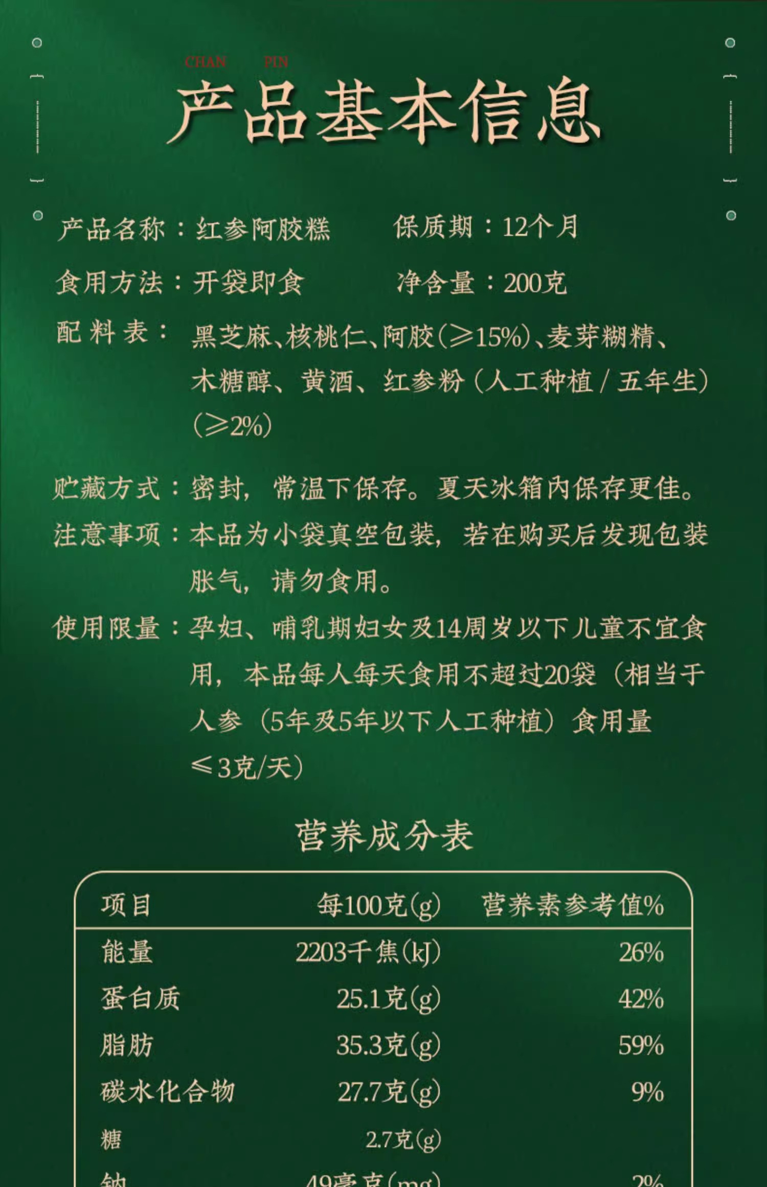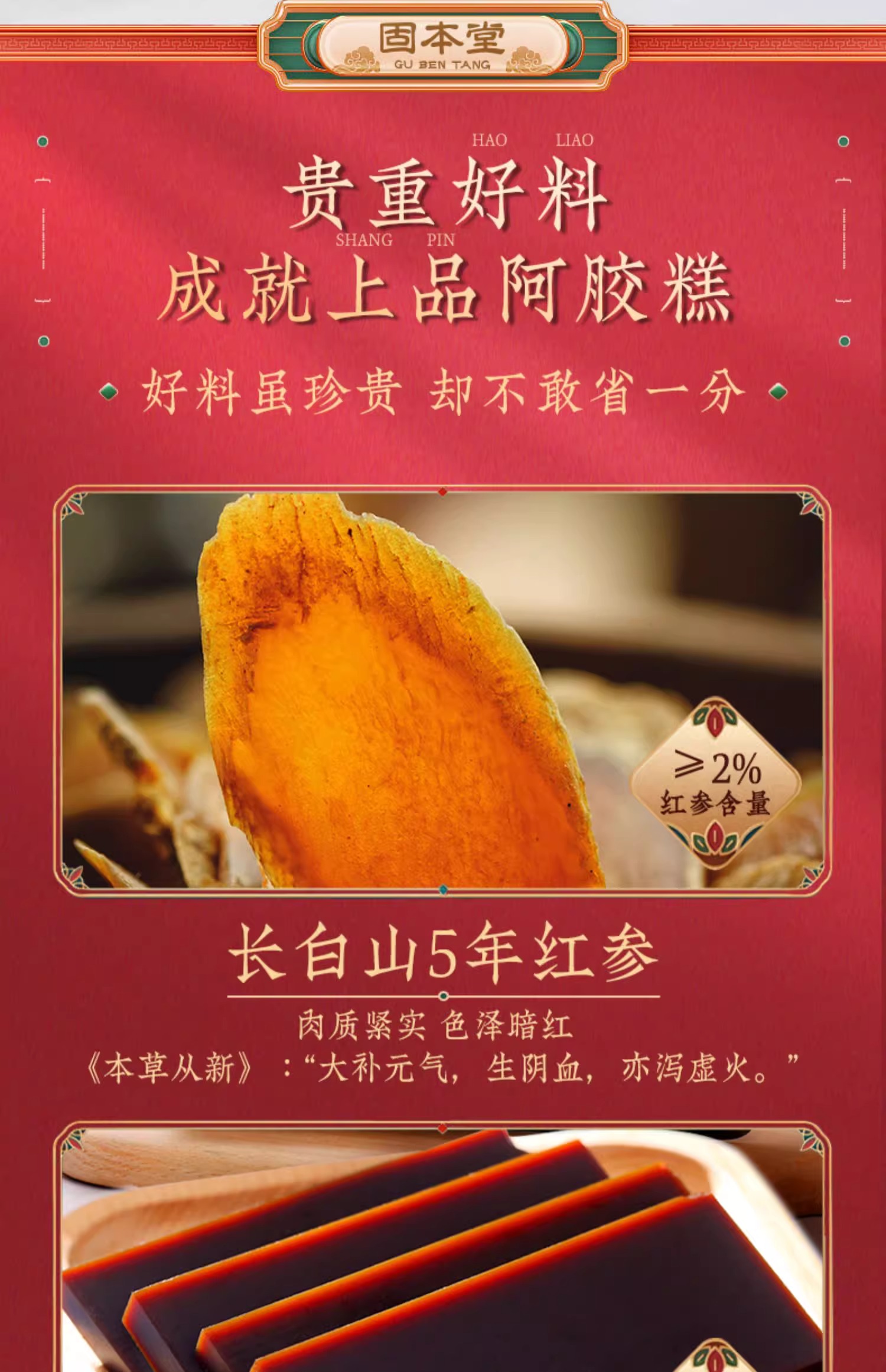红参阿胶糕200g 即食阿胶糕膏片块礼盒滋补男女送父母妈妈营养品补品送礼长辈 【固本堂】