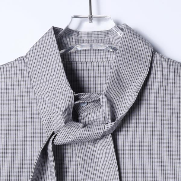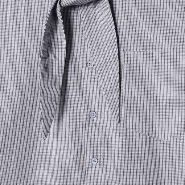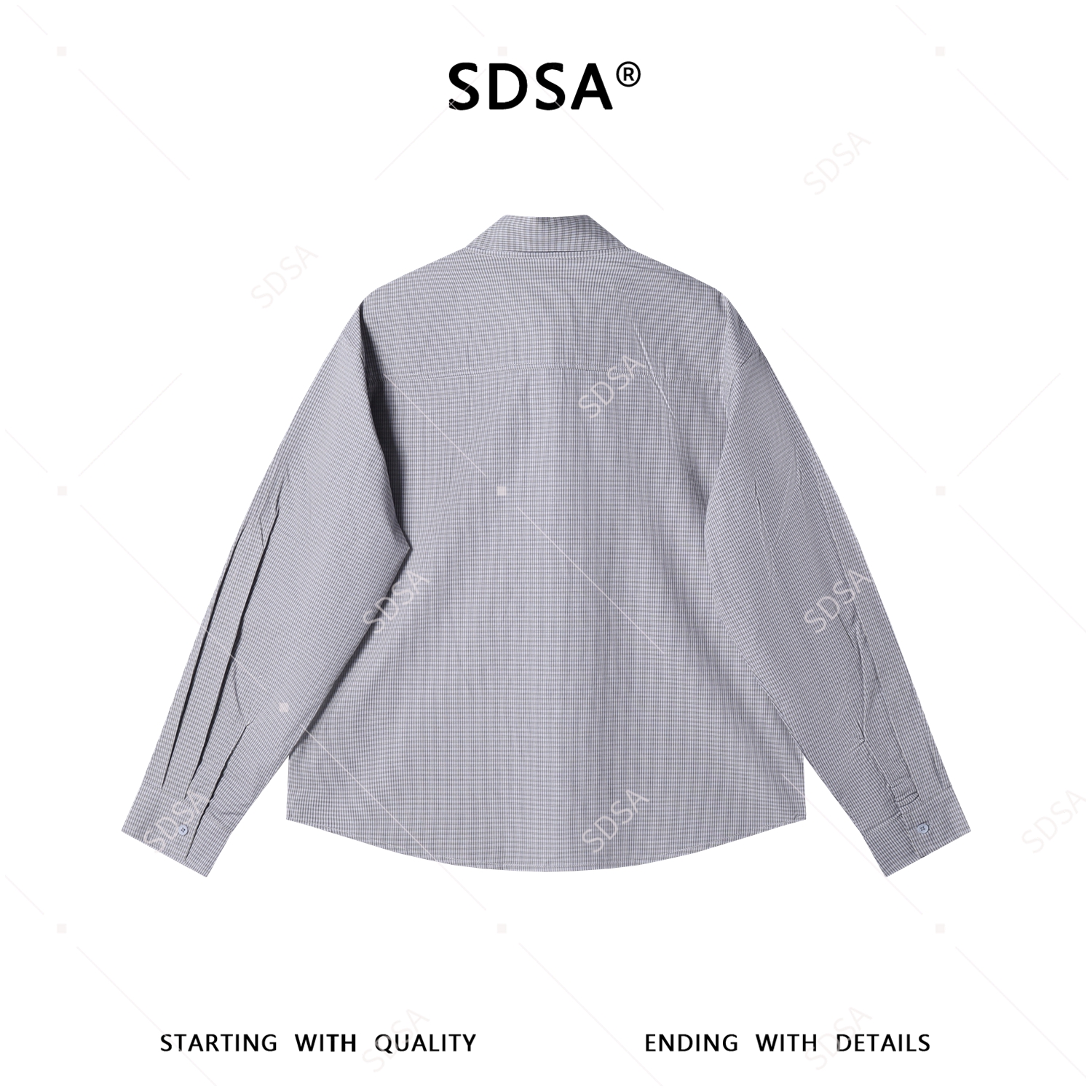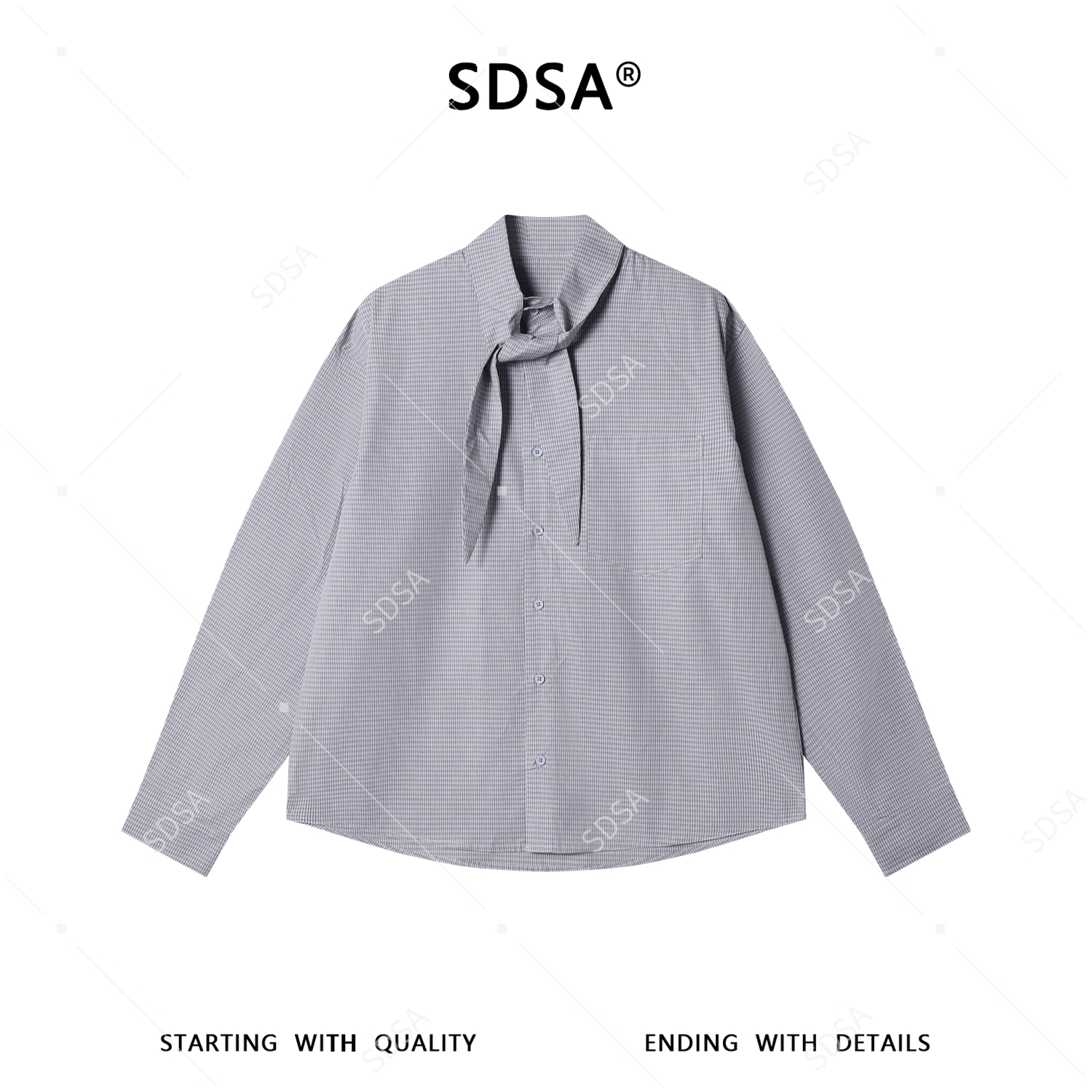 SDSA男装2026新款高贵轻奢细格纹系带衬衫宽松设计感百搭长袖衬衫