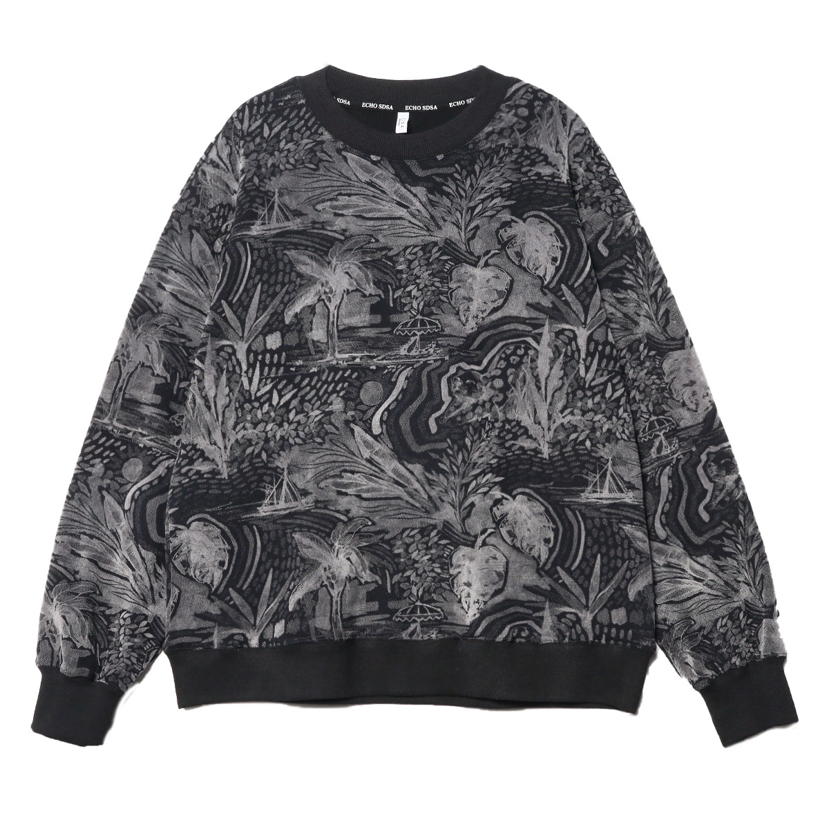 WY35新款热带海滩素描感印花卫衣男女秋季休闲宽松时尚长袖上衣