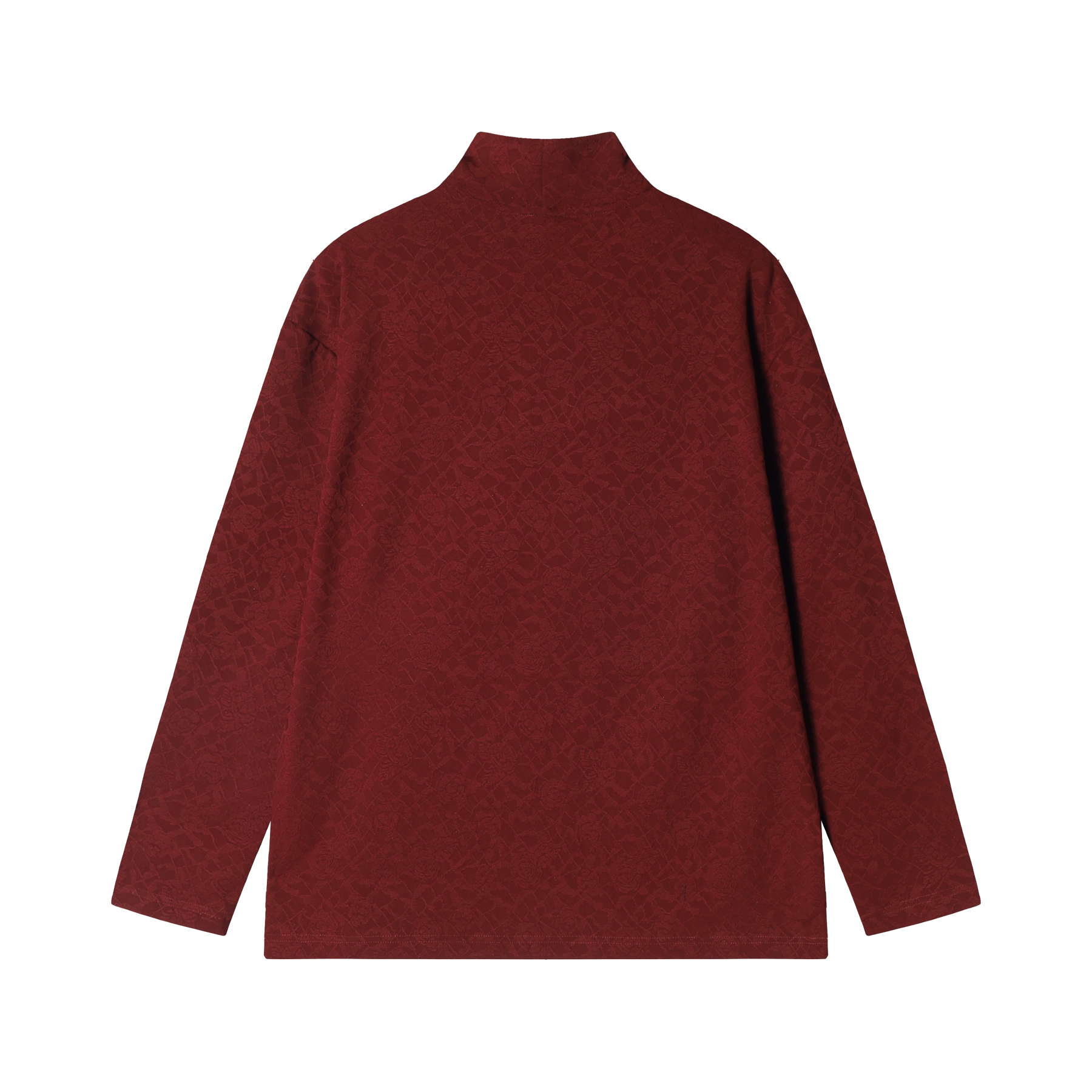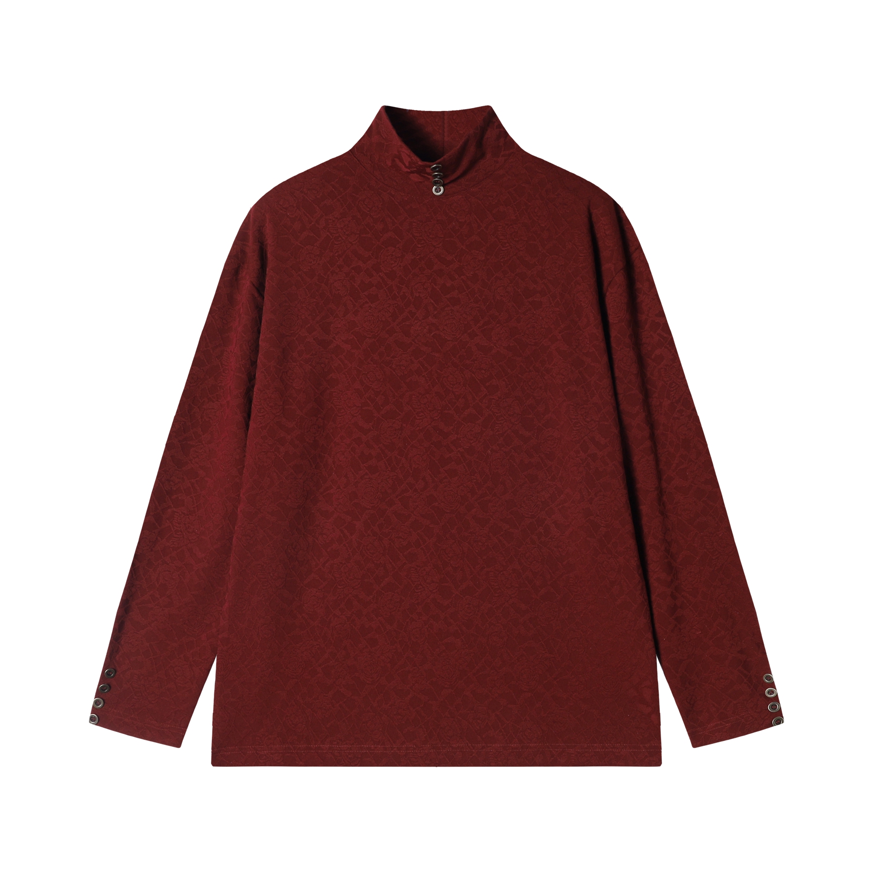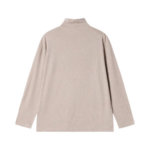 T1846新款时尚个性纯色提花立领套头长袖T恤休闲百搭舒适上衣潮