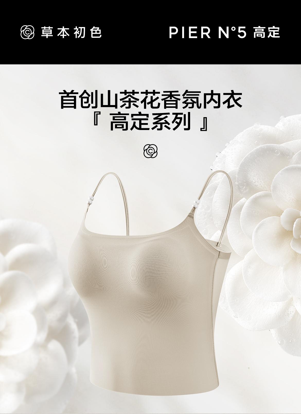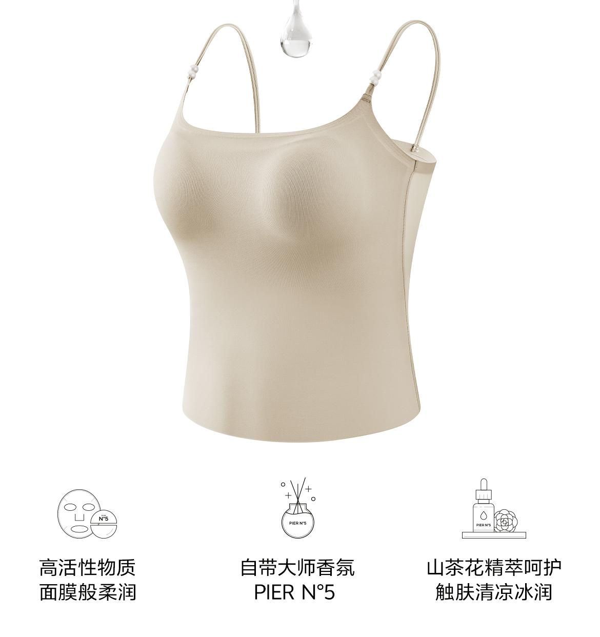草本初色【赠2条内裤】山茶花香氛凉感吊带10A抗菌夏季超薄珍珠背心长款两件装5602
