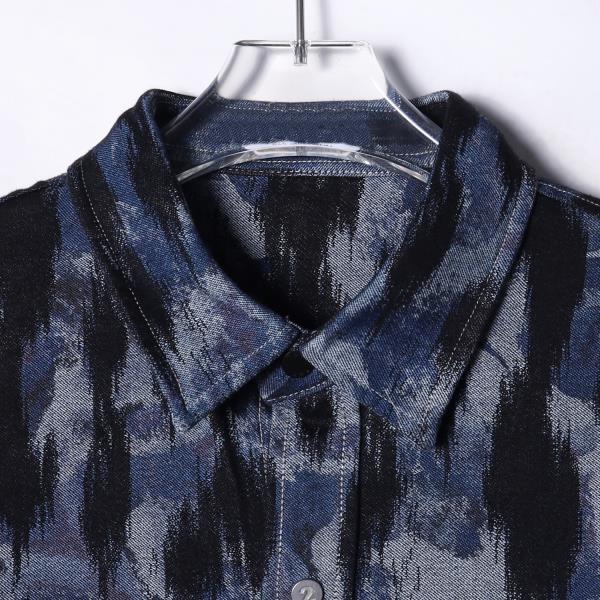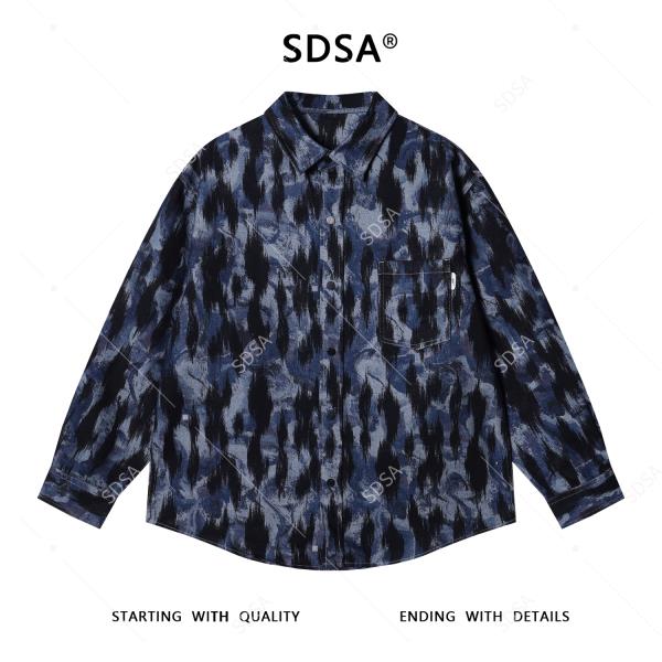 12447SDSA秋冬新款痞帅男装嘻哈复古撞色印花纽扣翻领长袖衬衫百搭衬衣