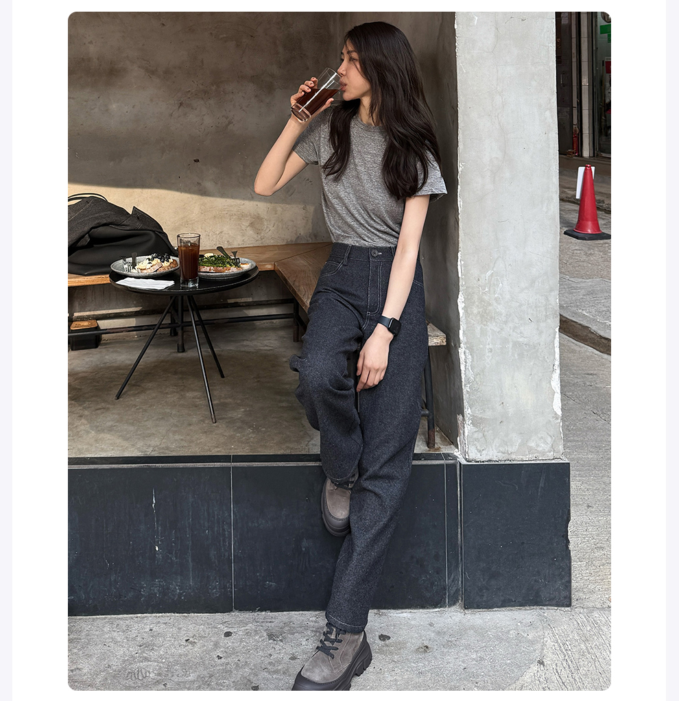 ROMISTUDIO“洒脱有型”锦氨混纺立体缝线直身灰西裤 RWCWXG6747