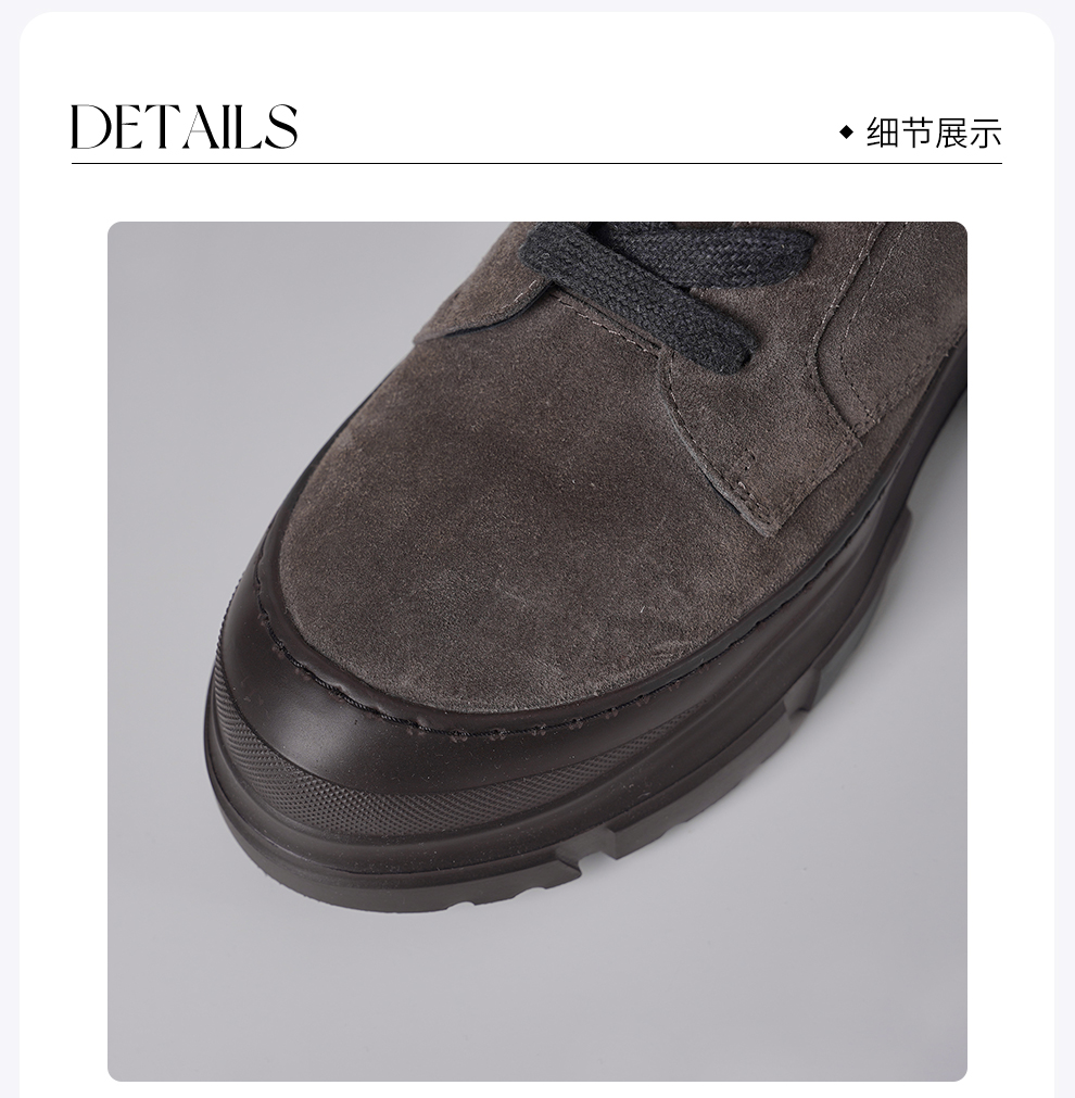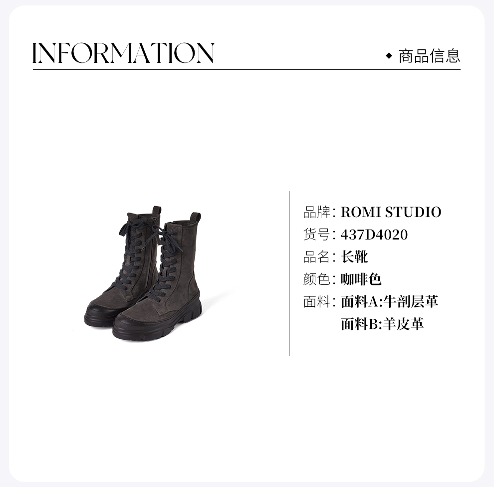 ROMI STUDIO“从容自我”牛反绒厚底多地形系带侧拉链短靴 437D4020