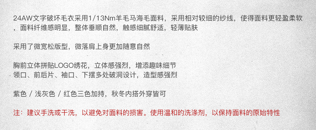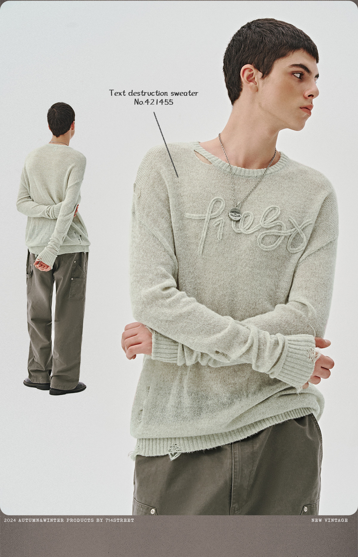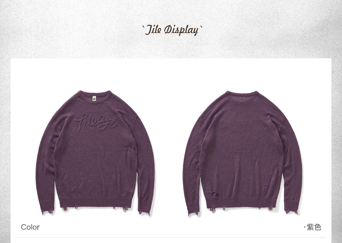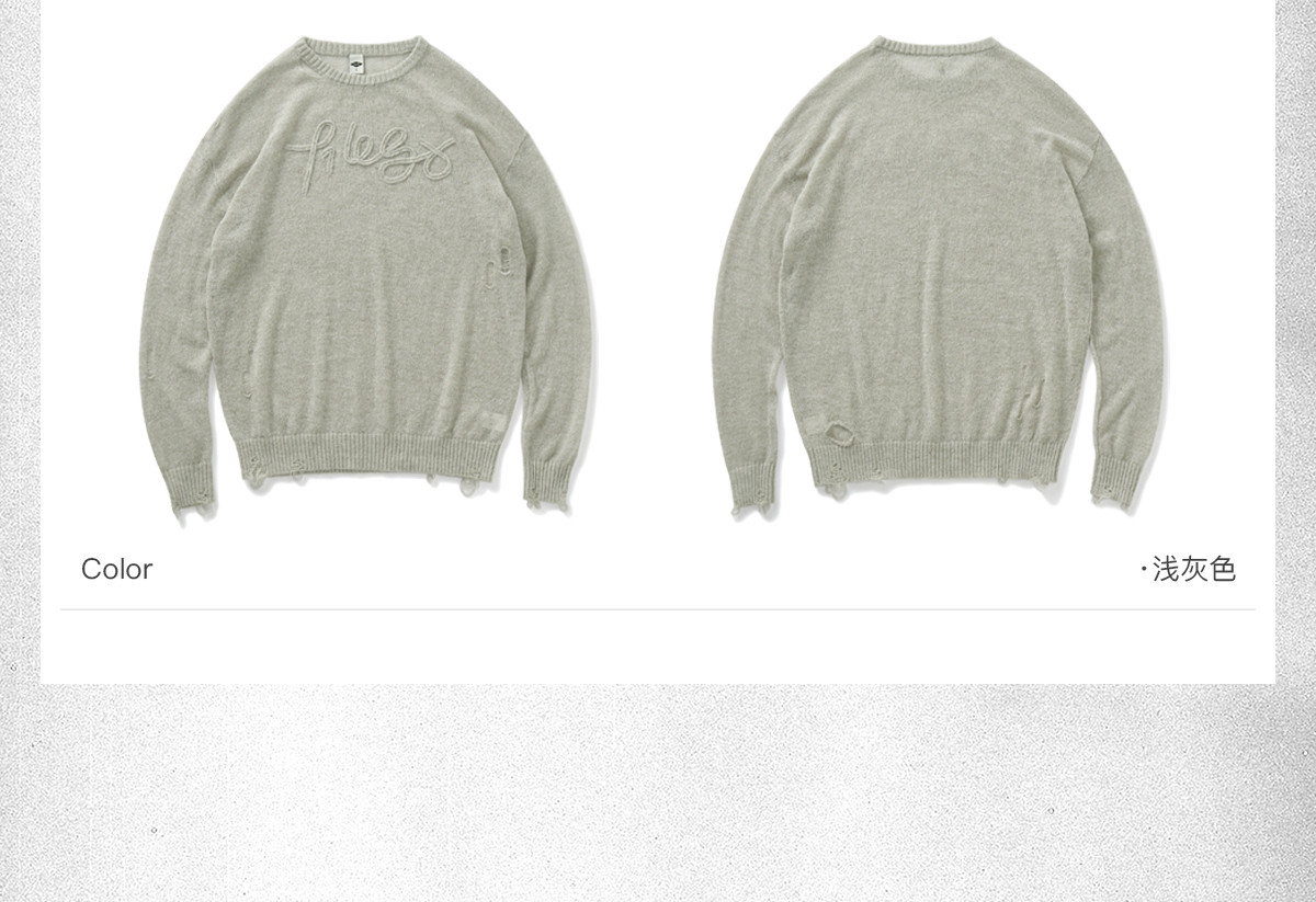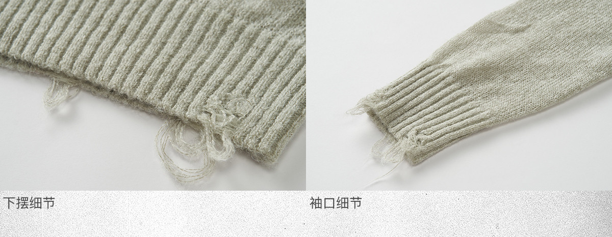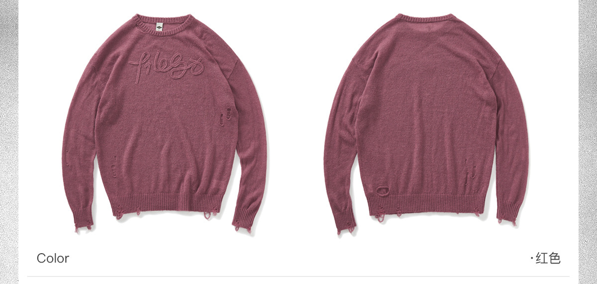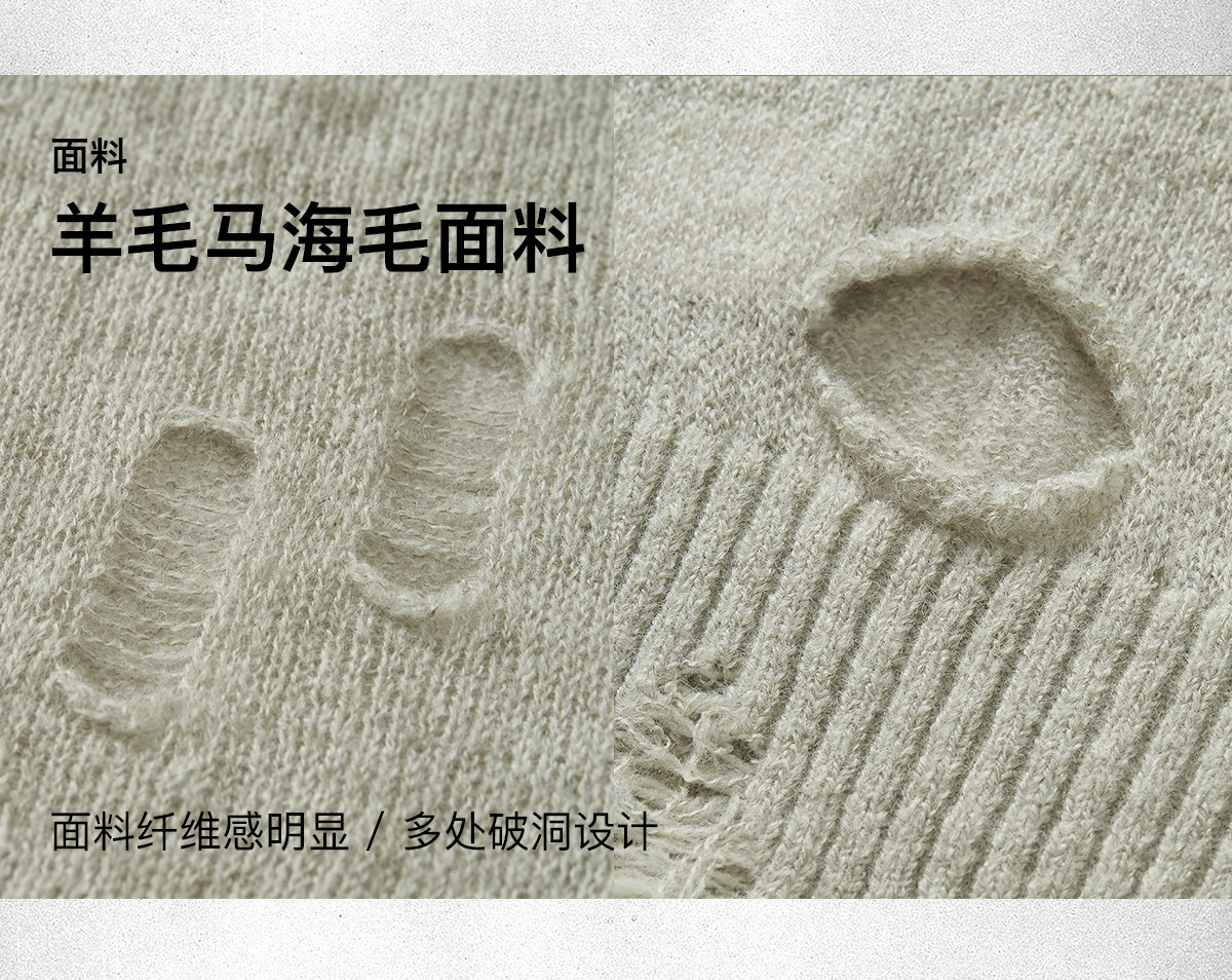 714street美式字母提花破坏毛衣秋季新款薄款情侣针织衫男女同款