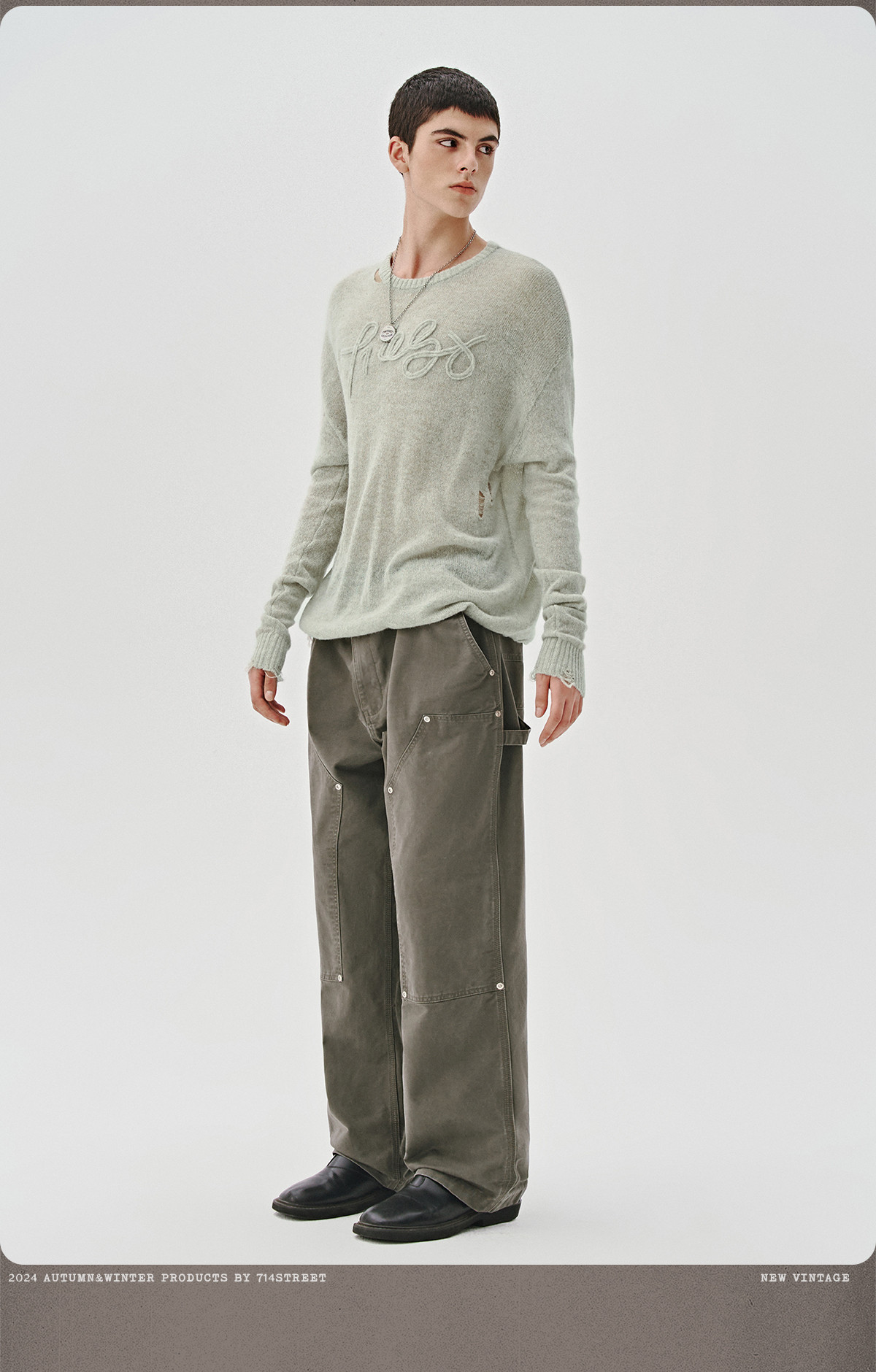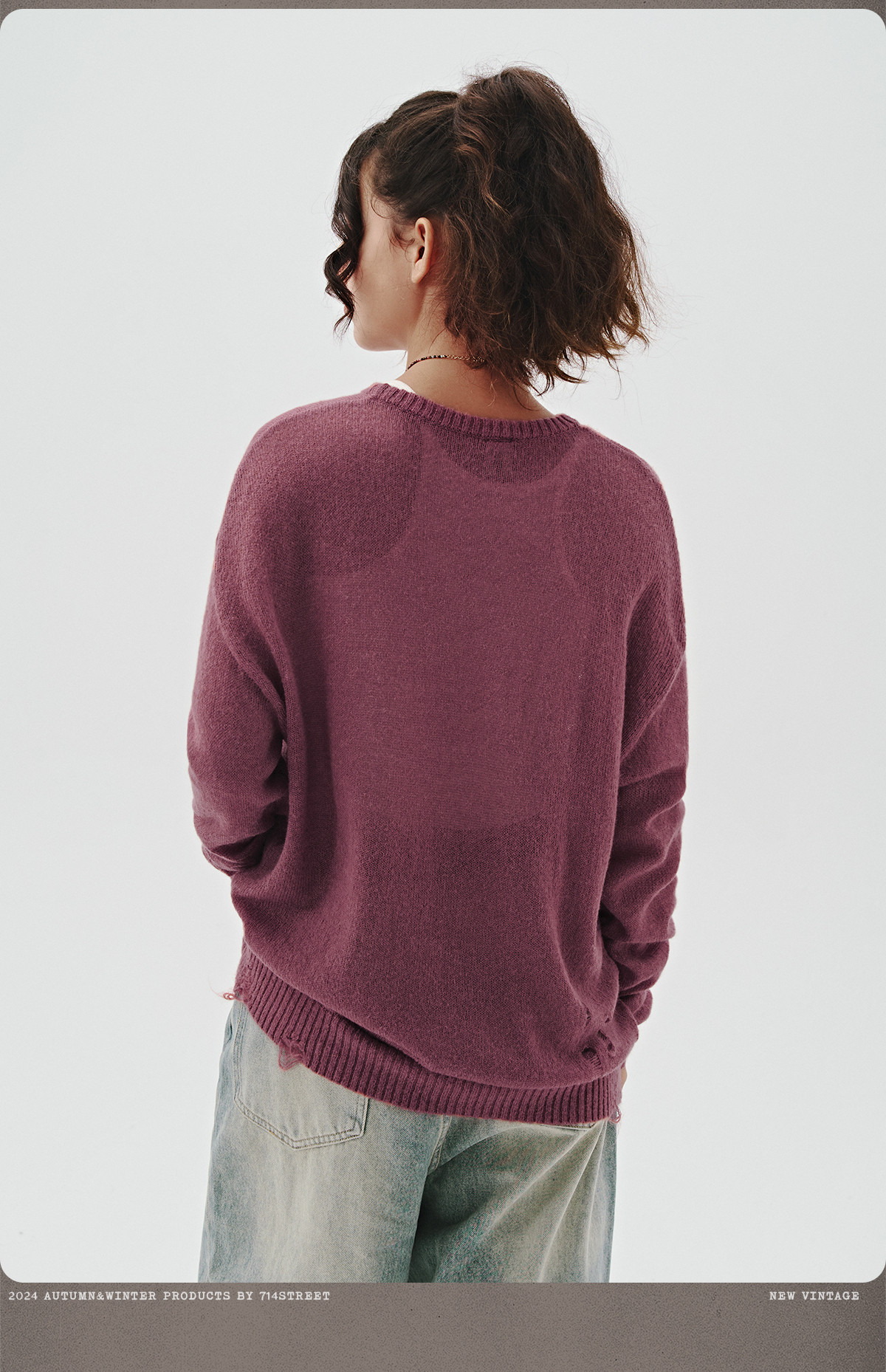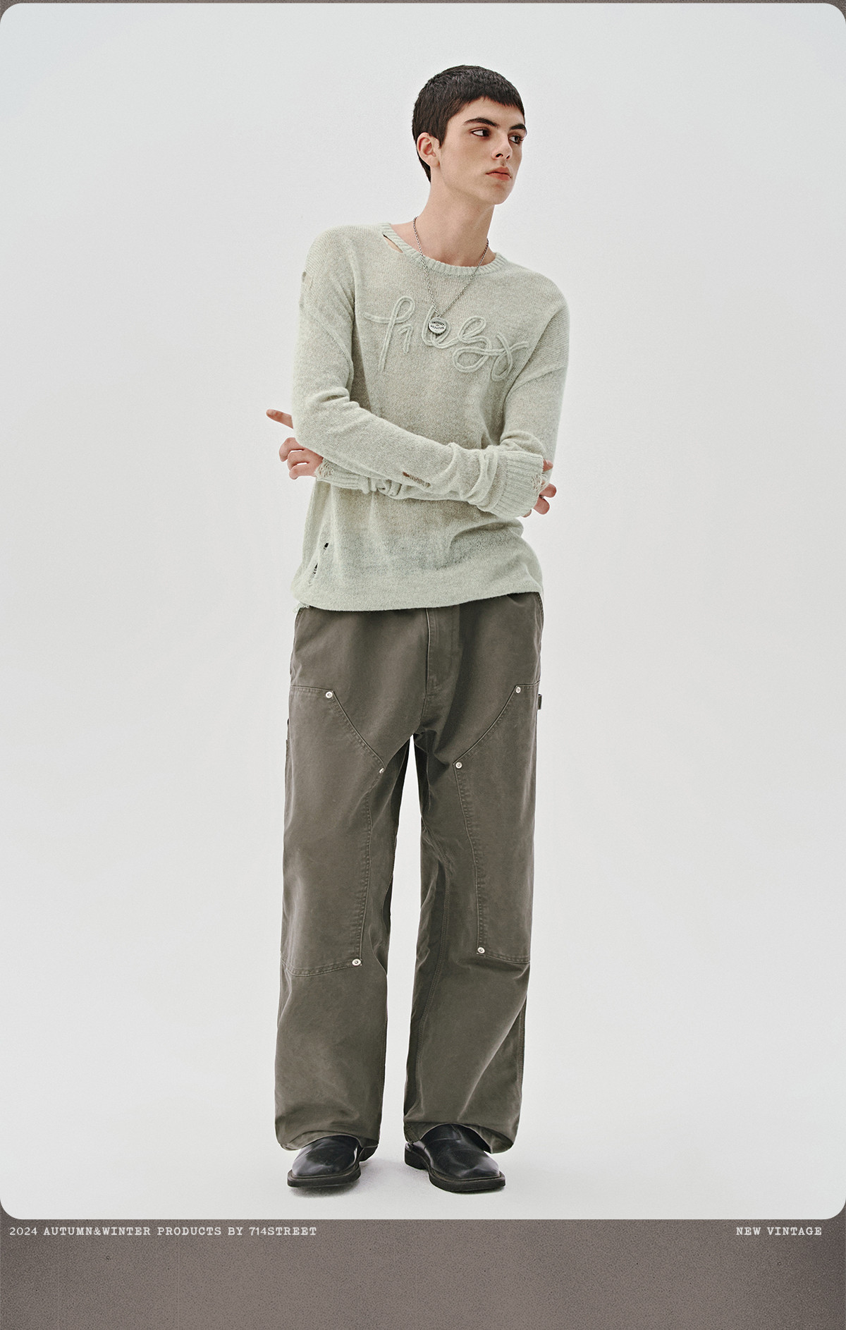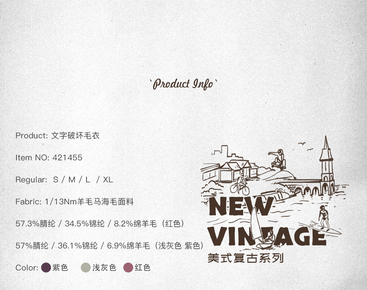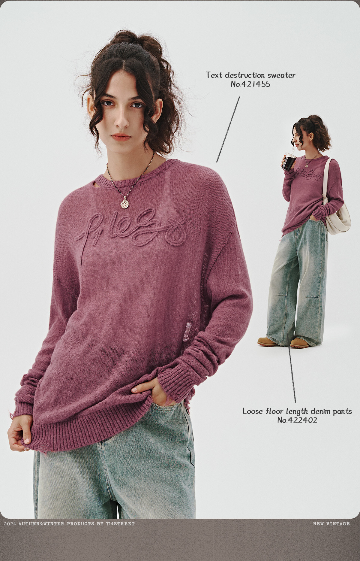 714street美式字母提花破坏毛衣秋季新款薄款情侣针织衫男女同款