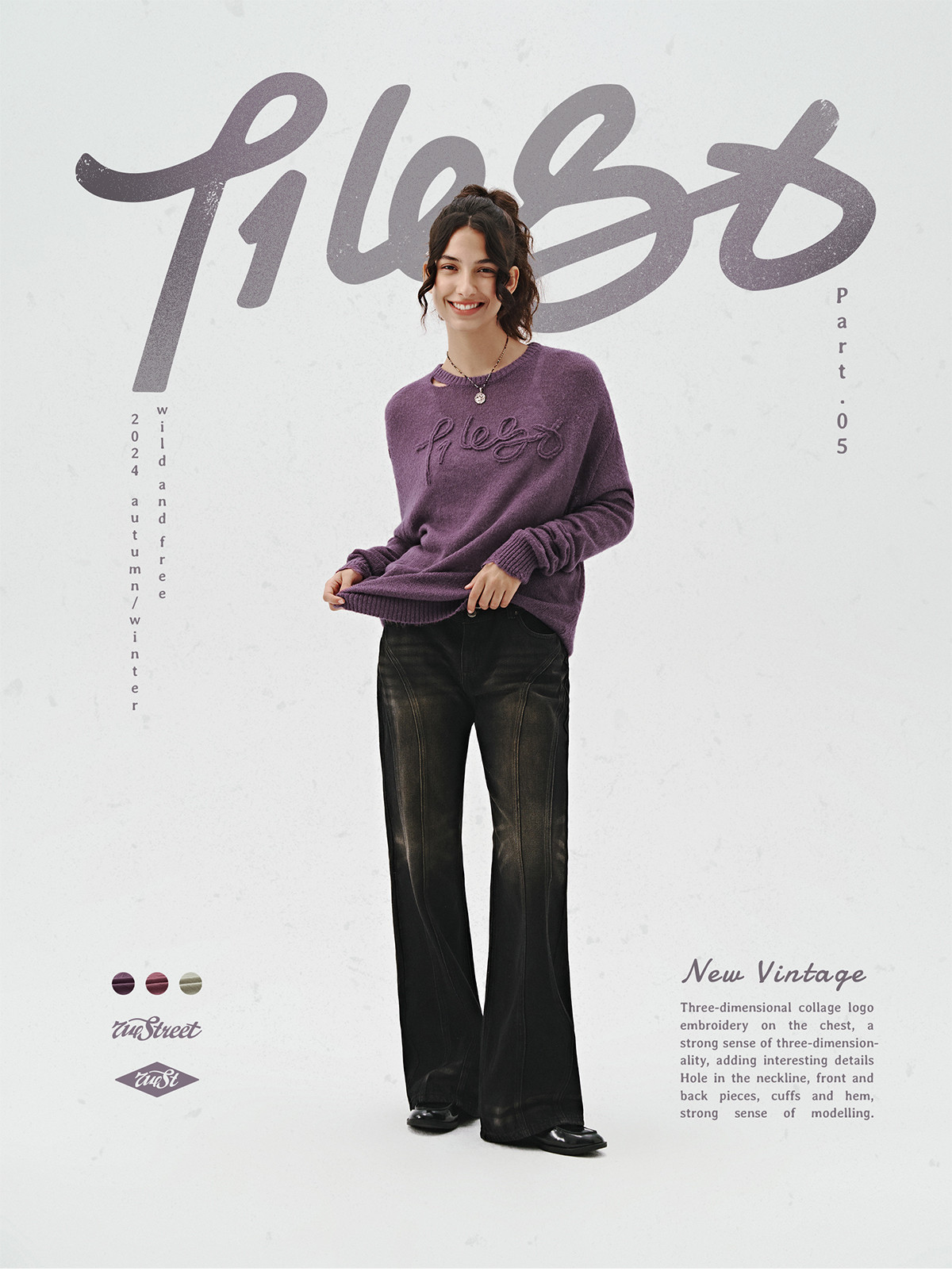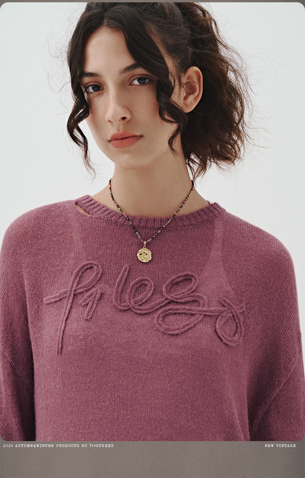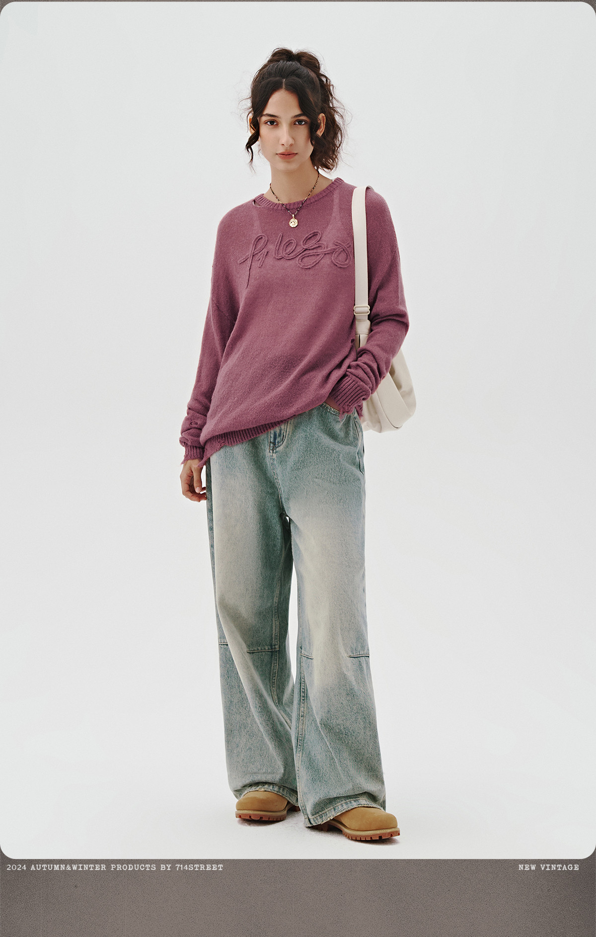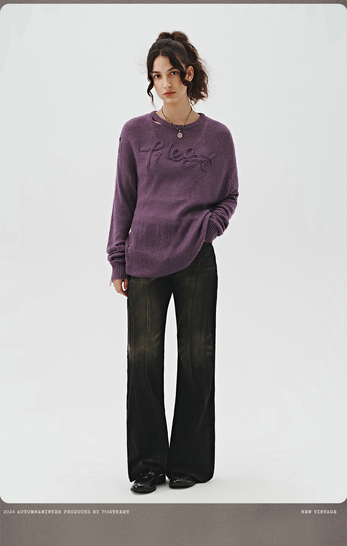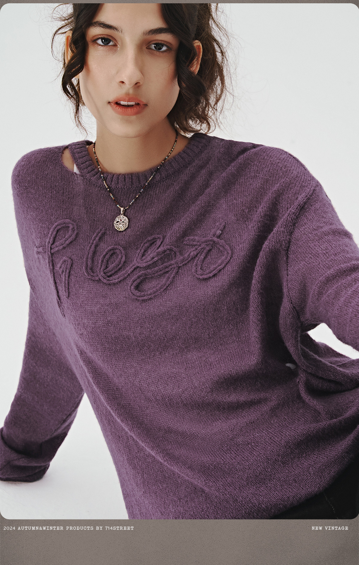 714street美式字母提花破坏毛衣秋季新款薄款情侣针织衫男女同款