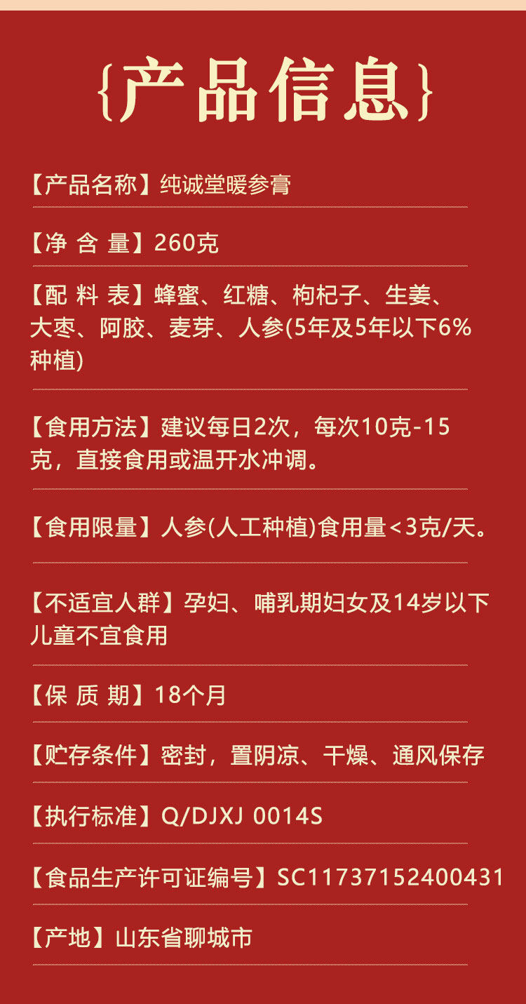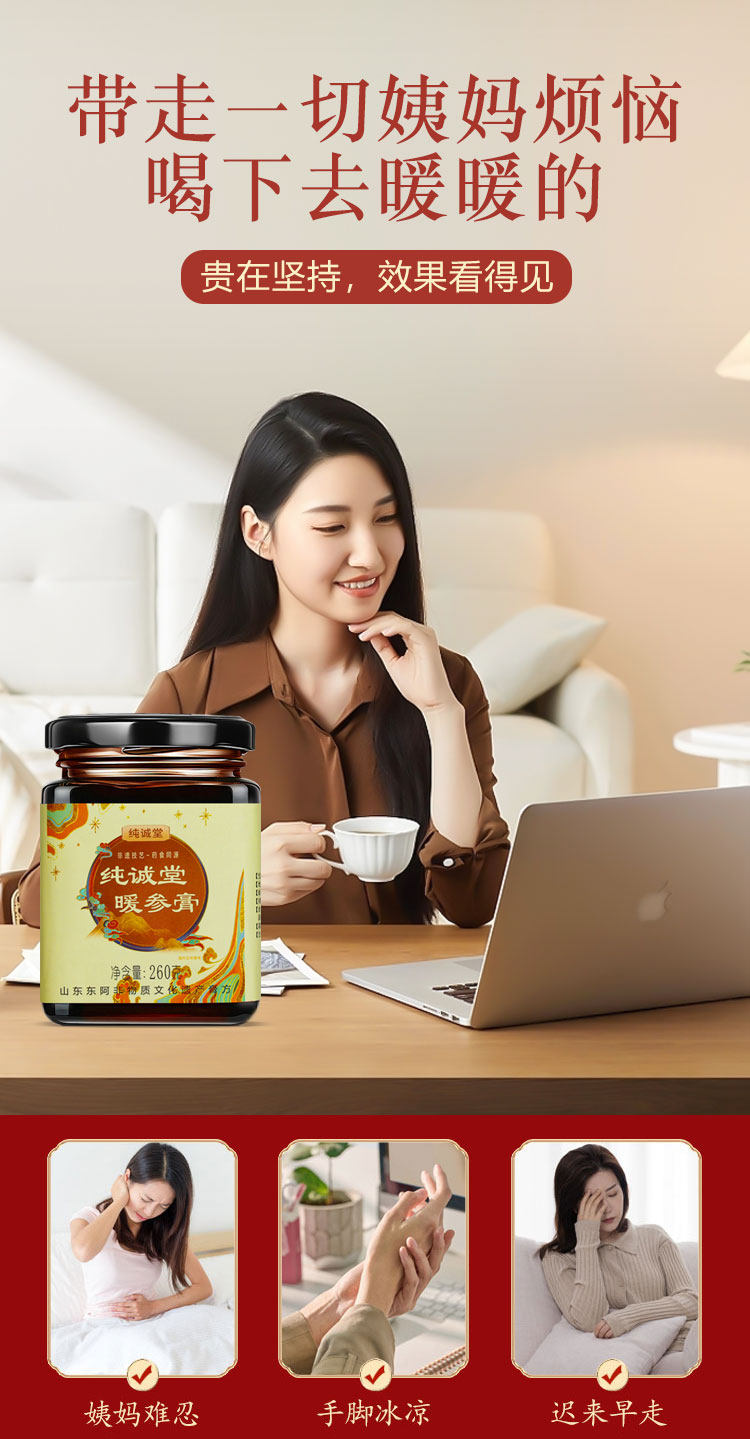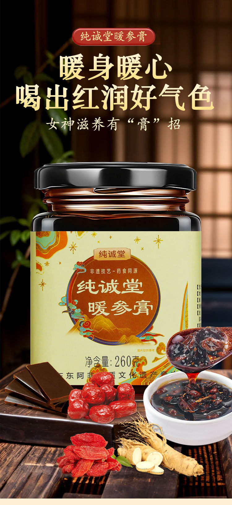 纯诚堂阿胶姜枣暖参膏旗舰店补气养血养颜暖身驱寒安神正品旗舰店
