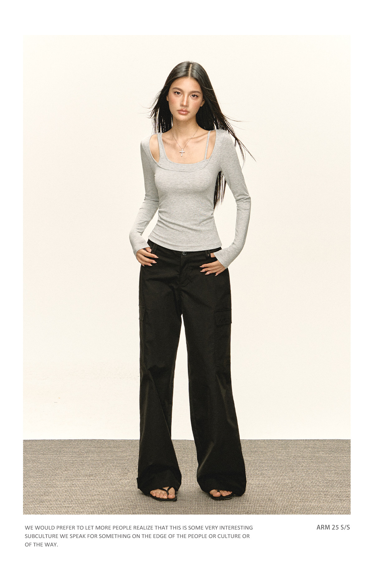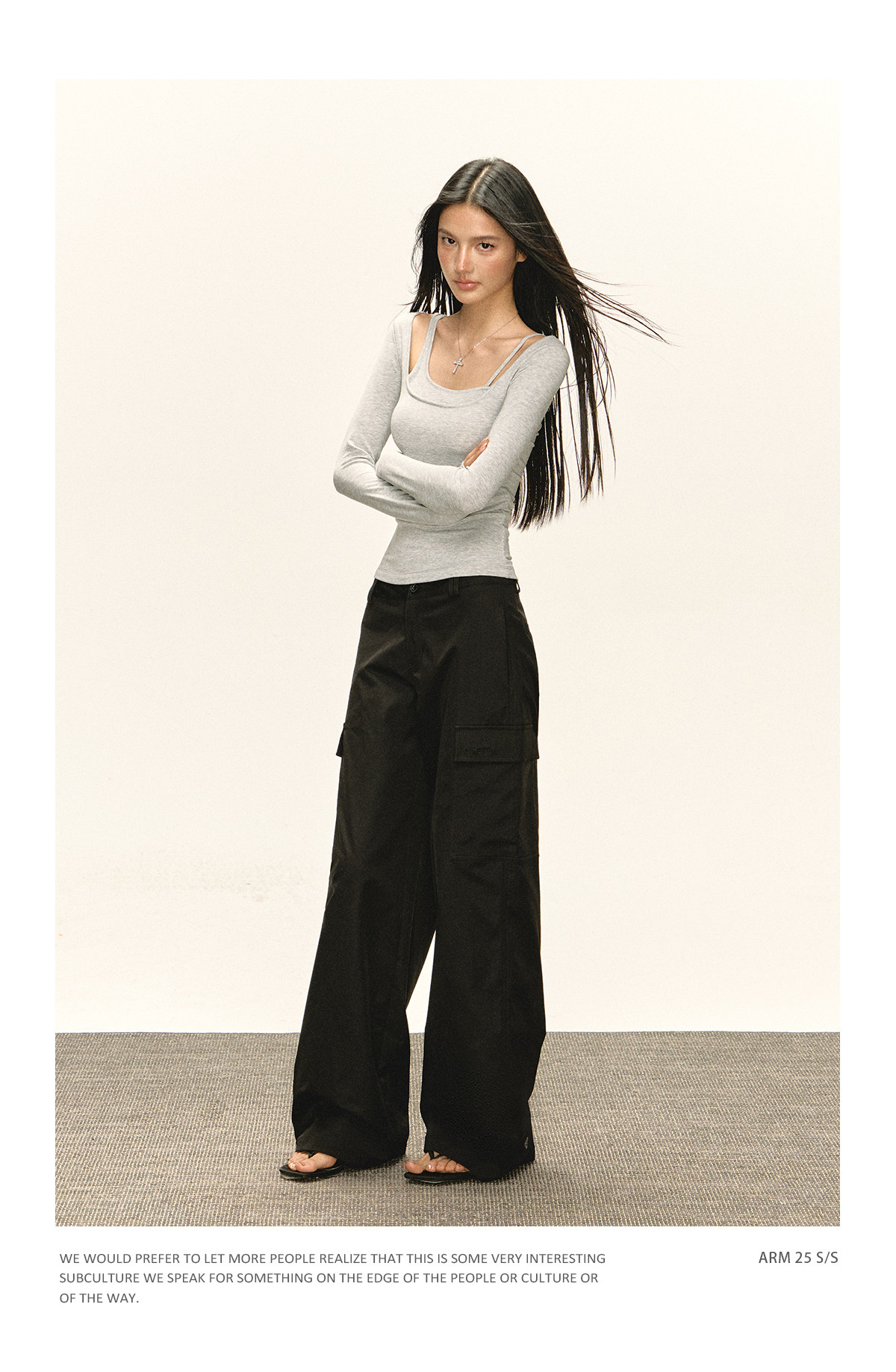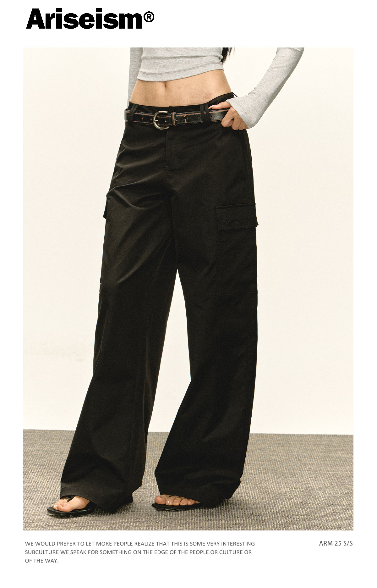 Ariseism 美式复古黑色工装裤休闲裤女春季新款长裤子