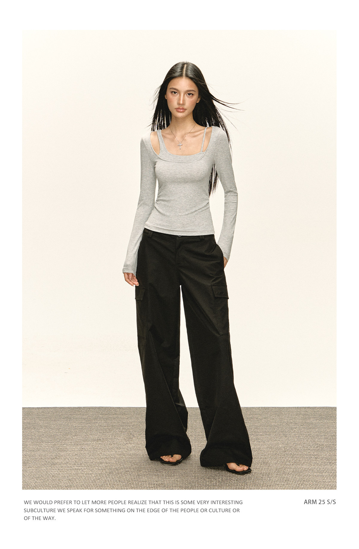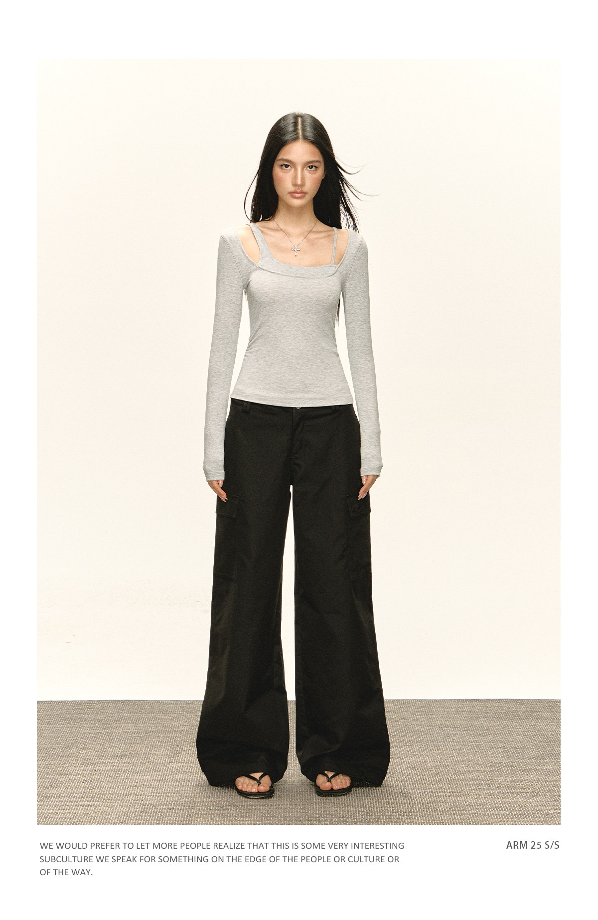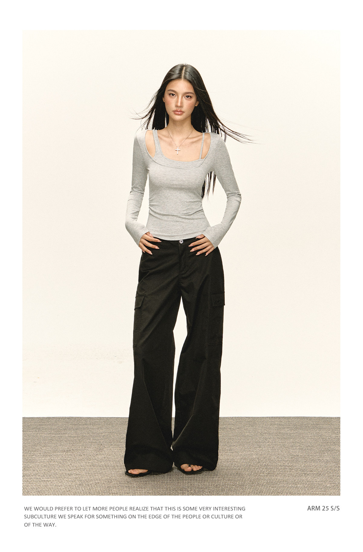 Ariseism 美式复古黑色工装裤休闲裤女春季新款长裤子