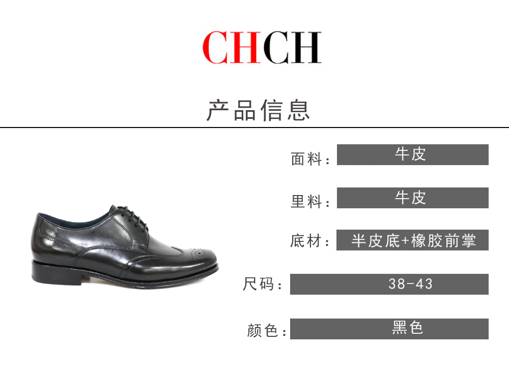 CHCH平衡鞋系带牛皮革正装商务男鞋CM2A1051