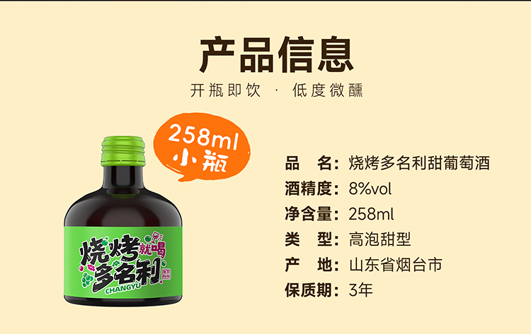 【于适代言】张裕烧烤多名利甜葡萄酒258ml