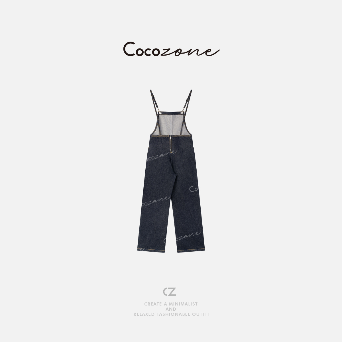 COCO ZONE 100棉早春复古设计感百搭牛仔背带裤CD1A0072