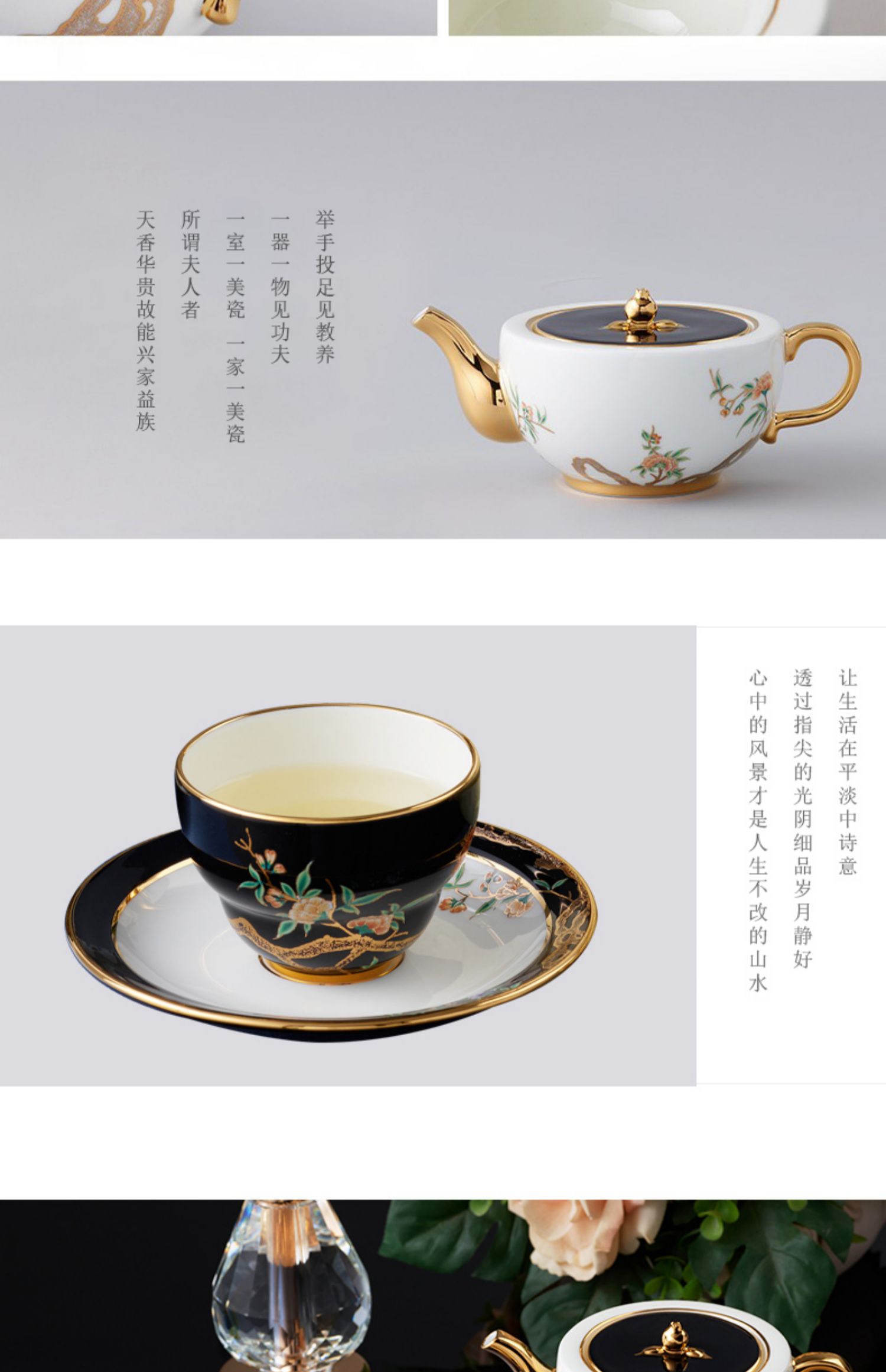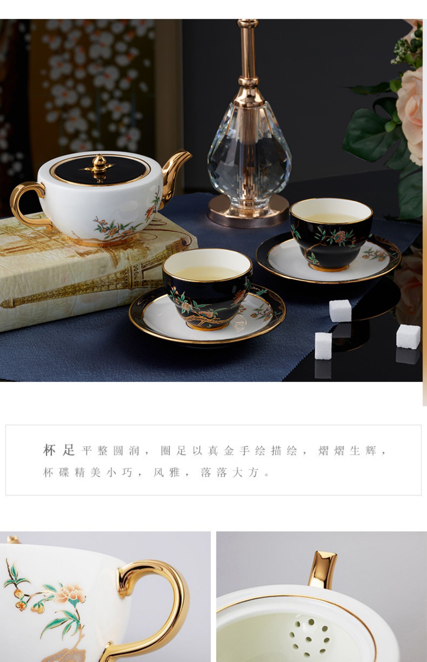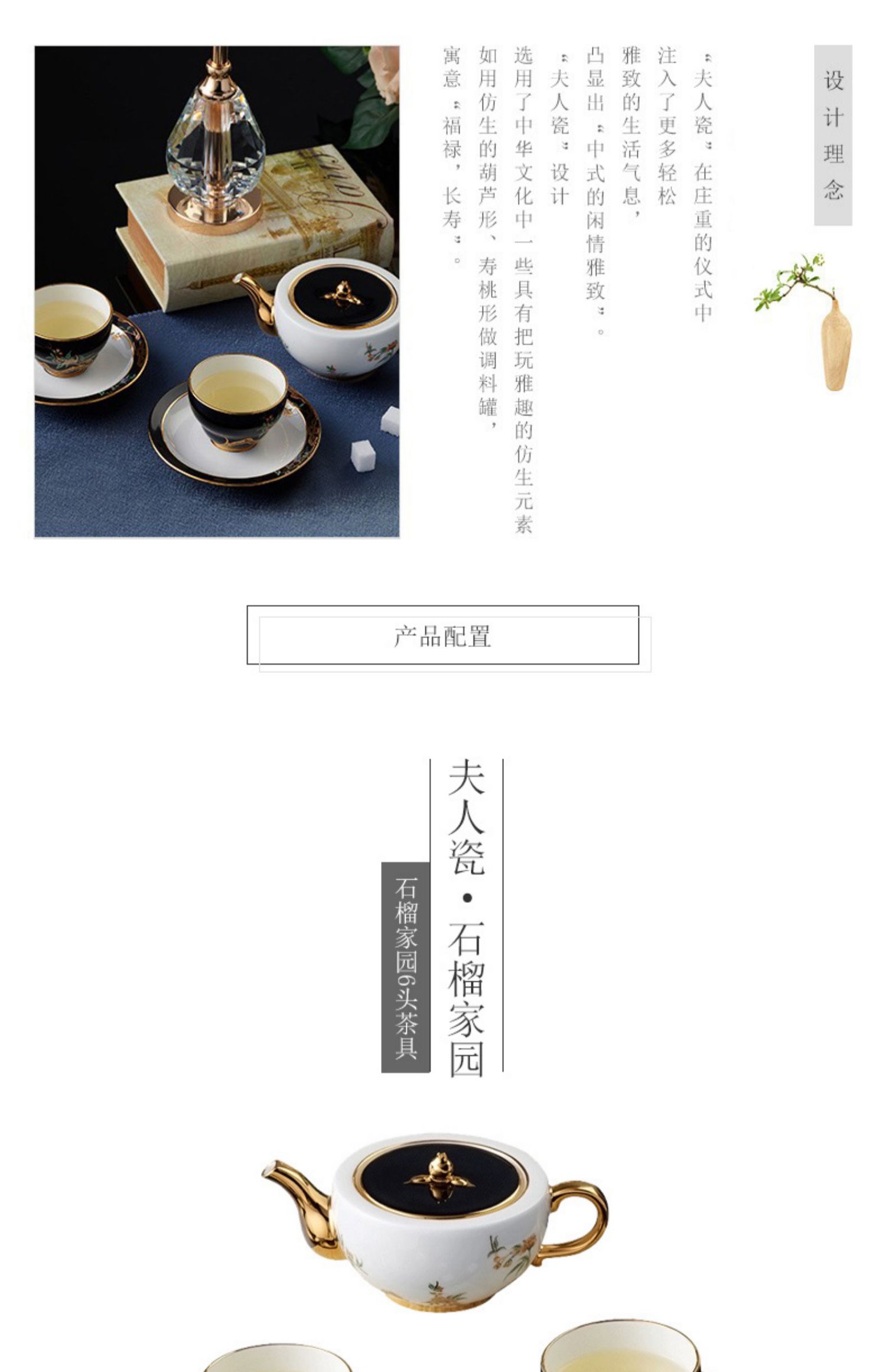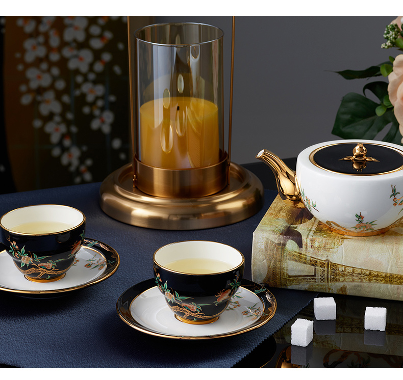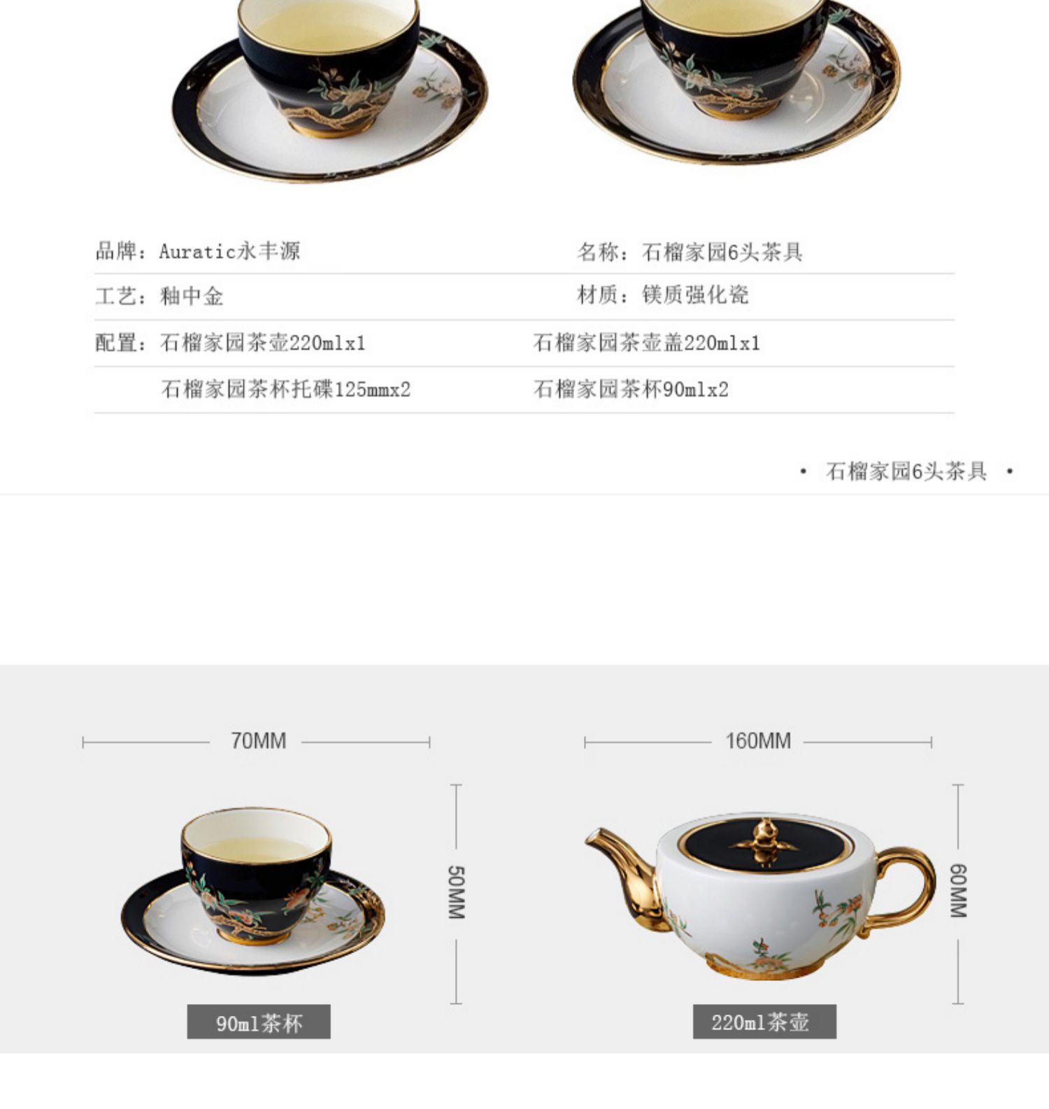 永丰源夫人瓷石榴家园 6头陶瓷茶杯套装中式茶具 下午茶杯碟 礼盒