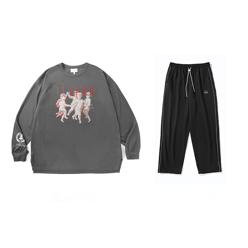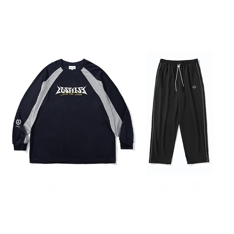 LUSHISI秋季[日落篮球]网眼速干运动长袖t恤男训练投篮服美式街头