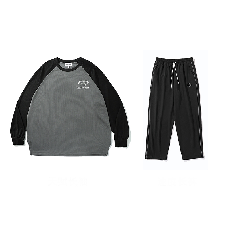 LUSHISI拼色插肩长袖炽热如火主题微弹速干运动长袖t恤投篮训练服