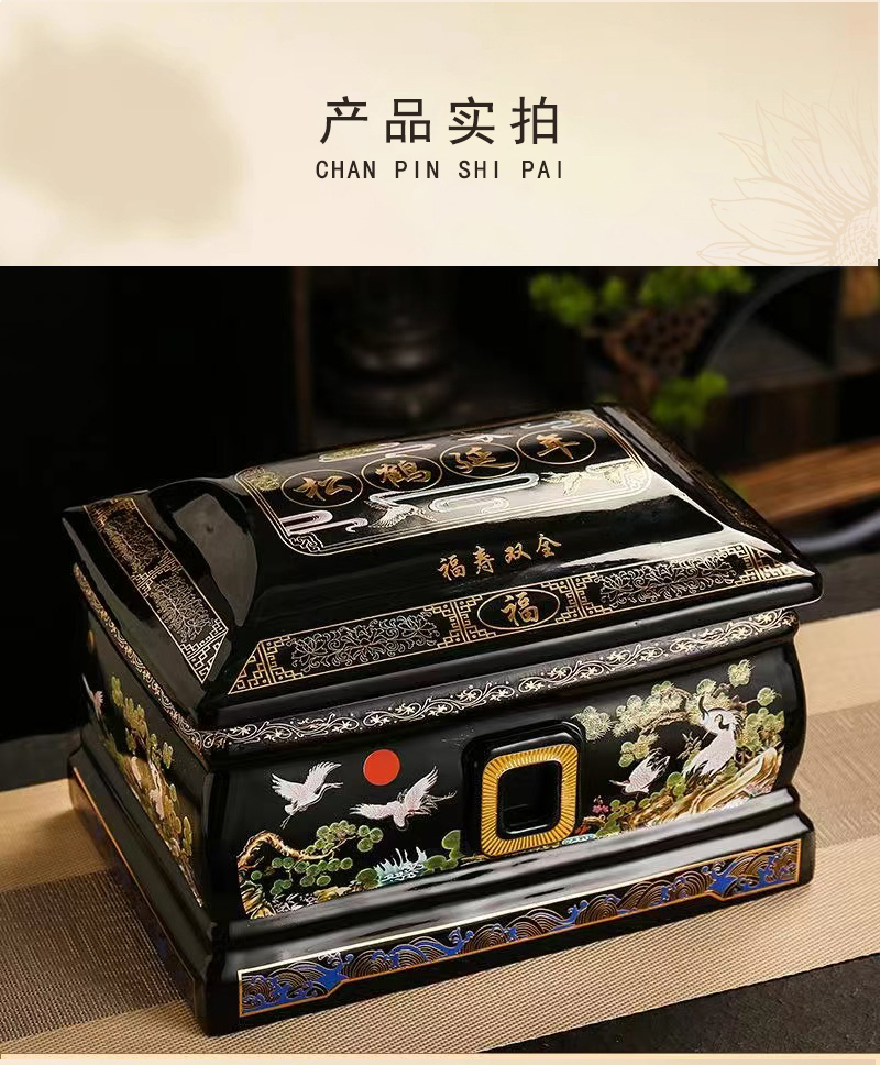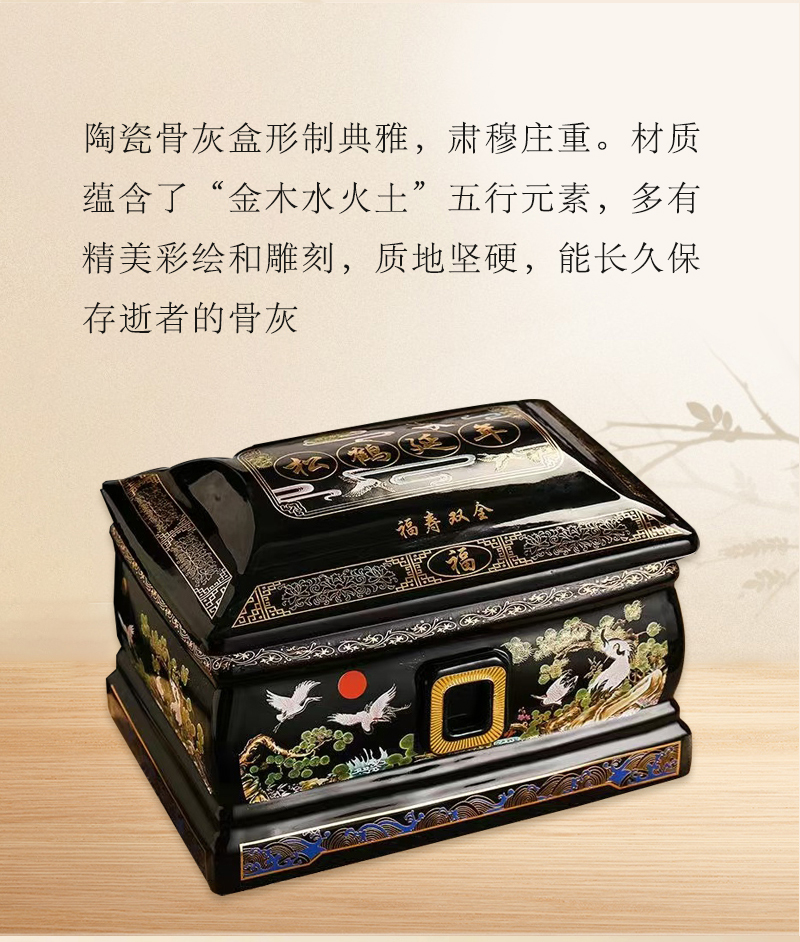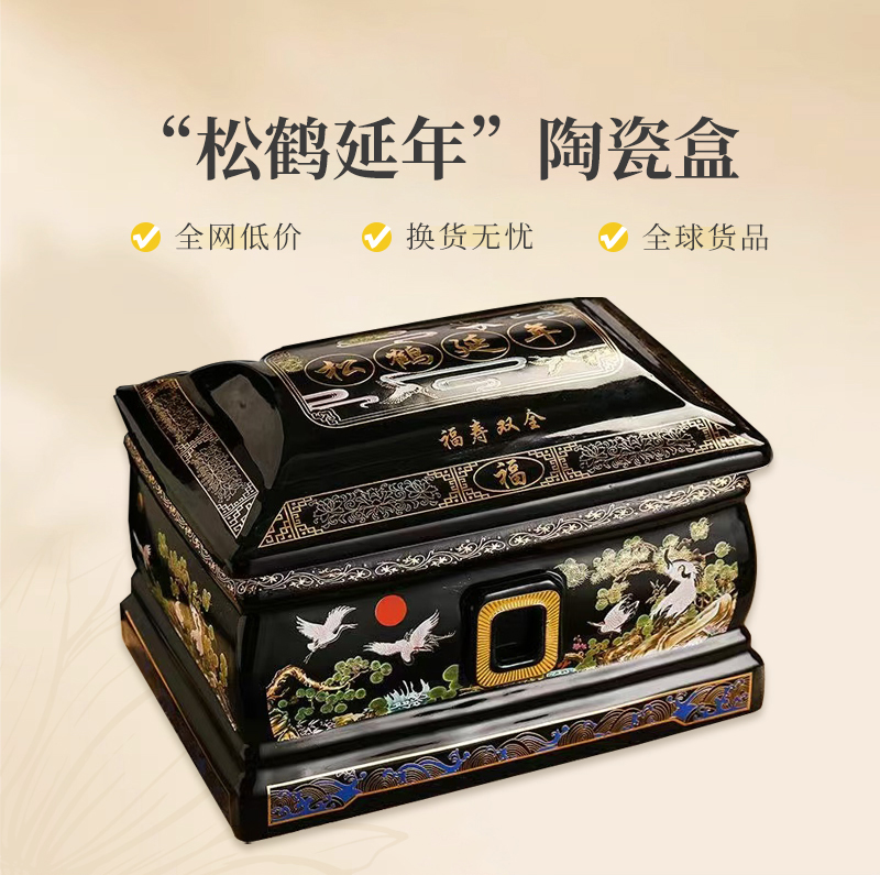 传统德化陶瓷男女通用骨灰盒“松鹤延年”骨灰盒寿盒