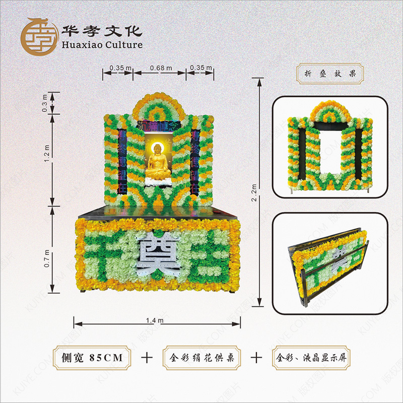 含全彩绢花供桌与液晶显示屏。