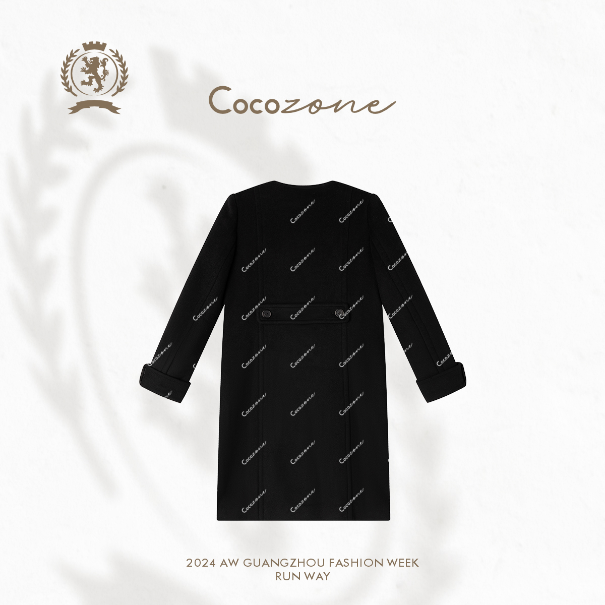 COCO ZONE 100绵羊毛圆领长袖长款毛呢外套CC2C2252