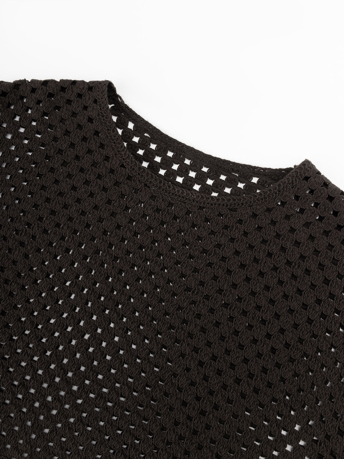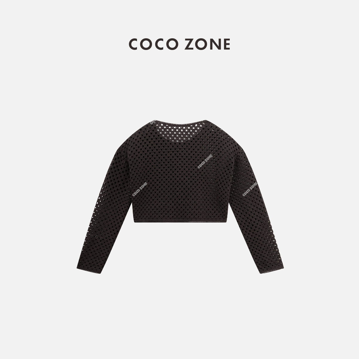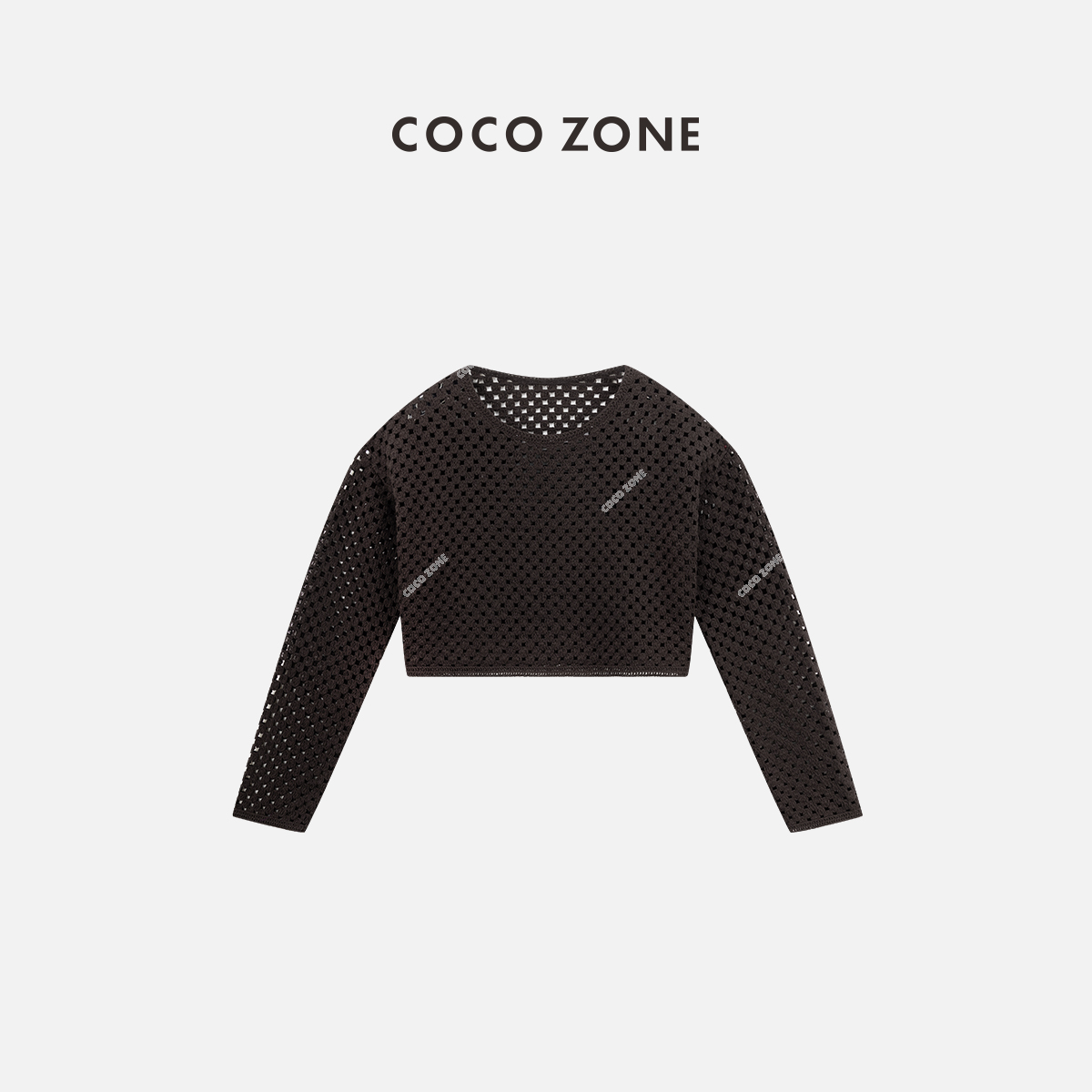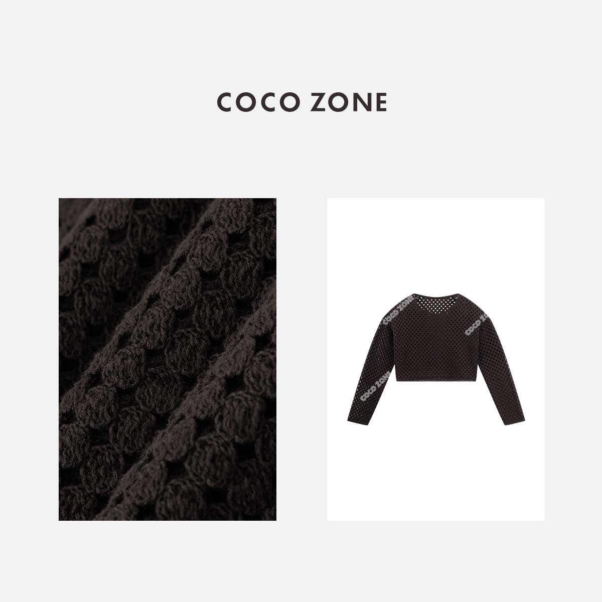 COCO ZONE "复古罩衫“时尚镂空圆领长袖上衣百搭简约针织衫CC2B1056