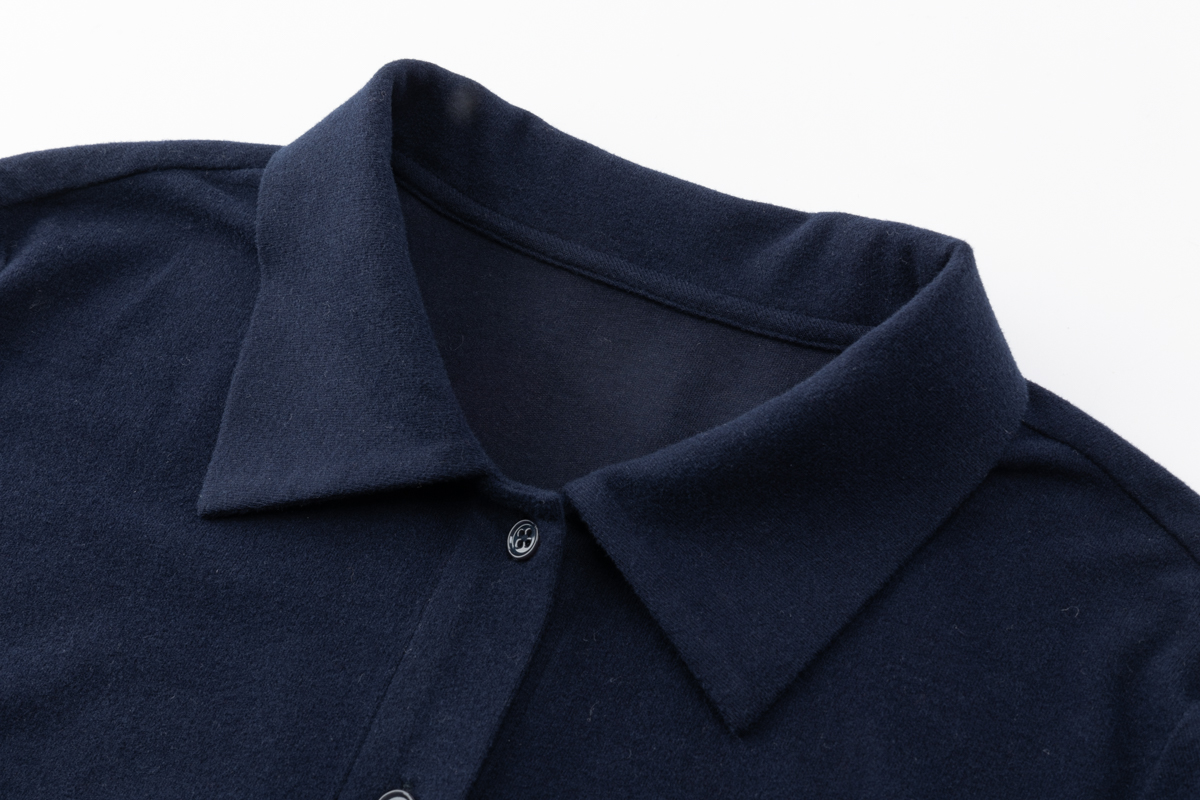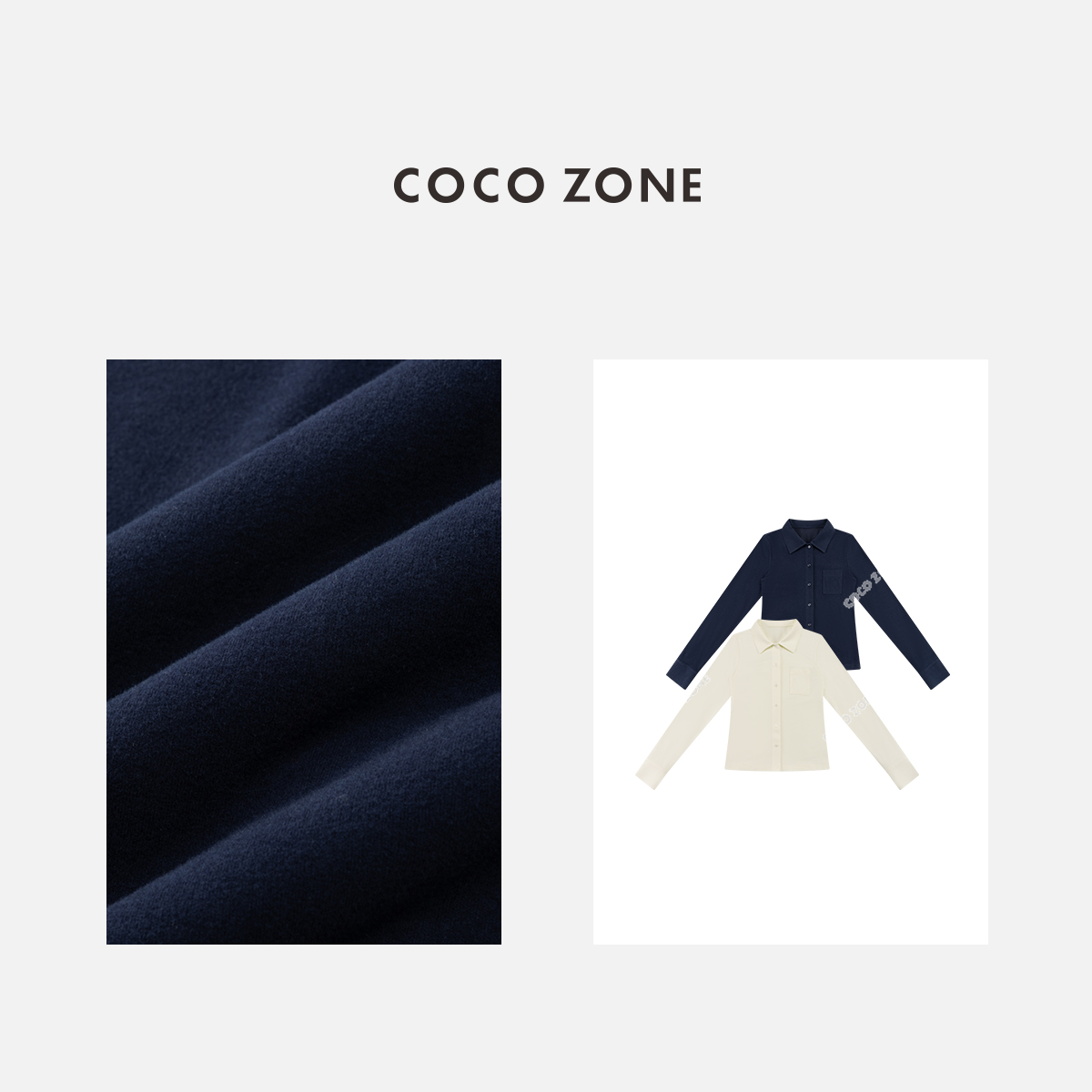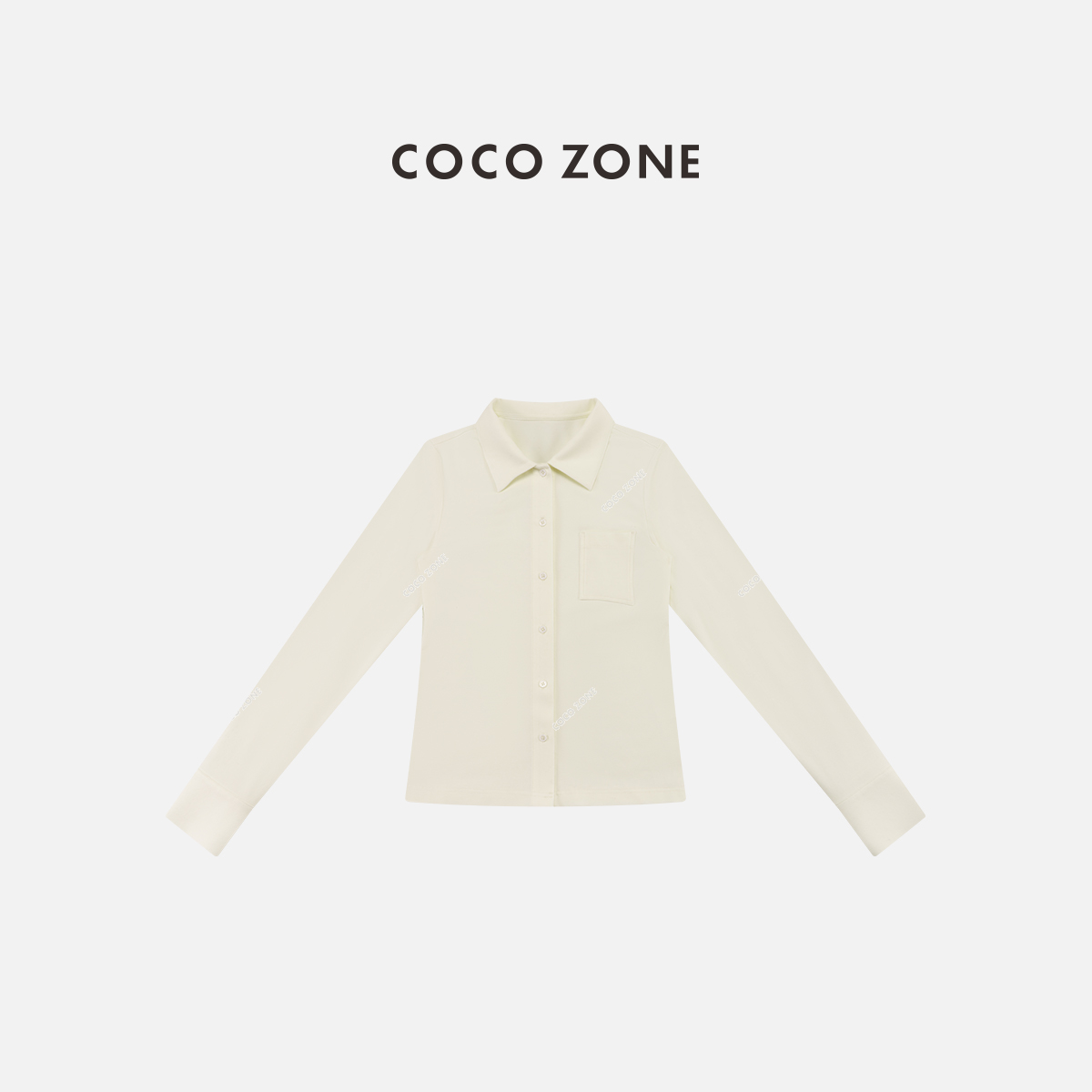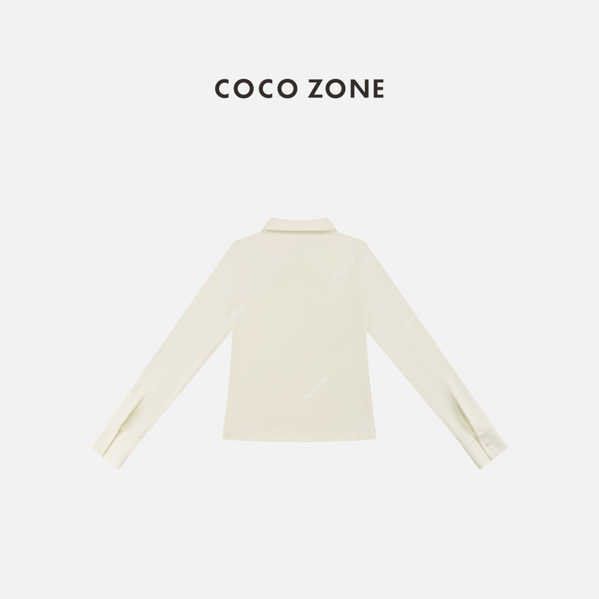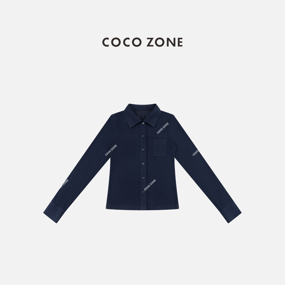COCO ZONE 秋冬通勤风简约翻领单排扣长袖T恤CC2D2806