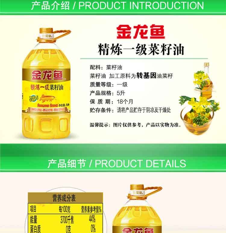 【小店自提】金龙鱼精炼一级菜籽油5L/桶