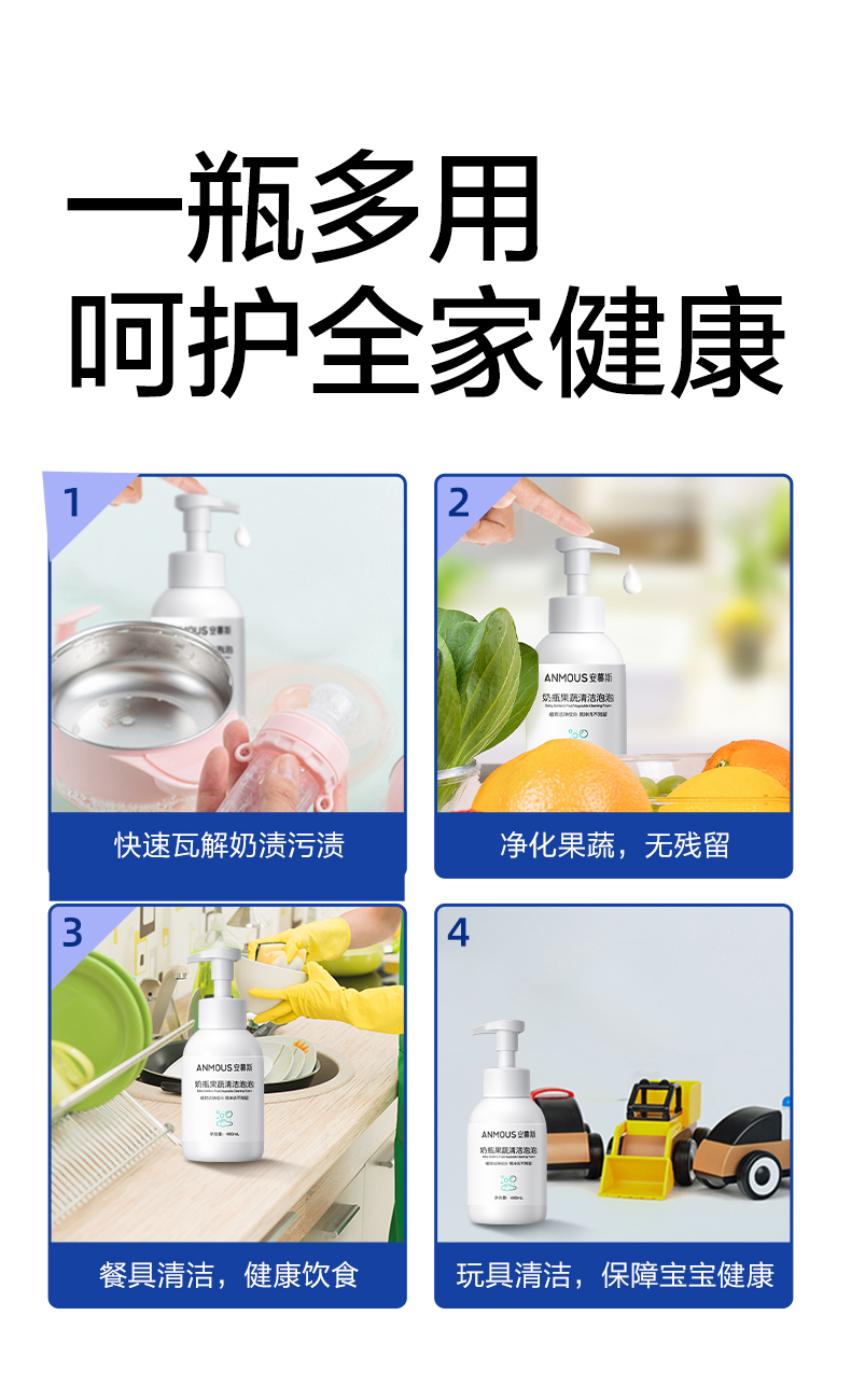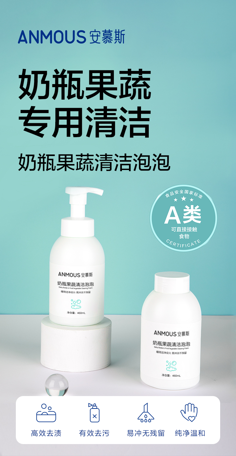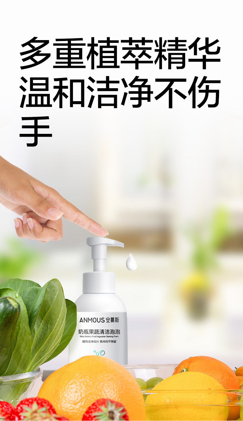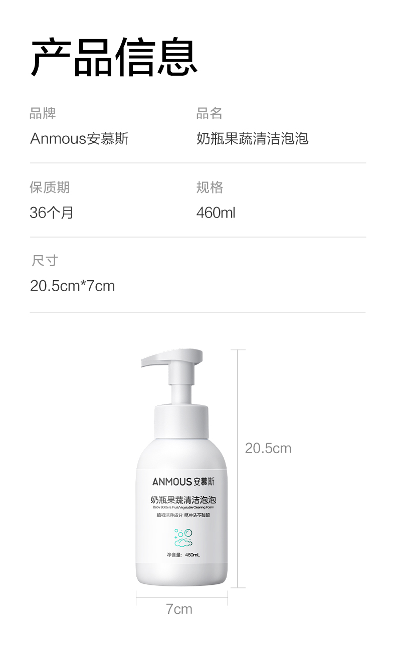 安慕斯果蔬清洗泡沫460ml*2瓶(1瓶带泵头+1瓶替换装)