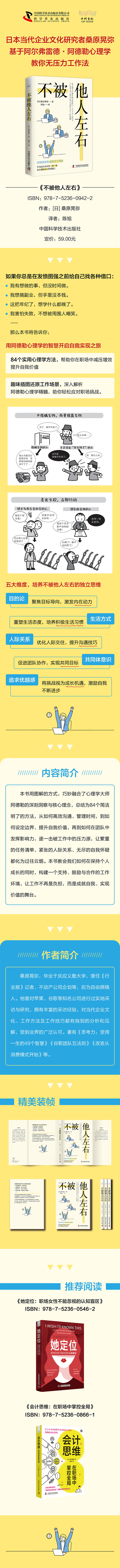 2.全书覆盖了从沟通艺术到时间管理,从边界感建立到个人价值提升的全方位策略,帮助读者逐一瓦解职场压力与障碍,拒绝借口,拥抱改变,用阿德勒心理学引导你走出舒适区,迎接更好的自己。