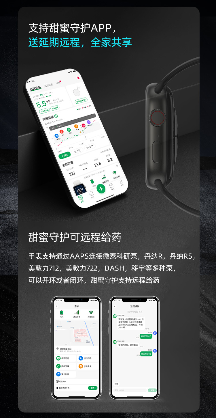 2024新品甜蜜守护血糖监测AAPS手表AMOLED屏蓝牙通话动态血糖监测