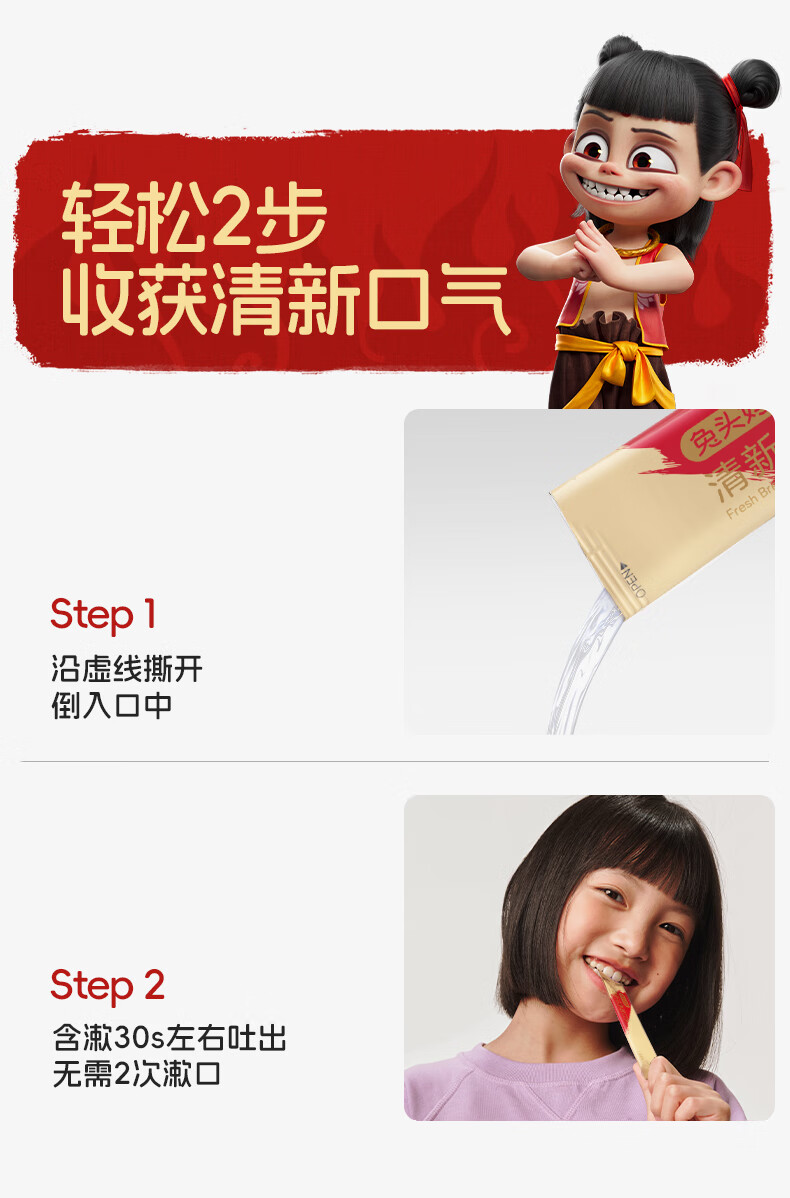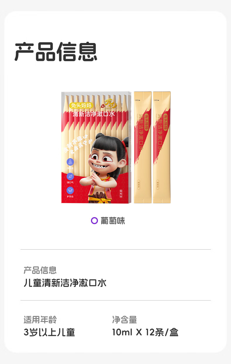 兔头妈妈【哪吒】清新洁净漱口水12条/盒*3