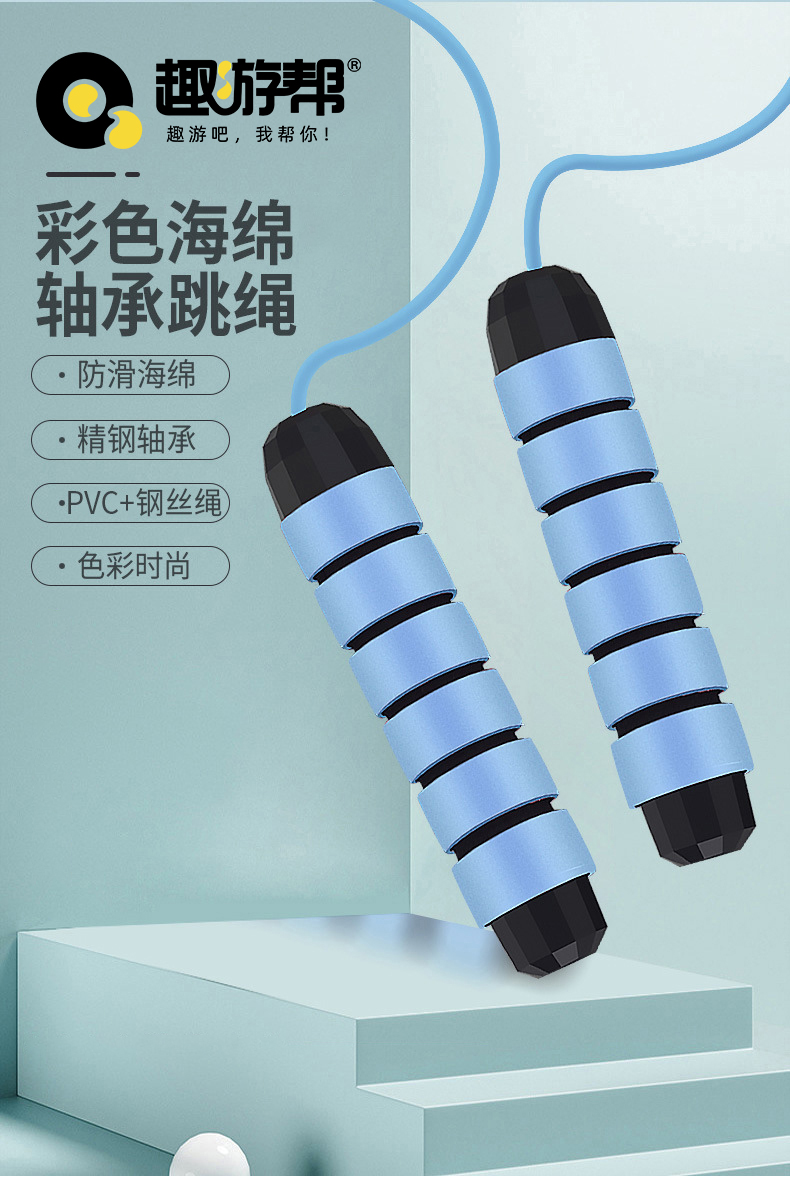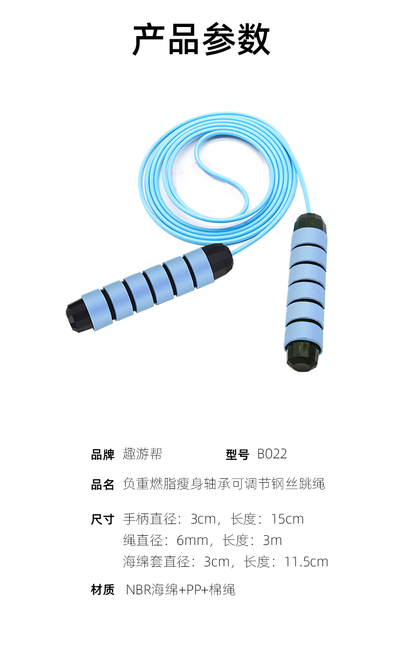 趣游帮 燃脂瘦身轴承可调节钢丝跳绳(B022)