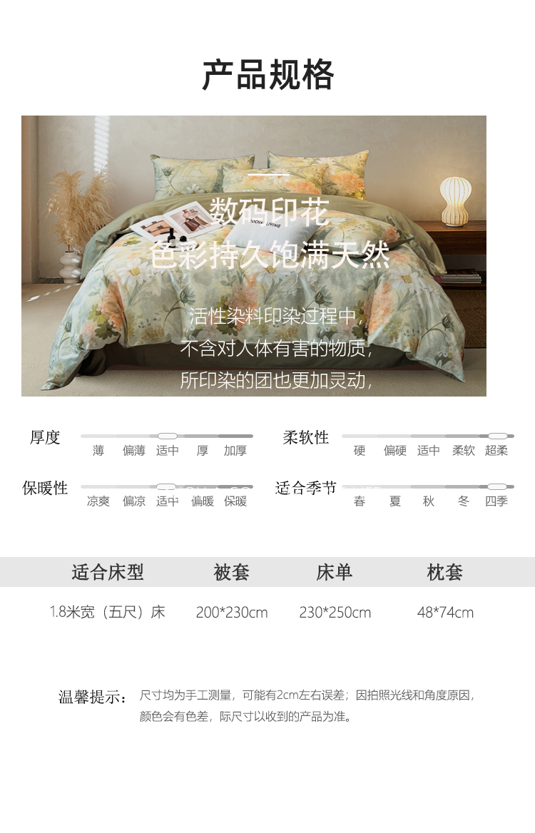 洁丽雅(Grace)朝花夕拾.40支精梳棉数码印花四件套JLY25602