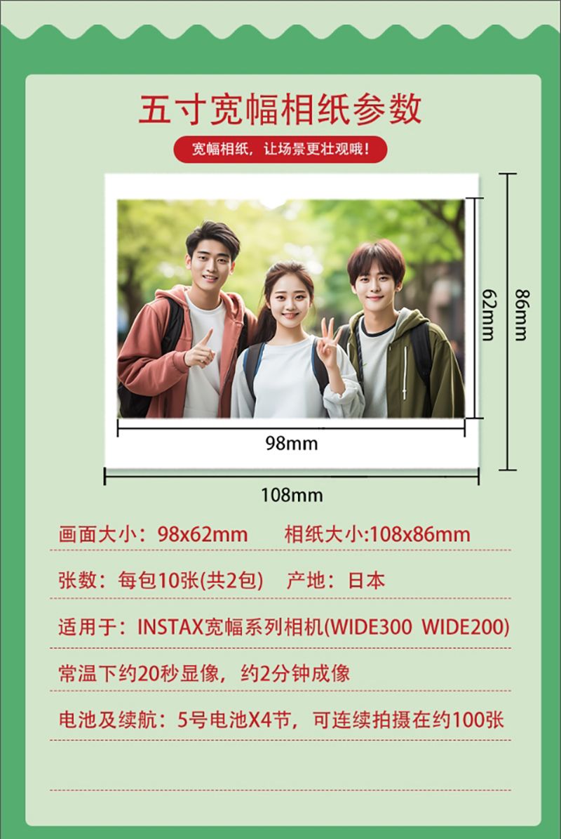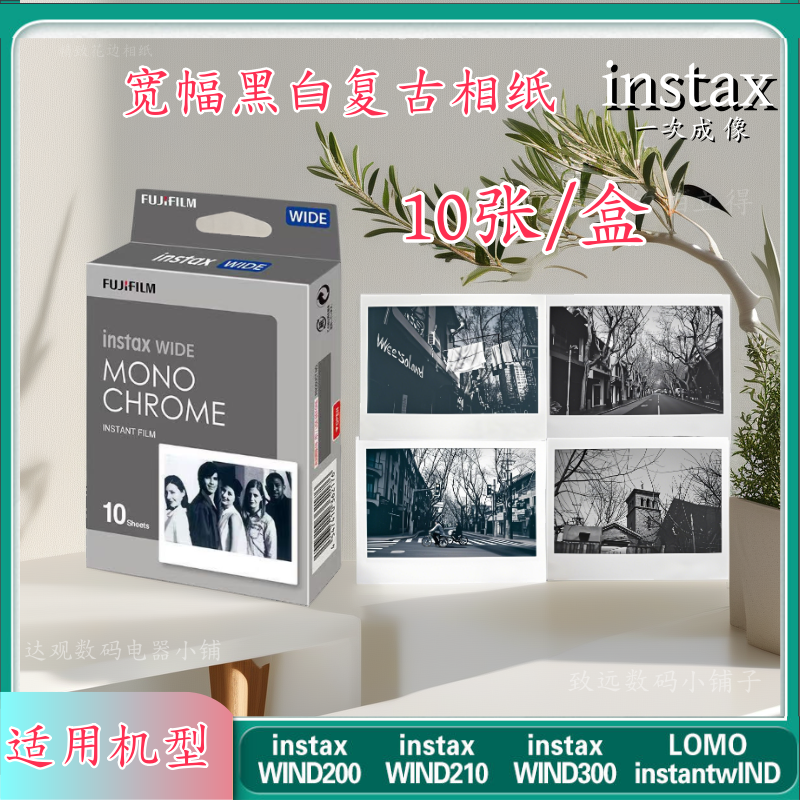 宽幅黑白5寸相纸1盒10张,多盒便宜,日期新鲜,现货速发,富士所有WIDE系列相机通用